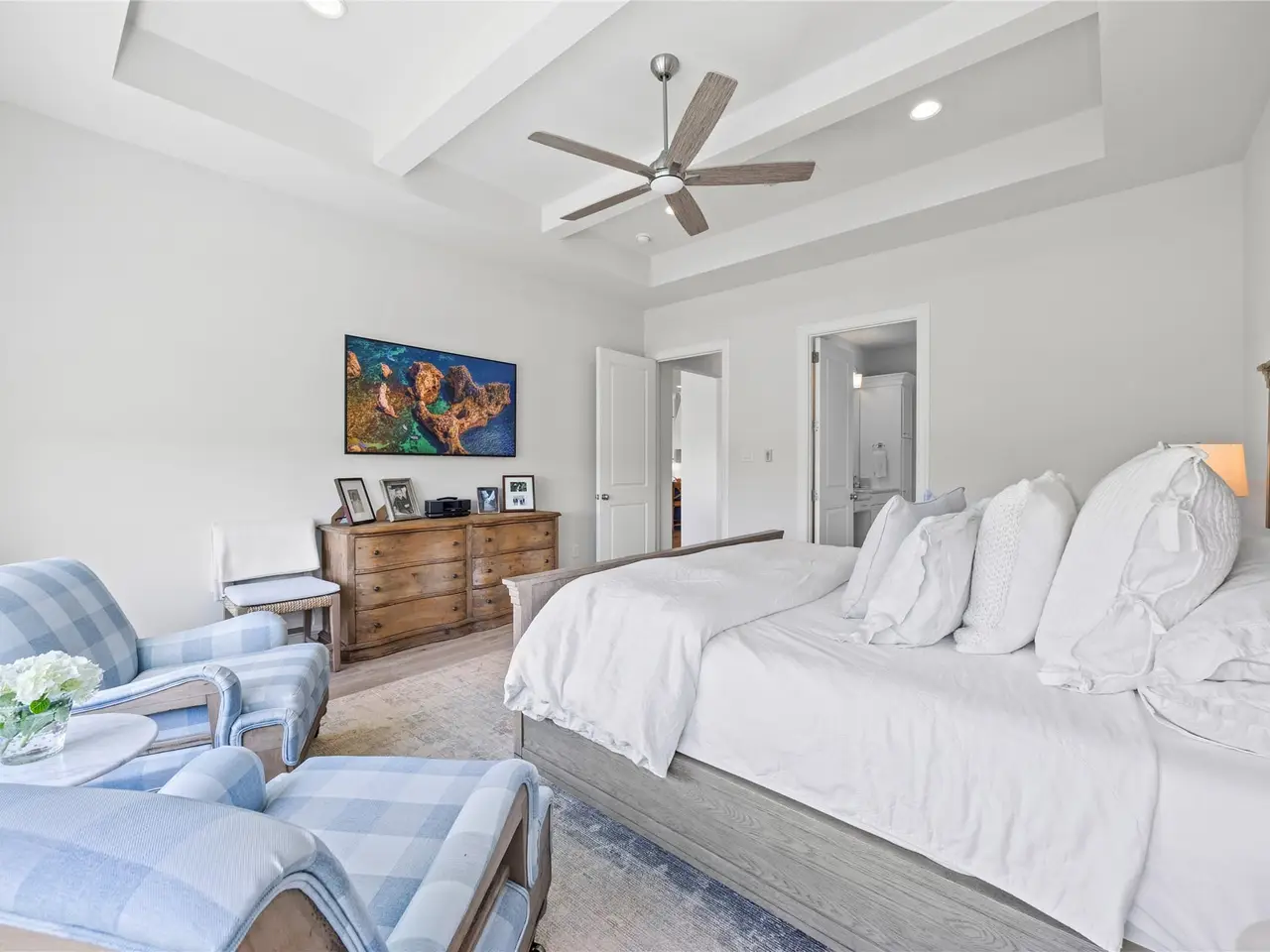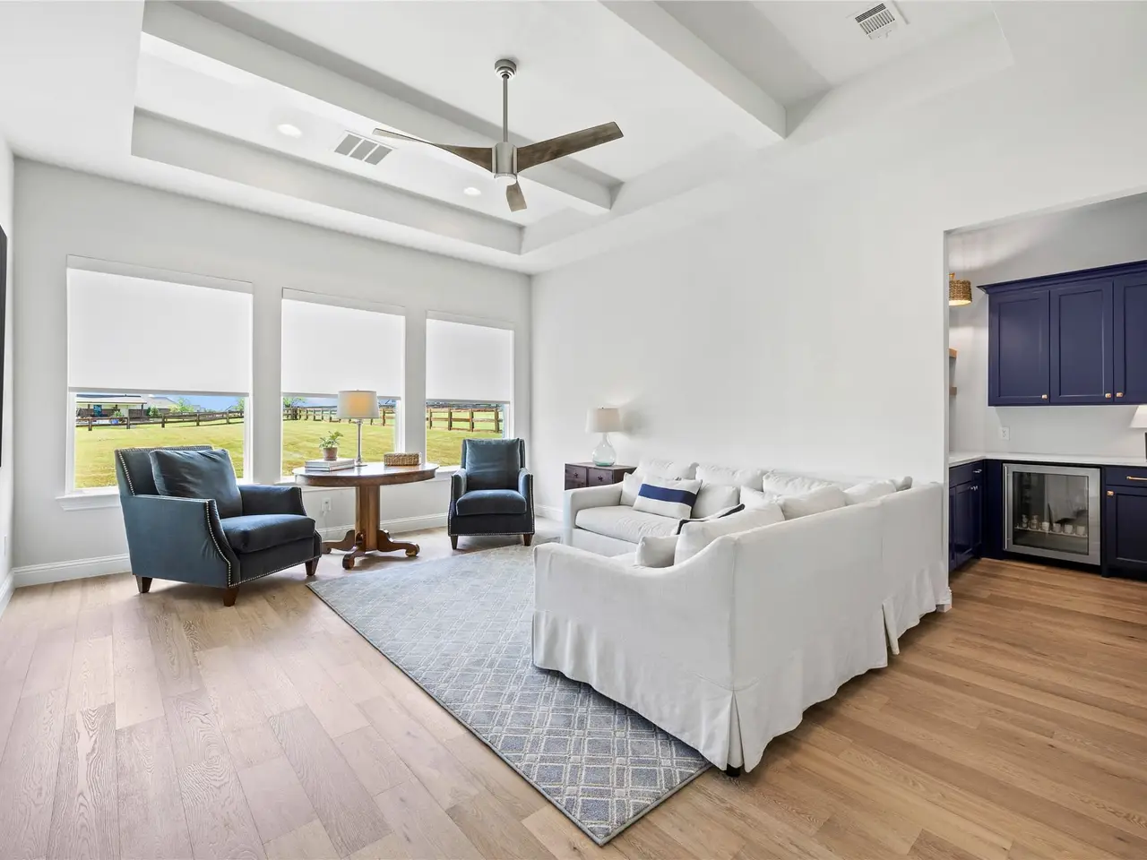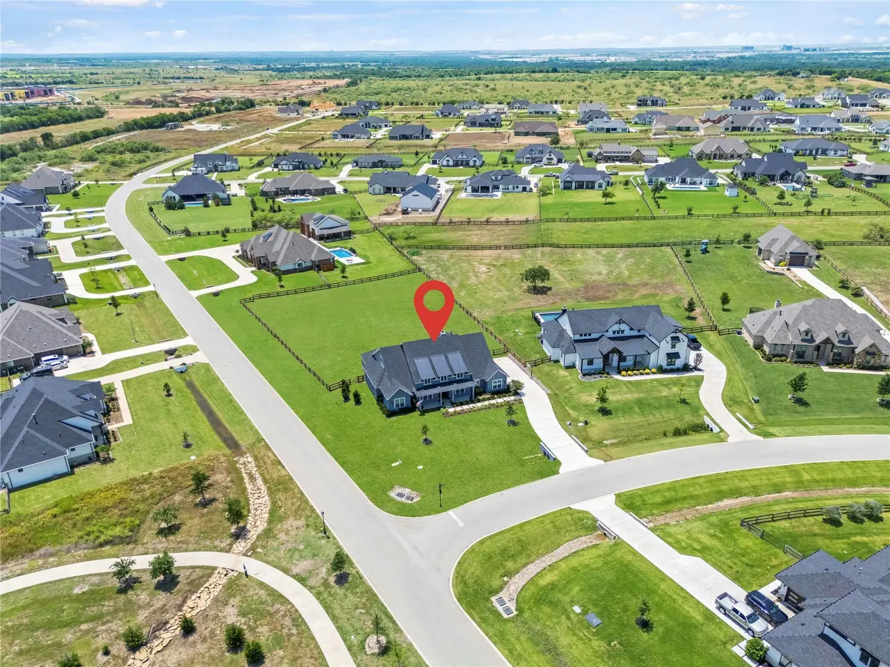 Experience timeless elegance in this custom one-story by Noble Classic Homes, set on over an acre with greenbelt views. Featuring 4 bedrooms, 3.5 baths, and wood floors throughout, this home blends classic charm with modern luxury. The gourmet kitchen boasts Dacor appliances, quartz countertops, and a walk-in pantry, while the light-filled primary suite offers Carrara marble finishes, dual vanities, soaking tub, and a double-entry shower. Three additional bedrooms provide comfort and flexibility, complemented by a spacious game room with wet bar. Walk outside and enjoy the covered patio complete with a built in grill and wood burning fireplace. Additional features include an oversized 3-car garage with epoxy floors and walk-up attic storage, tankless water heater, oversized septic, and generator-ready gas line. With its high end finished and thoughtful layout, this home is a rare opportunity to own a true classic with all the modern amenities!