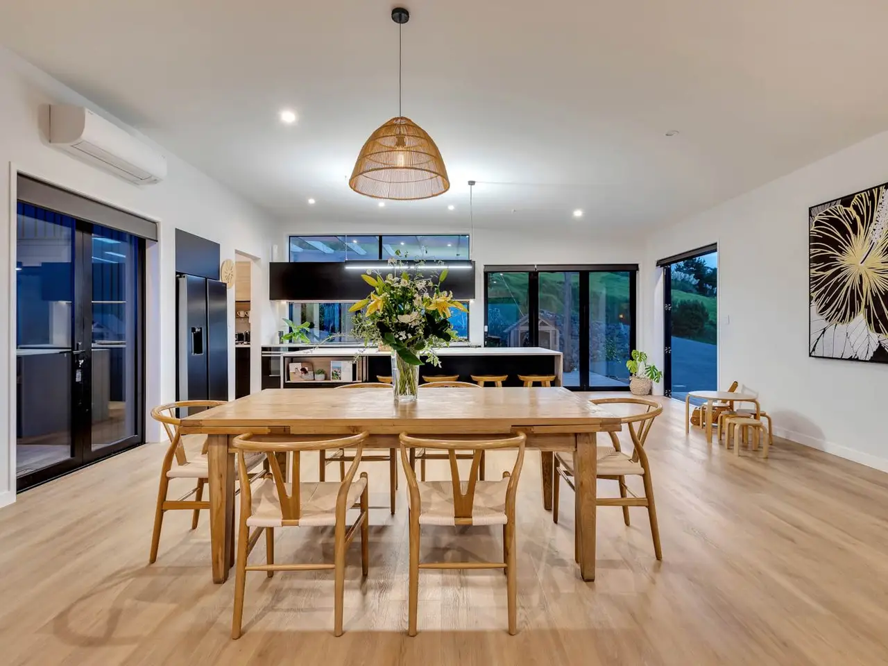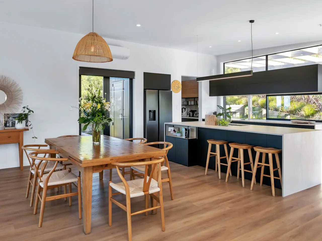 In the heart of Langs Beach, our Vendors envisioned a special home that serves as a sanctuary away from the hustle and bustle of everyday life, allowing them to connect with nature and enjoy breathtaking views of the Pacific Ocean. With their young family in mind, the bespoke design features open and spacious living areas alongside outdoor spaces for relaxation and play. It harmonizes with the unique landscape while maximising ocean vistas. The lower floor includes three bedrooms, a bathroom, a study nook, a bunk/rumpus room, and a double garage, all connected by polished concrete floors and stairs. The upper floor houses the main living areas, highlighted by the designer kitchen, which overlooks the dining and family room. The floor steps down to the cozy lounge area that also enjoys stunning sea views. The master suite offers a private retreat, with a beautiful view of the ocean, complemented by a walk-in wardrobe and ensuite. Two outdoor spaces— a sheltered deck and courtyard—provide comfortable areas for gatherings, whether for family and friend barbecues or quiet evenings. Easy access to the beach via the private walking track at the bottom of the section. Ultimately, this stunning family home perfectly blends comfort, style, and functionality, creating a cherished sanctuary that brings the beauty of the Pacific Ocean and the warmth of family life together. Viewing by appointment.