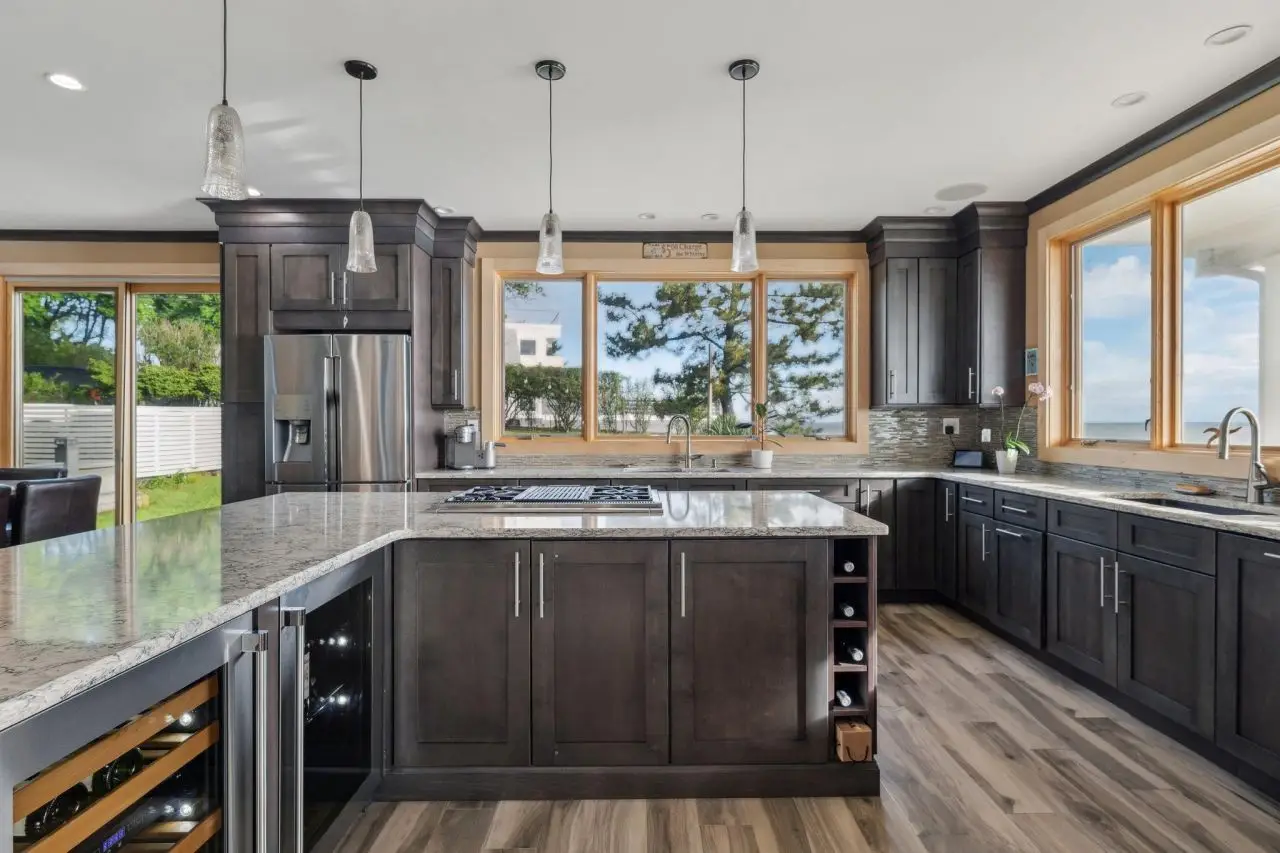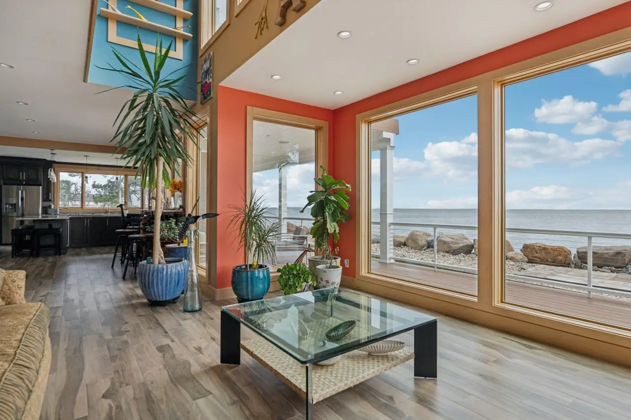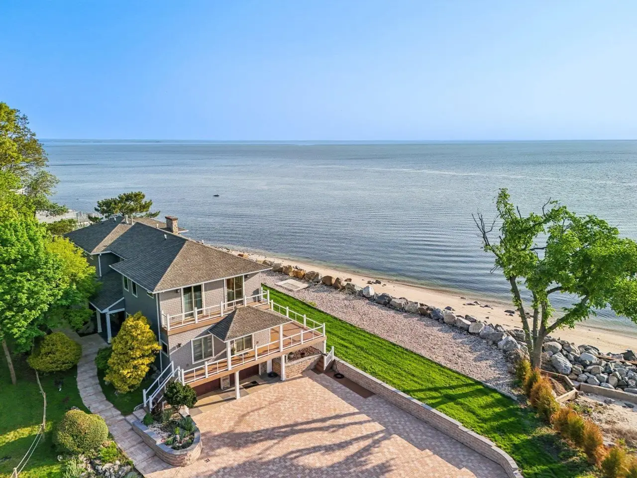 Experience the pinnacle of waterfront living in this exceptional 4,000 sq ft Asharoken estate, boasting the most coveted views and the second-largest water frontage after the famed Morgan Estate. This custom-built contemporary offers approximately 220 feet of private sandy beach along the Long Island Sound, providing dramatic, unobstructed 180-degree water views from nearly every room. Revel in the open-concept design featuring a stunning kitchen with custom details, luxurious custom closets, and a palatial ensuite primary bedroom with dual private decks and a spa-inspired bathroom. With premium finishes like Pella windows, soaring ceilings, and multiple Trex decks, this residence is designed for sophisticated coastal living. Beyond its striking aesthetics, this property offers unparalleled convenience and peace of mind. Enjoy the separate guest quarters, two gas fireplaces, and a walk-out basement leading to the garage. Recent upgrades include a brand-new septic system, a new driveway, a new privacy gate and landscaping enhancements. Benefit from the rare advantage of not requiring flood insurance and the security of a full-house generator. This Diamond+++ rated home is a true sanctuary, offering a permanent vacation lifestyle in one of Long Island's most desirable locations.
