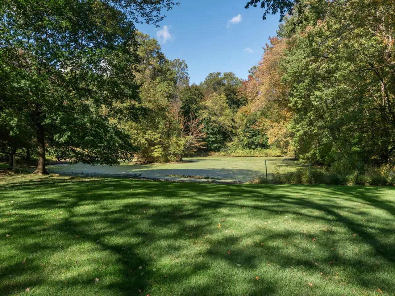 Expansive deck overlooking pond