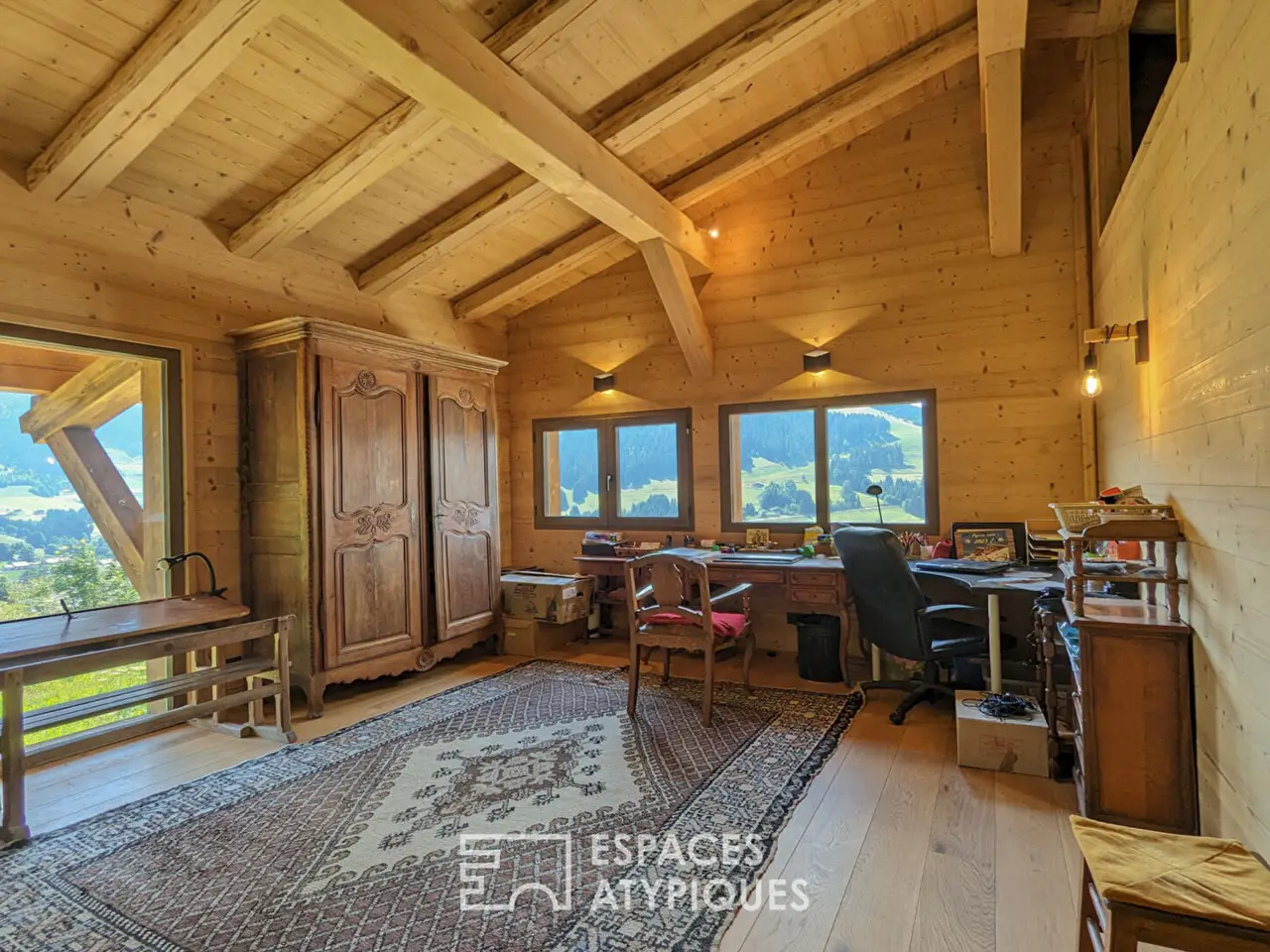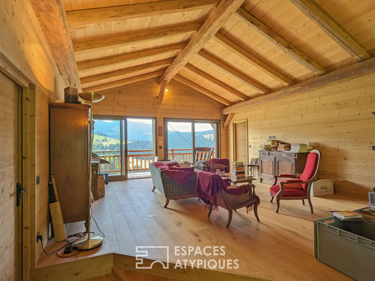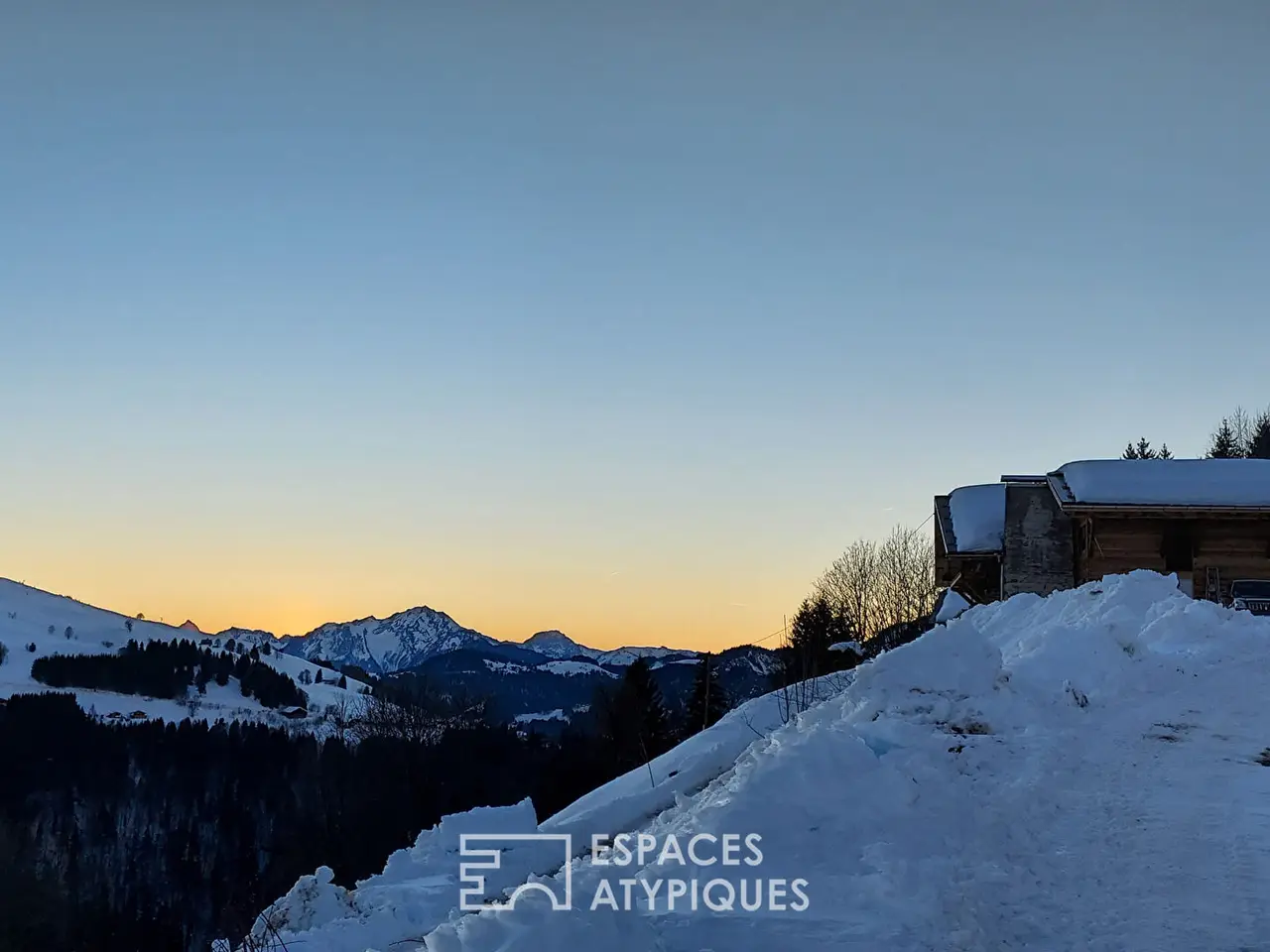 La terrasse offre une vue imprenable sur les montagnes environnantes et complete cet espace.