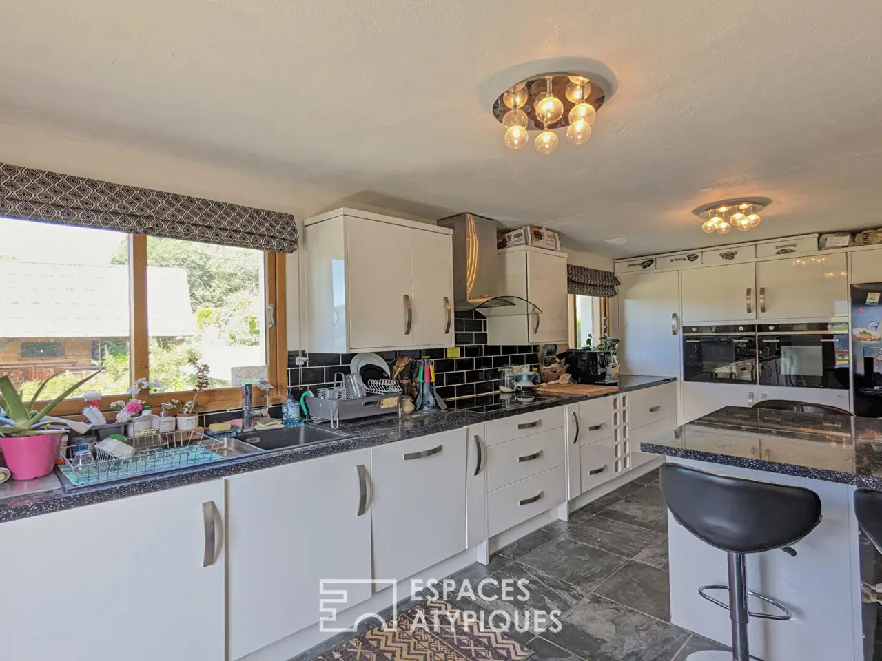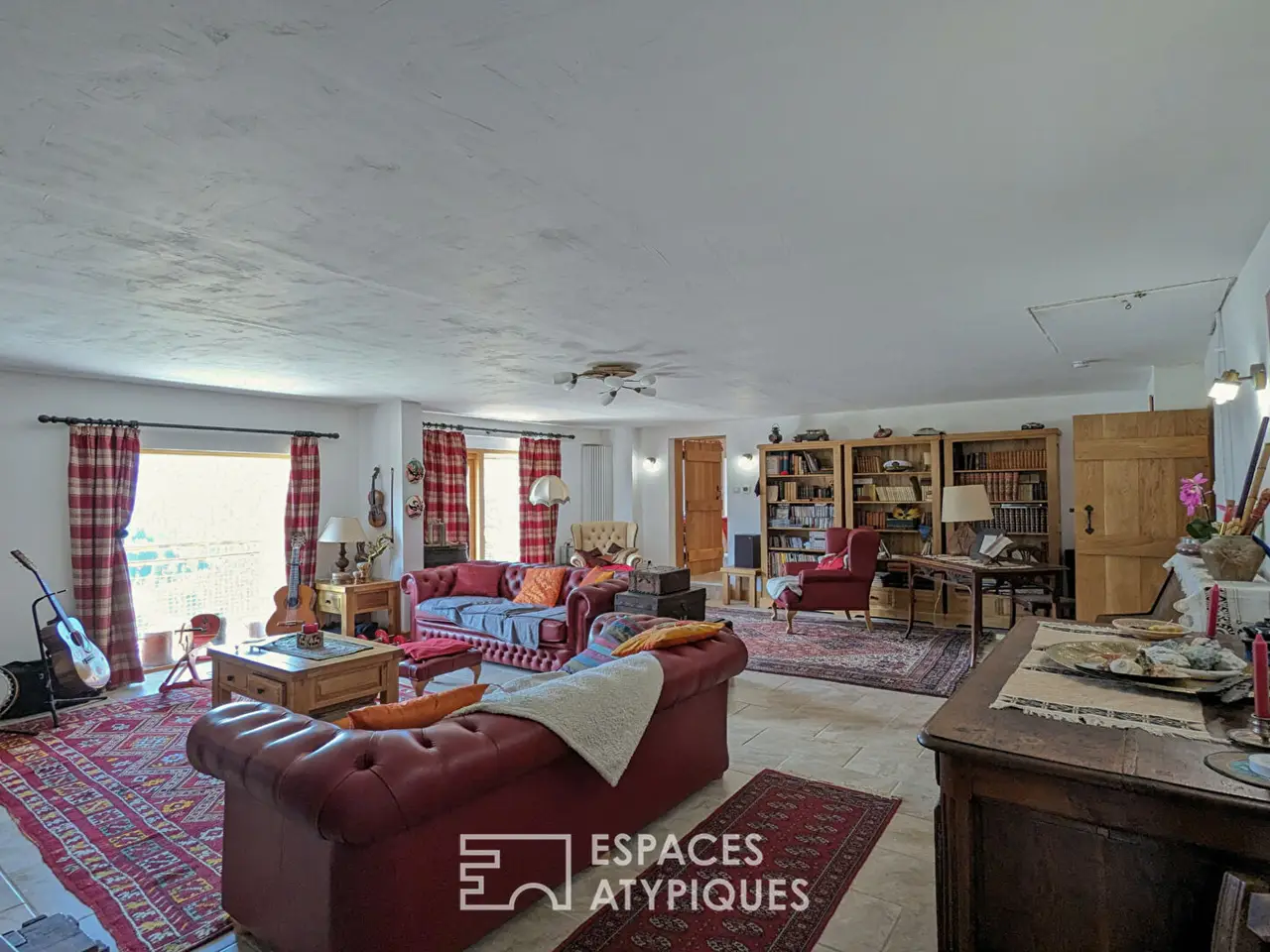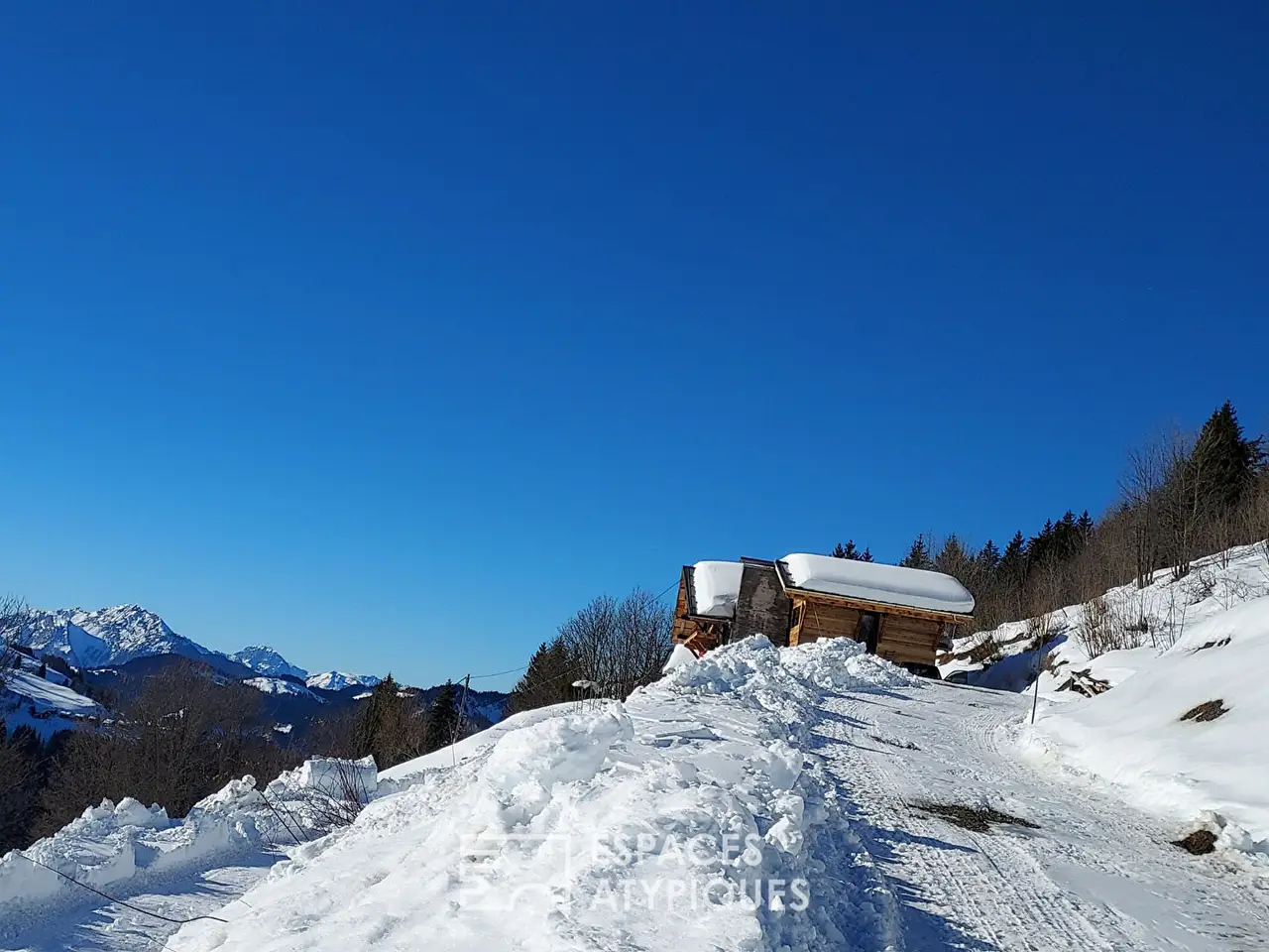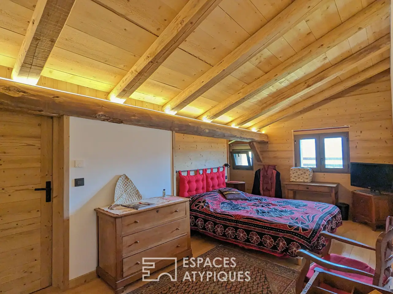 La terrasse offre une vue imprenable sur les montagnes environnantes et complete cet espace.