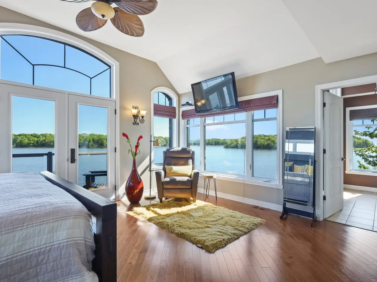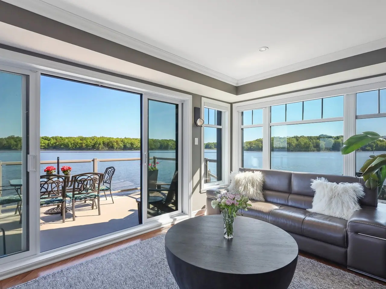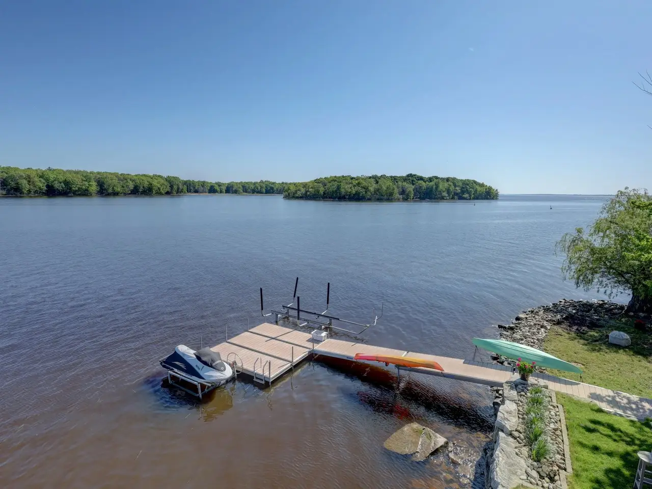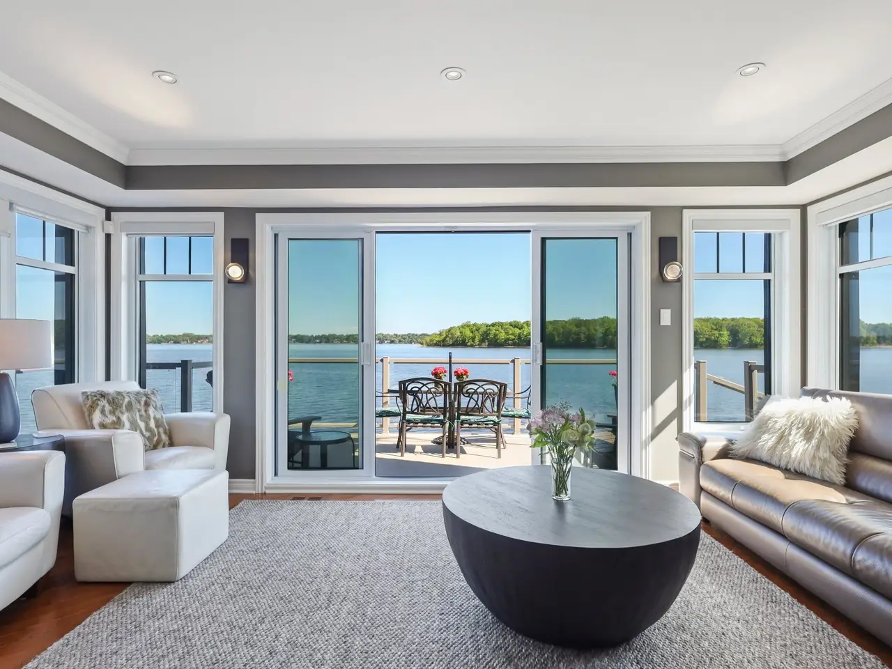 Experience unparalleled waterfront living on a private peninsula with 360-degree views of Lac St-Louis, gated entrance, and a stunning unistone driveway. This exceptional home features three fireplaces and an open-concept main floor with breathtaking views. The chef's kitchen boasts granite counters and a butler's pantry. Upstairs, the retreat-style primary suite offers walls of windows, 10-foot ceilings, a spacious walk-in closet, and an ensuite. 2 bedrooms with basement or office that can be converted into a 3rd bedroom. Built in 2008 and beautifully rejuvenated in 2021 with new siding, triple-pane windows, and exterior doors. A rare gem.