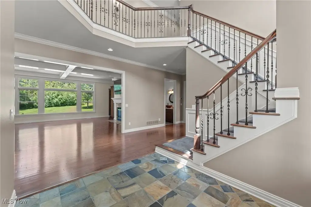 Stone and wood foyer