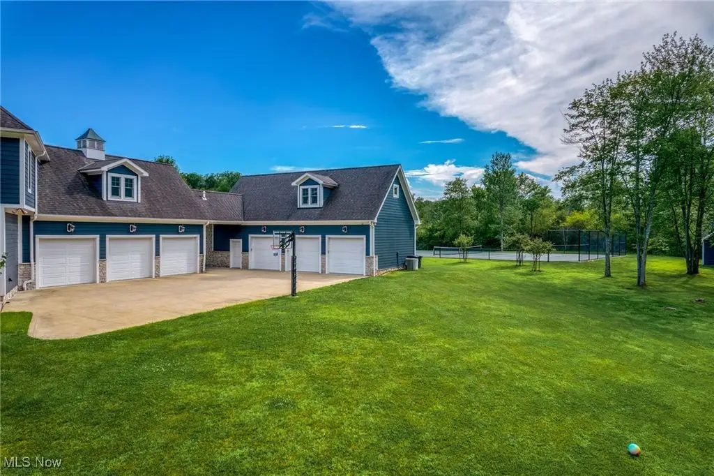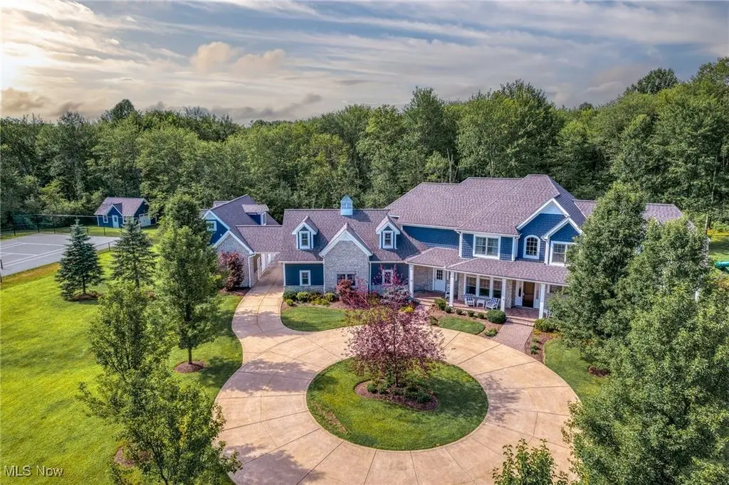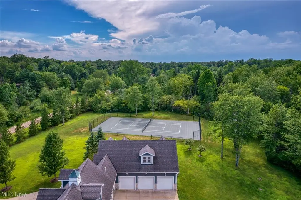 Welcome to this exceptional 5-acre estate offering over 8400 square feet of refined living space across 3 levels, plus a separate 894 sq.ft, 2-story guest apartment above a detached 3 car garage. Built in 2006 with extensive custom upgrades, this property combines timeless elegance with modern luxury in a serene and private setting. A circular drive leads to a covered porte cochere and rear entry garages. Inside, a dramatic 2 story stone and wood foyer opens to gracious entertaining spaces. The main level features a spacious great room with a fireplace, a formal library with glass French doors, built-in cabinetry, and fireplace, and a gourmet kitchen with stainless steel deluxe appliances with a cozy gathering area with its own fireplace - all overlooking a stone patio and expansive backyard. The lower level, accessible by 2 staircases is an entertainer's dream! It includes a state-of-the-art home theater with acoustic walls and theater-style seating, a temperature-controlled wine cellar, a large game room, with built-in bar, a dedicated exercise room with adjacent full bath. Upstairs, the oversized primary suite offers a fireplace, a custom walk-in closet, and a luxurious bath. 3 additional bedrooms, 2 full baths and a spacious bonus room (or 5th bedroom with another full bath complete the upper level. A short walk from the main house brings you to the detached 3 car garage with 1 bedroom guest apartment above - ideal for family, guests or private studio / workspace. Just beyond a a private tennis court newly completed in Summer of 2024. This property is a rare blend of elegance, comfort, and lifestyle amenities, offering a truly exceptional place to call home.