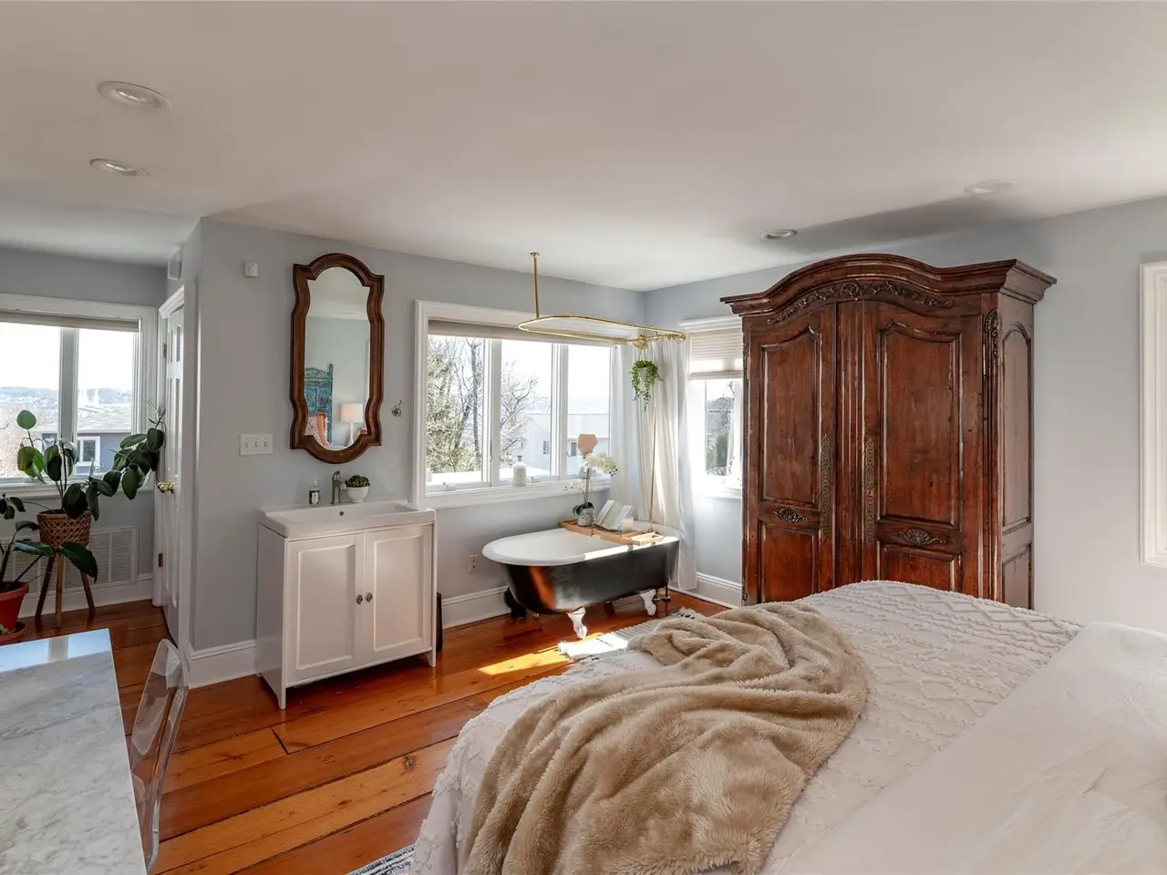 A Legacy of Elegance: Historic Hudson River Estate with Modern Luxury This extraordinary mini-estate includes a five-bedroom home, five-car garage, private guest cottage, and an office studio sited on 1.37 acres with commanding views of the Hudson River. The main home, a harmonious marriage of old-world charm and modern chic, exudes a sense of peace and calm from the moment you enter. High ceilings, reclaimed wide plank wood floors, and multiple fireplaces create an inviting ambiance, perfect for intimate gatherings and grand celebrations. Entertain with ease on multiple decks and open porches, each offering astounding Hudson River views. A luxurious first-floor primary suite enjoys an en-suite bathroom, fireplace, enormous closet, and private deck access.The beautifully renovated kitchen, featuring a generous size island, Viking 6-burner stove with grill, and Bosch dishwasher, is a chef’s dream. A second-floor bedroom with a three-season sunroom and double-deck access offers panoramic river views. The lower-level gym with an adjacent bathroom and steam shower caters to your wellness needs. Beyond the main residence, discover two enchanting retreats: a private guest cottage with a soaking tub and large private deck, perfect for inspiring relaxation, and a charming writer’s cottage/office studio, complete with a wood-burning stove, is a serene space for focus and creativity. More than $500,000 in recent meticulous improvements have transformed this iconic residence. A brand-new slate roof with elegant copper flashing has restored the home's historic architectural significance and ensures lasting beauty and protection. Four Tesla Powerwalls provide whole-property emergency power, ensuring seamless comfort and security. Since 1850, this property has offered business moguls and celebrities an unparalleled lifestyle. A true sanctuary, this property is documented to have been a cherished retreat for a young Jacqueline Kennedy Onassis and later became the childhood home of Hailey Bieber. Located just minutes from the vibrant Villages of Nyack and Piermont, you'll enjoy a rich tapestry of dining, shopping, and recreational opportunities. Whether you crave fine dining and lively bars or invigorating hikes and scenic bike rides, Nyack delivers. This is more than a home; it’s a legacy. Embrace the tranquility, history, and the unparalleled beauty of this exceptional Hudson River estate just 30 minutes from the GW Bridge and the heart of NYC. Total taxes = $27,306.48 (2024 School taxes = $20,027.07; 2025 T & C taxes =$7,279.41). Does not include basic STAR rebate