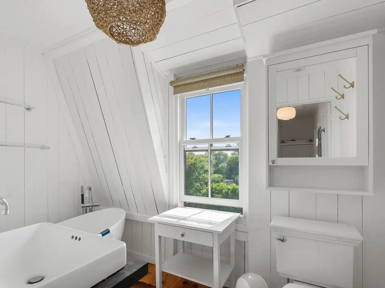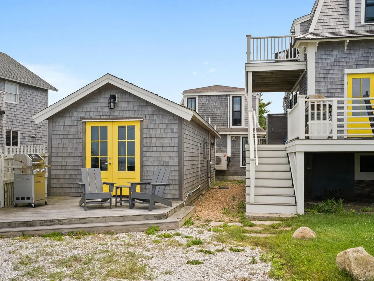 With a striking presence overlooking Nantucket Sound and just moments from the vibrant pulse of downtown, this distinctive compound is infused with a laid-back West Coast spirit while honoring the vintage charm of Oak Bluffs. Airy and effortlessly elegant, the four-bedroom main house has been masterfully updated, introducing refined, contemporary comforts, designed for every season. Tucked to the rear of the property, a private guest house-affectionately known as The Nest-has undergone a similar transformation and offers a private escape. Adjacent to the main home, the charming bunk house completes the ensemble, perfectly complementing this unique and inviting expansive compound. Though the wraparound porch invites you to linger with its endless ocean views, the nearby beaches, boutique shops, acclaimed restaurants, and the contagious energy of Circuit Avenue and the Harbor are all steps away, offering something for everyone to enjoy. For those seeking flexibility, the home's established rental history further highlights the desirability of both the property and its coveted location. An exciting opportunity to own in one of Oak Bluff's iconic settings! The Nest is a 616-square-foot guest house with a private deck, an outdoor shower, and a parking area. The living space is located on the first floor and has a full bath. The upstairs bedroom, with a private balcony, overlooks Farm Pond to Nantucket Sound. The Lilac House - this fun bunk house, perfect for the younger generation, is open-concept, has a full bath, front deck with waterviews, and a private outdoor shower and deck.