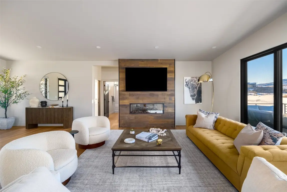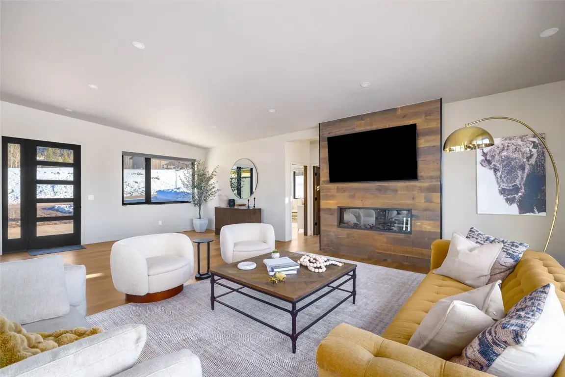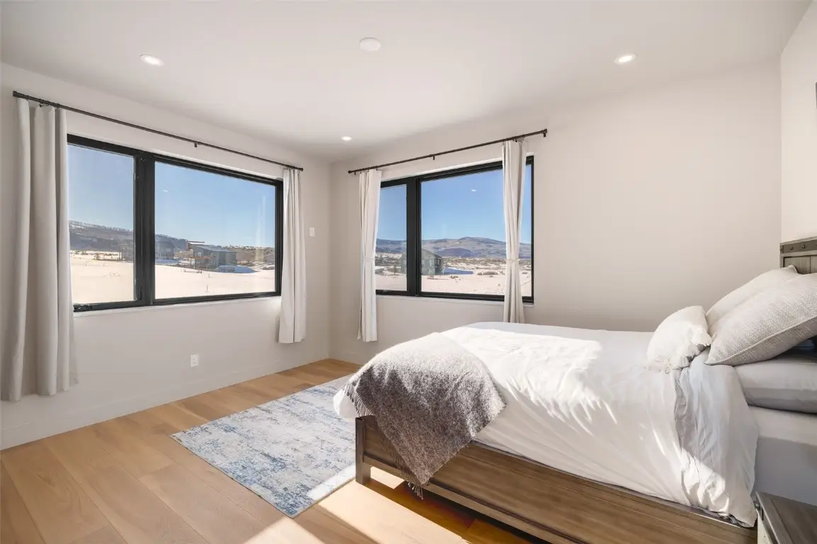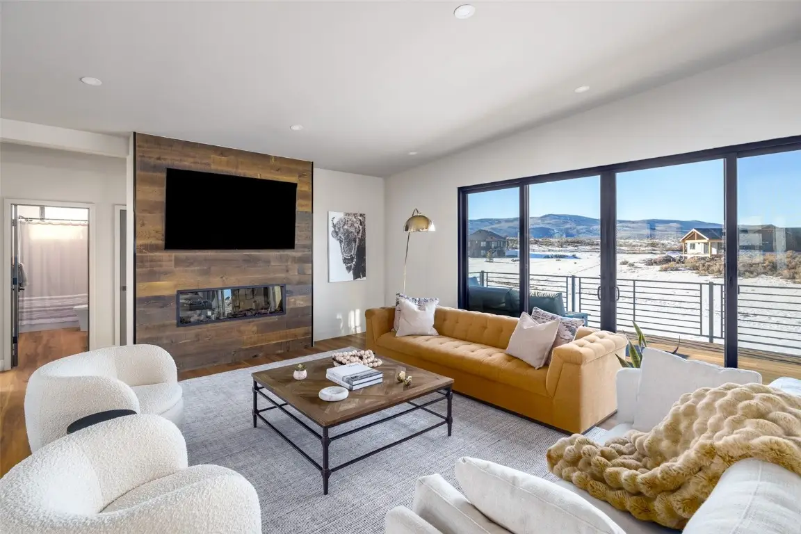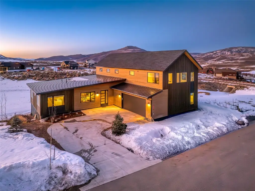Welcome to 2355 Stageline Avenue, where luxury meets nature in this stunning mountain retreat. Offering 4,300+ sq. ft of living space, this home is designed for comfort, elegance, and breathtaking views. Step inside to vaulted ceilings that create an immediate sense of grandeur. The open-concept layout is perfect for entertaining, while floor-to-ceiling windows flood the space with natural light and panoramic mountain views. The primary suite is a true sanctuary, located on the top level for the ultimate in privacy and serenity. Boasting 8 large windows, this stunning retreat offers unobstructed views of Stagecoach Reservoir, ensuring you wake up to awe-inspiring scenery every day. The suite features motorized blackout shades for ultimate comfort and an opulent en-suite bathroom complete with an oversized soaking tub, LED mirrors, dual sinks, and a spacious walk-in closet. A versatile loft/flex space adjacent to the suite provides additional room for an office, reading nook, or yoga space. The heart of the home is the chef’s kitchen, boasting 26-ft cathedral ceilings, London blue cabinetry with gold finishes, THOR appliances, Calacatta Idillio Quartz countertops, and a subway tile backsplash. The built-in Sonos system ensures seamless sound throughout. Premium finishes include solid core driftwood-stained doors, Revere pewter trim, and custom baseboards. The fully finished basement offers a second living area, and a large 5th bedroom that could also be used as a rec room or bunk room, a large mechanical room with almost 500 sq. ft. of storage, and a walkout patio leading to a flat backyard. The exterior blends wood, metal, and black roofing for a modern, rustic appeal. Located 1.4 miles from Stagecoach Reservoir. Adjacent to nearly 2 acres of HOA-protected green space, with scenic walking trails just steps away. With its unparalleled craftsmanship, luxurious finishes, and spectacular surroundings, this home is a rare opportunity to own a piece of Colorado paradise.