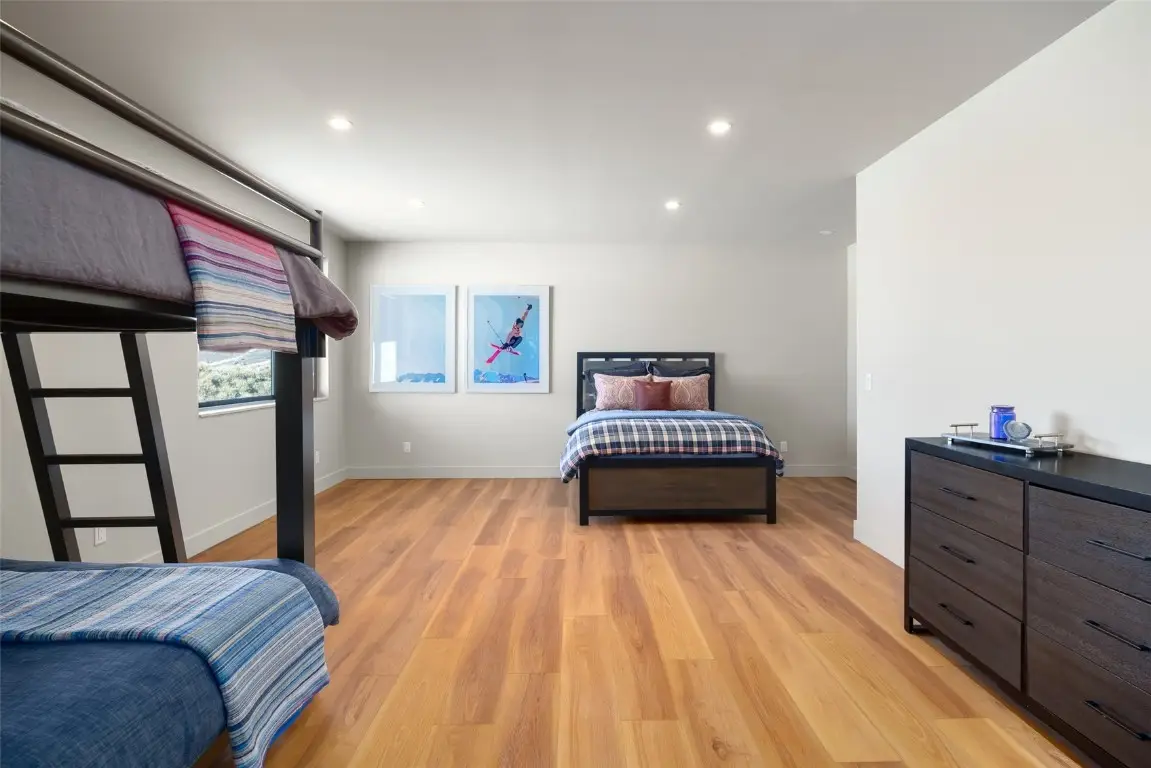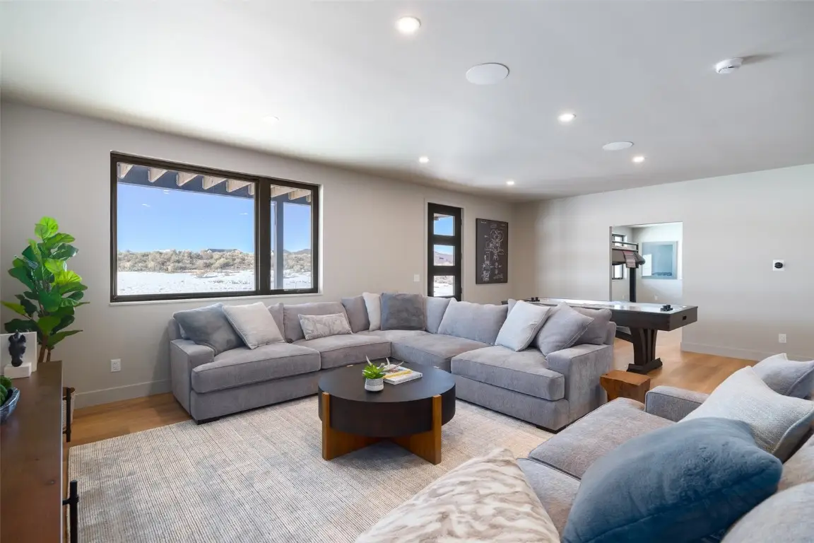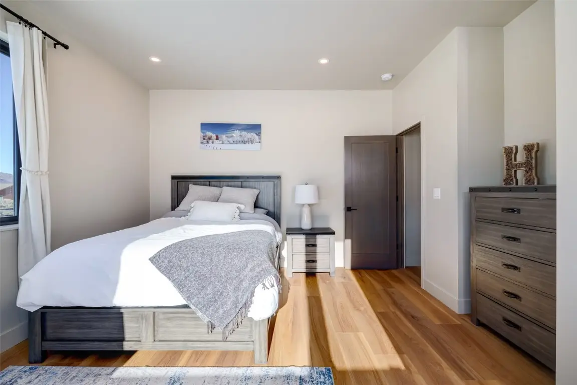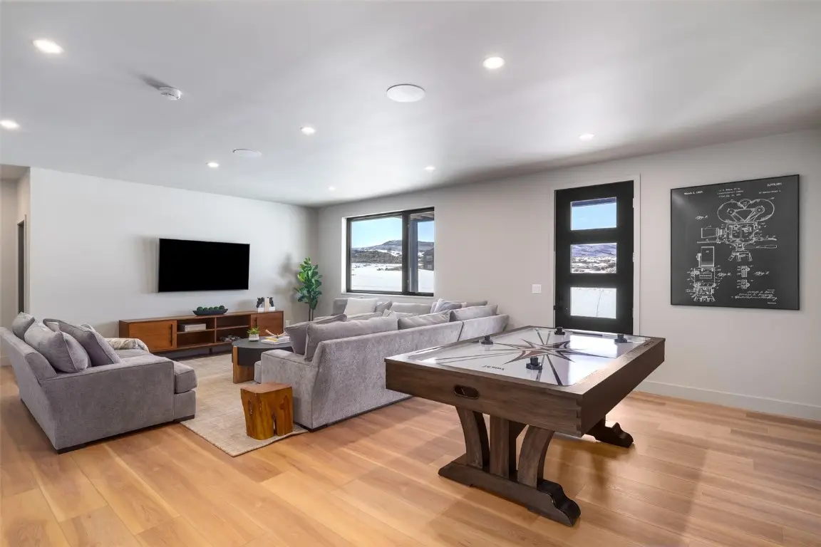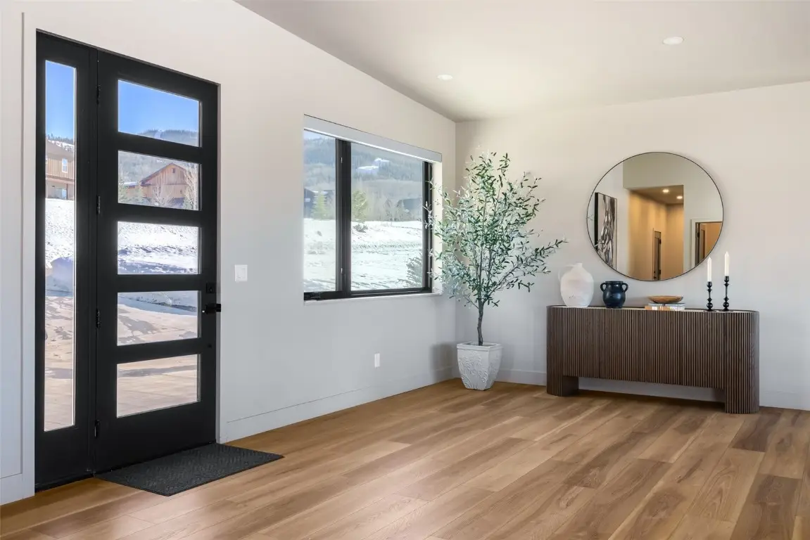 Welcome to 2355 Stageline Avenue, where luxury meets nature in this stunning mountain retreat. Offering 4,300+ sq. ft of living space, this home is designed for comfort, elegance, and breathtaking views. Step inside to vaulted ceilings that create an immediate sense of grandeur. The open-concept layout is perfect for entertaining, while floor-to-ceiling windows flood the space with natural light and panoramic mountain views. The primary suite is a true sanctuary, located on the top level for the ultimate in privacy and serenity. Boasting 8 large windows, this stunning retreat offers unobstructed views of Stagecoach Reservoir, ensuring you wake up to awe-inspiring scenery every day. The suite features motorized blackout shades for ultimate comfort and an opulent en-suite bathroom complete with an oversized soaking tub, LED mirrors, dual sinks, and a spacious walk-in closet. A versatile loft/flex space adjacent to the suite provides additional room for an office, reading nook, or yoga space. The heart of the home is the chef’s kitchen, boasting 26-ft cathedral ceilings, London blue cabinetry with gold finishes, THOR appliances, Calacatta Idillio Quartz countertops, and a subway tile backsplash. The built-in Sonos system ensures seamless sound throughout. Premium finishes include solid core driftwood-stained doors, Revere pewter trim, and custom baseboards. The fully finished basement offers a second living area, and a large 5th bedroom that could also be used as a rec room or bunk room, a large mechanical room with almost 500 sq. ft. of storage, and a walkout patio leading to a flat backyard. The exterior blends wood, metal, and black roofing for a modern, rustic appeal. Located 1.4 miles from Stagecoach Reservoir. Adjacent to nearly 2 acres of HOA-protected green space, with scenic walking trails just steps away. With its unparalleled craftsmanship, luxurious finishes, and spectacular surroundings, this home is a rare opportunity to own a piece of Colorado paradise.