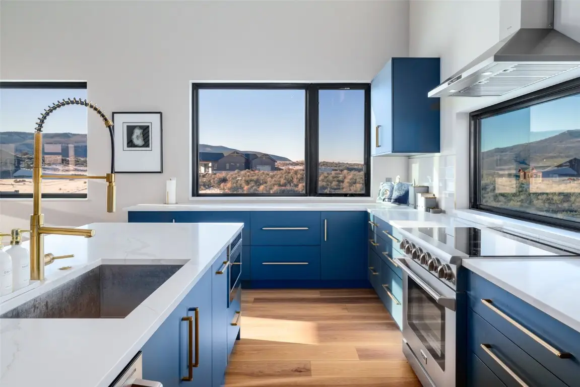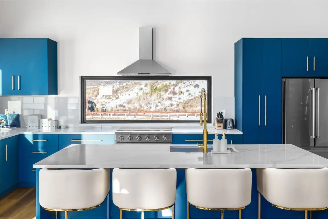 Chef’s kitchen with cathedral ceilings and THOR appliances