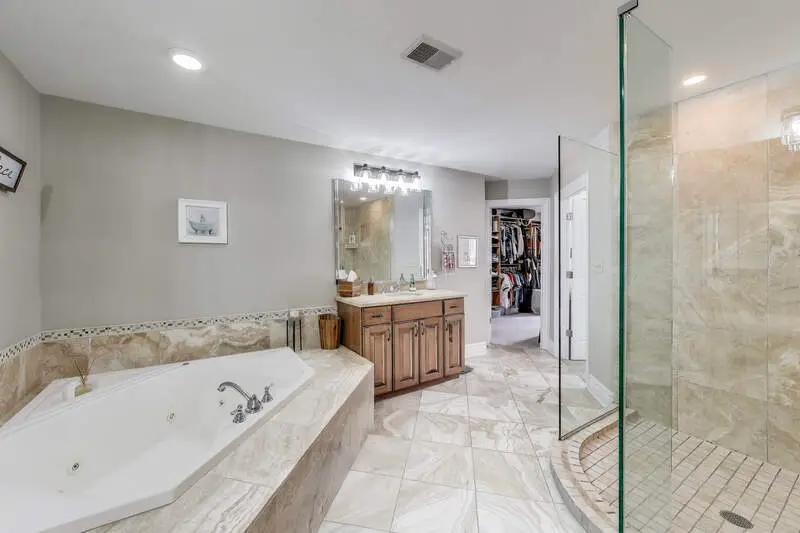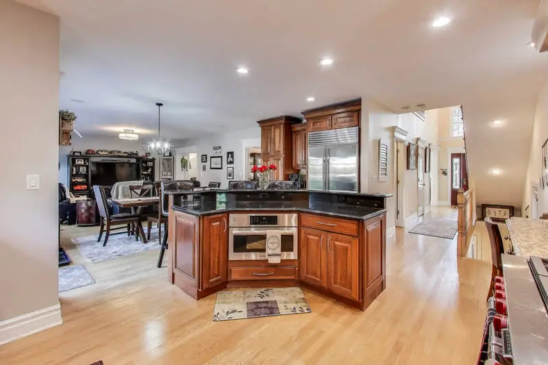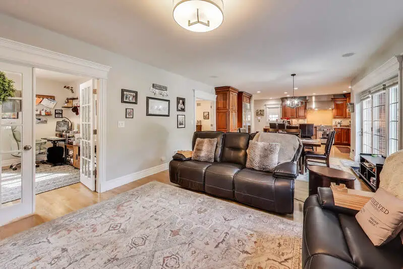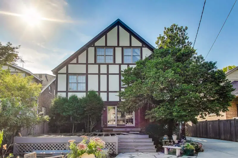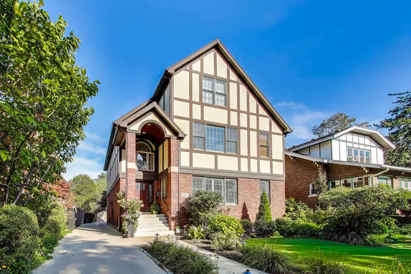 Prime Oak Park location! This impressive Tudor sits on an oversized 53x173 lot with a side drive and 3-car garage. Offering 5 bedrooms, 5.1 baths, and over 5,100 sq. ft. of living space, the home blends timeless character with modern updates. Step into a grand entry with a stunning, height-adjustable chandelier. The formal living room with fireplace flows seamlessly into the dining room. A chef's kitchen features a Wolf range, Sub-Zero refrigerator, Bosch microwave, and large island-perfect for cooking and conversation. Sun-filled family room opens to a spacious (590 sq. ft.)Trek deck (50-year warranty) with a custom 3-season room in progress (permits complete). Second floor includes 4 bedrooms-two ensuite (including the primary with walk-in closet)-plus a second laundry. The bright third level offers a new bath, walk-in closet/dressing table, and flexible living space, ideal for guests or extended family. Lower level highlights recreational/workout room, a "Costco closet," additional laundry, great storage, and full bath. Beautifully landscaped grounds feature uplighting, a firepit, and expansive yard for entertaining. Updates include solar panels, 2 new HVAC systems (last 6 yrs), hot water tank, new Bosch microwave, mechanical skylight blinds, all new windows, California Closets, and more. A rare Oak Park offering with space, style, and thoughtful improvements throughout!