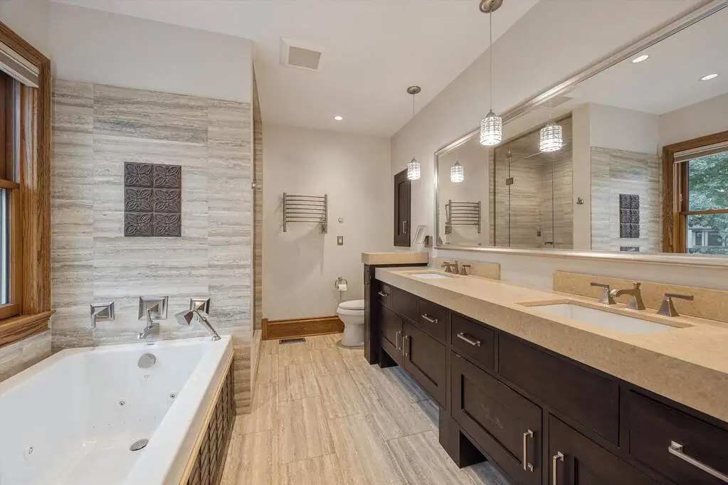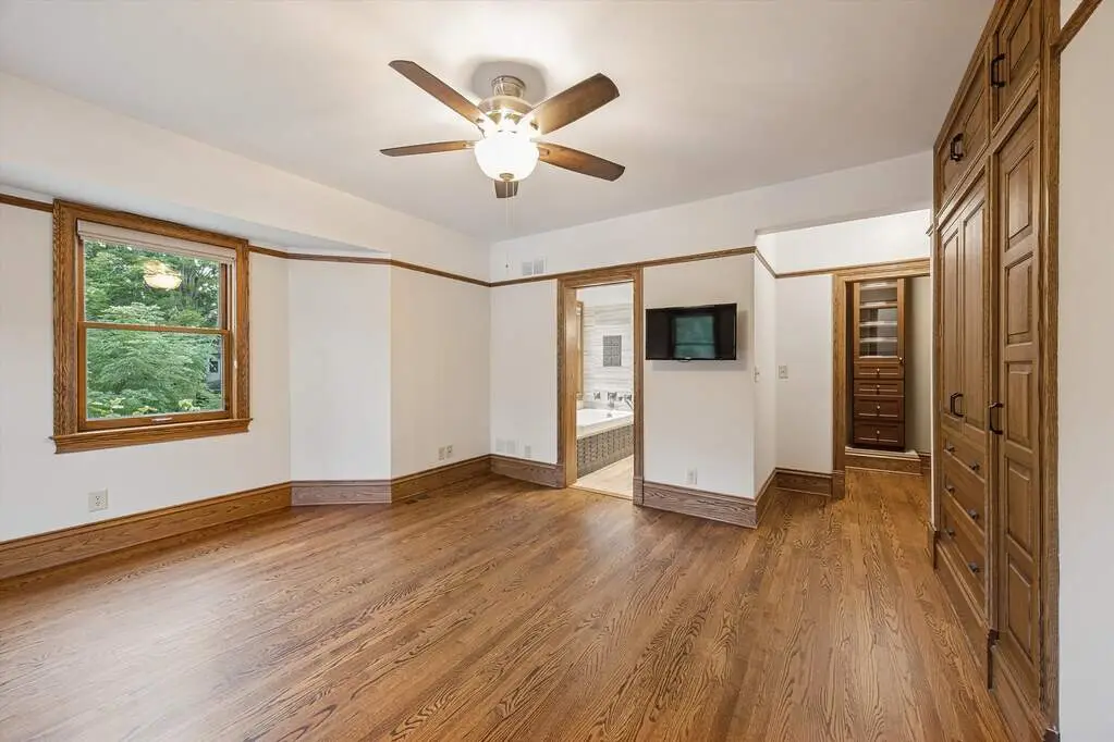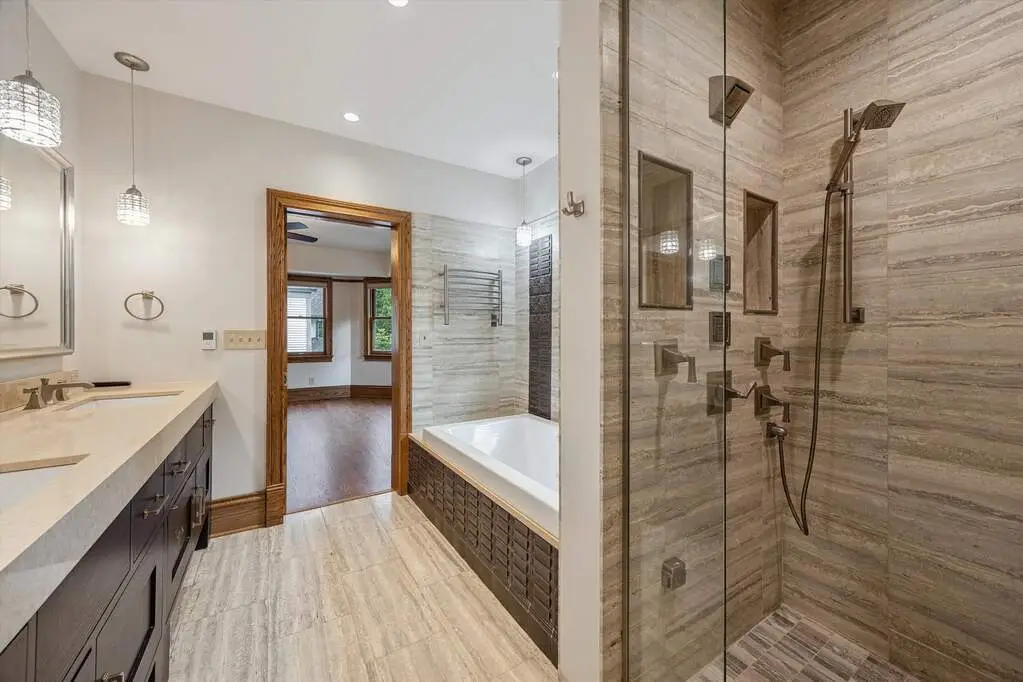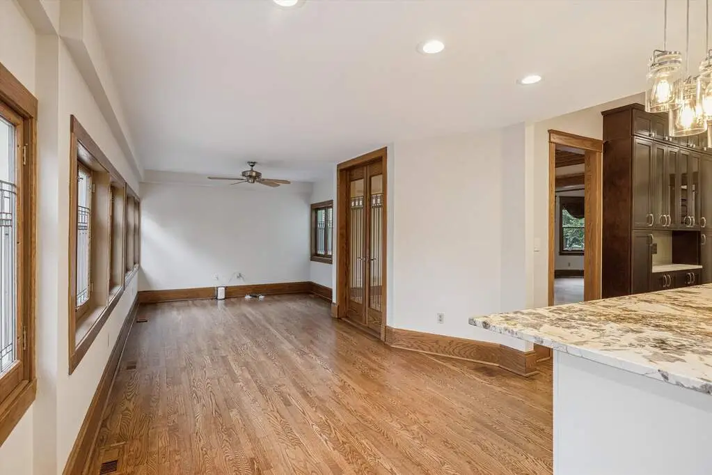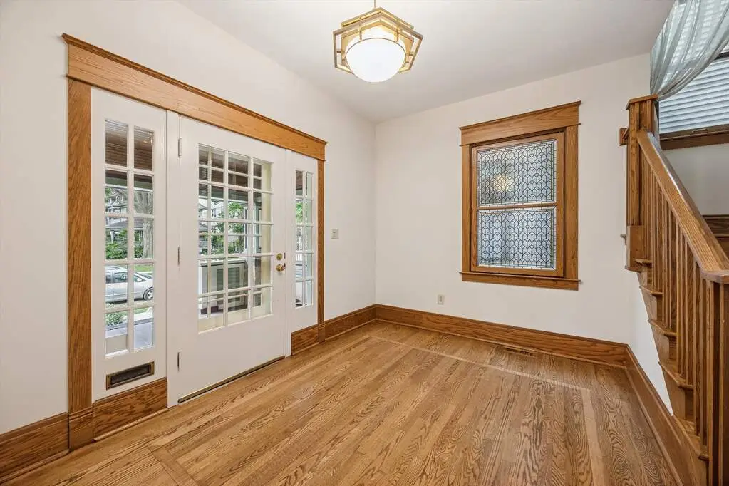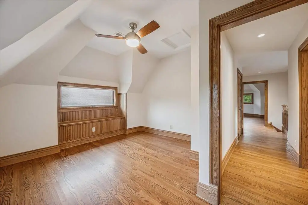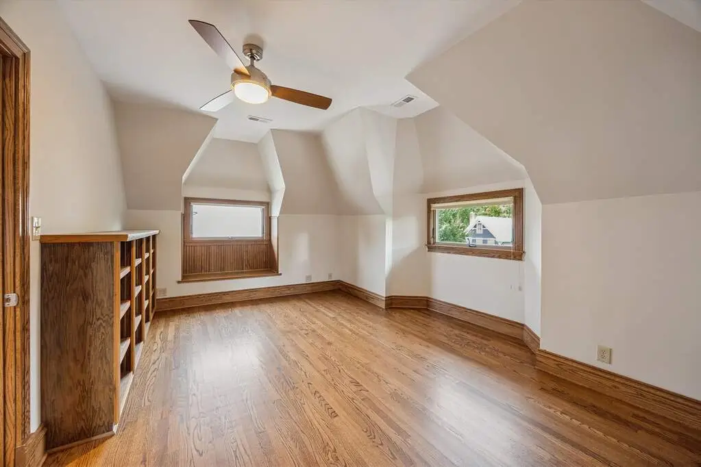 Welcome to The Francis J. Woolley House built in 1893. This Frank Lloyd Wright transitional masterpiece is spacious, restored and updated. Enjoy the unique and special neighborhood with views of other historic homes from your restored front porch (2025). The large foyer opens to the double living room with working fireplace (new liner 2019). A unique light fixture in the dining room highlights the space. Newer custom kitchen (2018) is a cooks delight! Miles of counter space and a huge island allows for everyone to join in meal prep or just relax and chat. Kitchen opens to the family room with beautiful art glass and both have a panoramic view of the multi-tiered deck w/hot tub (2019) and landscaped backyard. 1st floor 1/2 bath with W/D closet redone in (2020). Take the double staircase to the 2nd floor which offers 4 large bedrooms including the primary with its zen-like en suite bath and walk-in closet with custom shelving. 3 additional bedrooms share a large hall bath and all bedrooms have ample closet space. The 3rd floor is a treat, with 3 large rooms which could be additional bedrooms, perfect for guests. However, sellers used it as 2 offices and a guest BR. Basement (perma seal 2018) and new carpet is a great REC room with 1/2 bath, wine room, utility and plenty of additional storage. 2 car garage in fenced in backyard, brick pavers recently power washed. This house has been lovingly cared for and updated over the years. Many, but not all, windows have been replaced, newer floors and bathrooms too. 2 zone HVAC. Fresh neutral decor 2025, floor refinished on 1st floor 2025. Foundation and chimney tuck pointed 2025. This sun filled house has it all, history, architectural pedigree, in-town location and a very open feel throughout. Don't miss this opportunity to own a Wright in the heart of the Frank Lloyd Wright Prairie School of Architecture Historic District and in a walk to everything location! Steam shower, heated floors in primary and outdoor yard sprinkler are as-is.