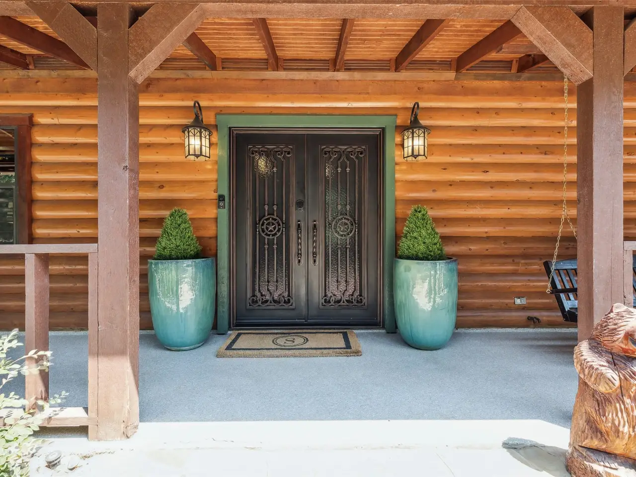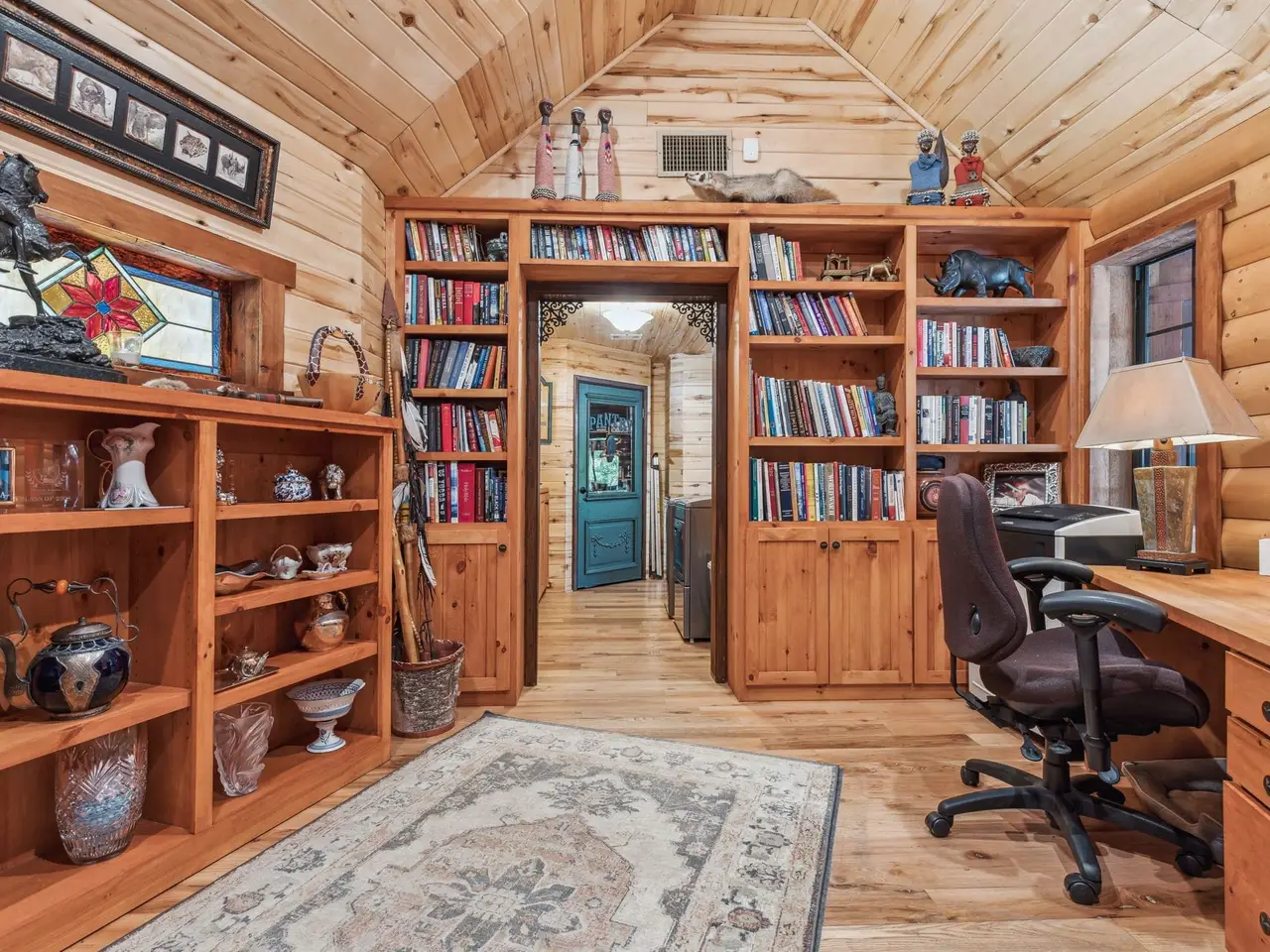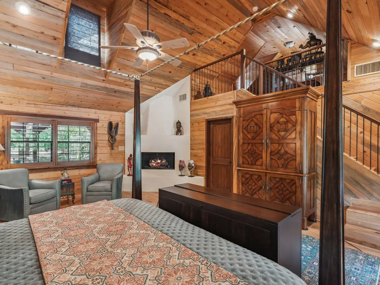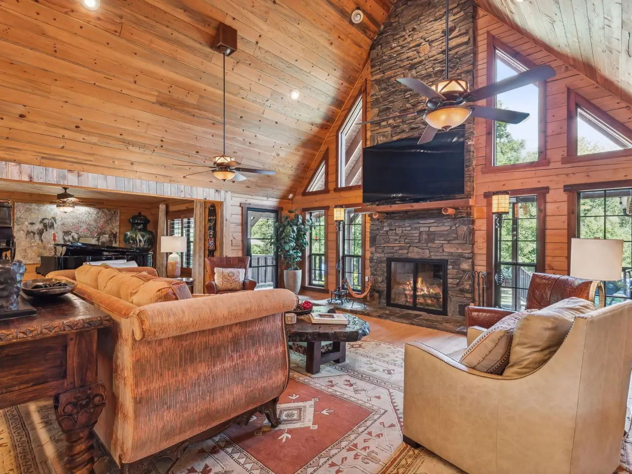 **SERENE RETREAT ON 2 ACRES OF NATURAL BEAUTY** Nestled within 2 acres of lush, heavily treed land, this property offers the ultimate in privacy & tranquility. Relax on the 1,000+ sqft porch & take in mesmerizing star-gazing. The main custom-built home is 4,928 square feet, 3 BDRM, 3 full & 1 half bath 3 LA's,(2 lofts)&an office. Separate Apt is 1629sqft, LR with FP,DR, full kitchen, large BDRM, 1 full & 1 half bath. The shell of the house is crafted from blue pine from Utah and CO. The trim work western red cedar, stairs are ponderosa half logs. Inside is an open-concept design that blends rustic charm with modern comfort. Massive ceiling heights, spacious LA's,& floor-to-ceiling windows flood interior with natural light. Beautiful WD floors & ceilings, & rock fireplaces, add warmth & character to the spaces. Primary suite has a cozy sitting area with a kiva-style fireplace,2 W-I closets, built-ins , and private access to a home gym, & a loft area with limitless possibilities. 4car garage with a storage area