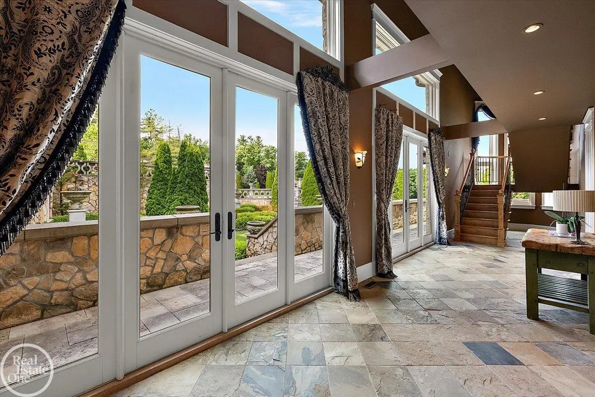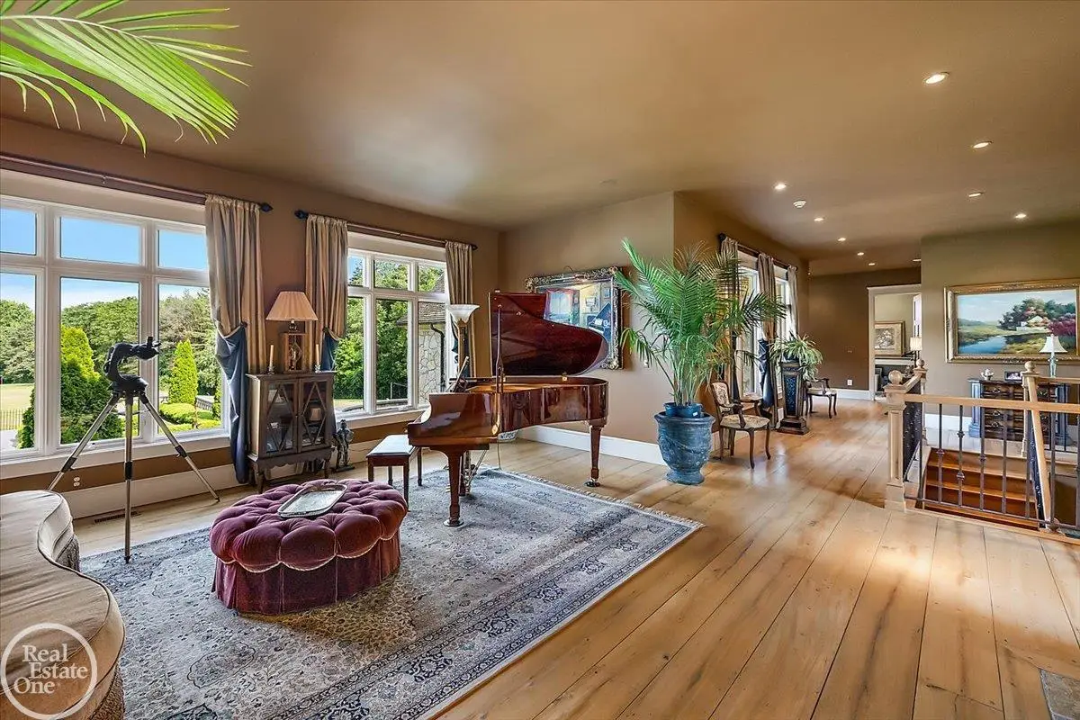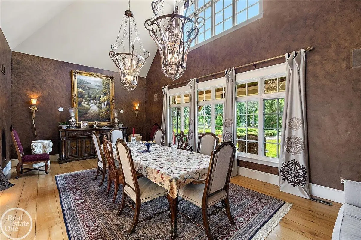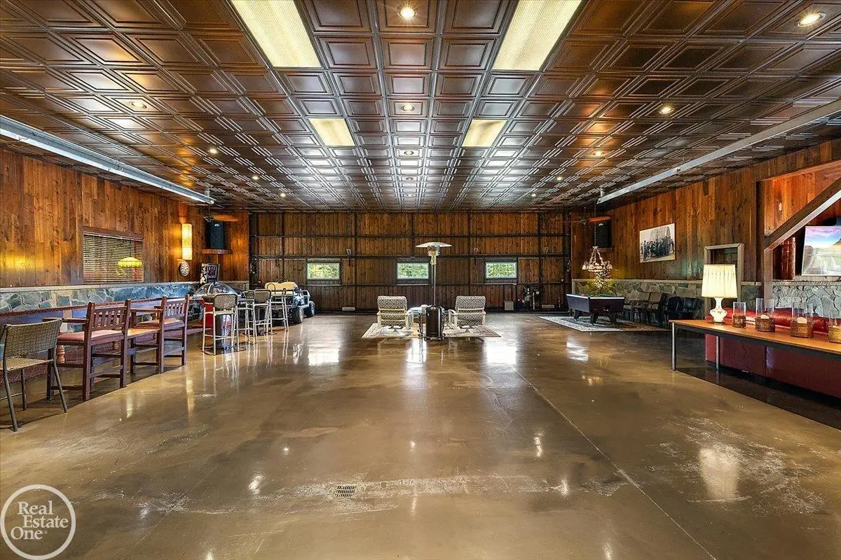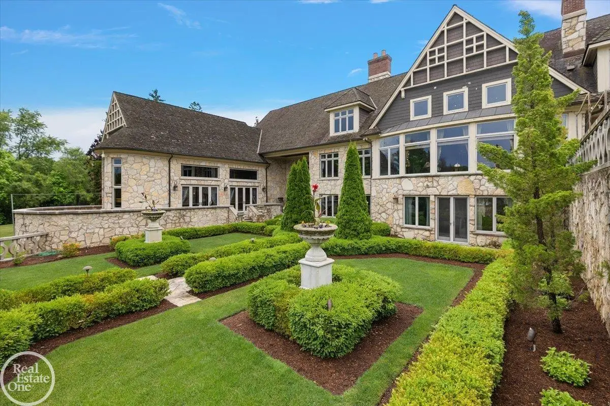 Discover an exceptional opportunity with this private 12-acre French Country Manor Estate in Oakland Township, offering over 12,000 square feet of stunning living space. Enjoy expansive terraced patios leading to beautifully designed Parterre Gardens and a built-in swimming pool measuring 25 feet by 55 feet. A helipad adds convenience for helicopter access right in your backyard, along with a state-of-the-art helicopter hangar. The property features extensive landscaping and an irrigation system covering all 12 acres, a 6-car garage, ample hangar storage for car enthusiasts, and a horse barn equipped with 6 stalls. The gourmet kitchen is a chef's dream, complete with a separate pizza oven and commercial-grade appliances. The spacious great room boasts beamed ceilings and large windows that offer views of the grounds. The estate includes 6 fireplaces, 6 bedrooms, a private loft area, maple-planked flooring, and a finished walk-out lower level with a 15-foot by 10-foot indoor lap pool and gaming spaces.