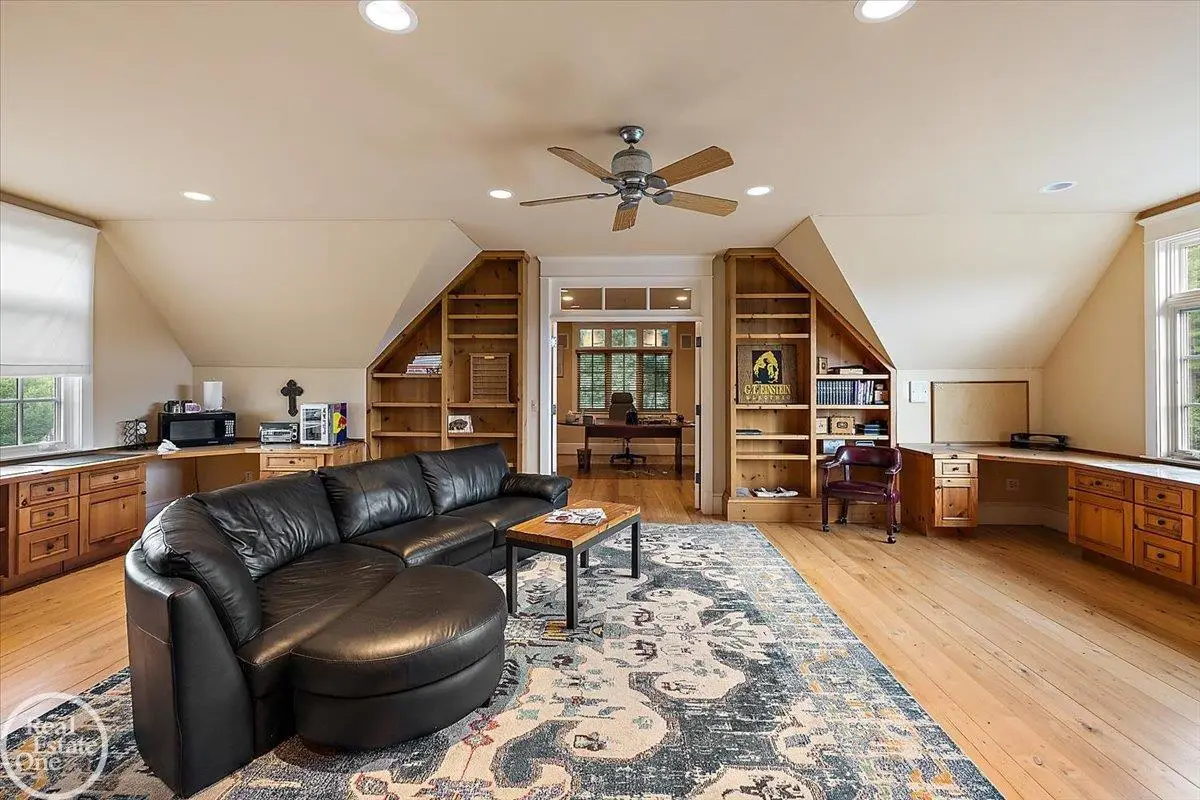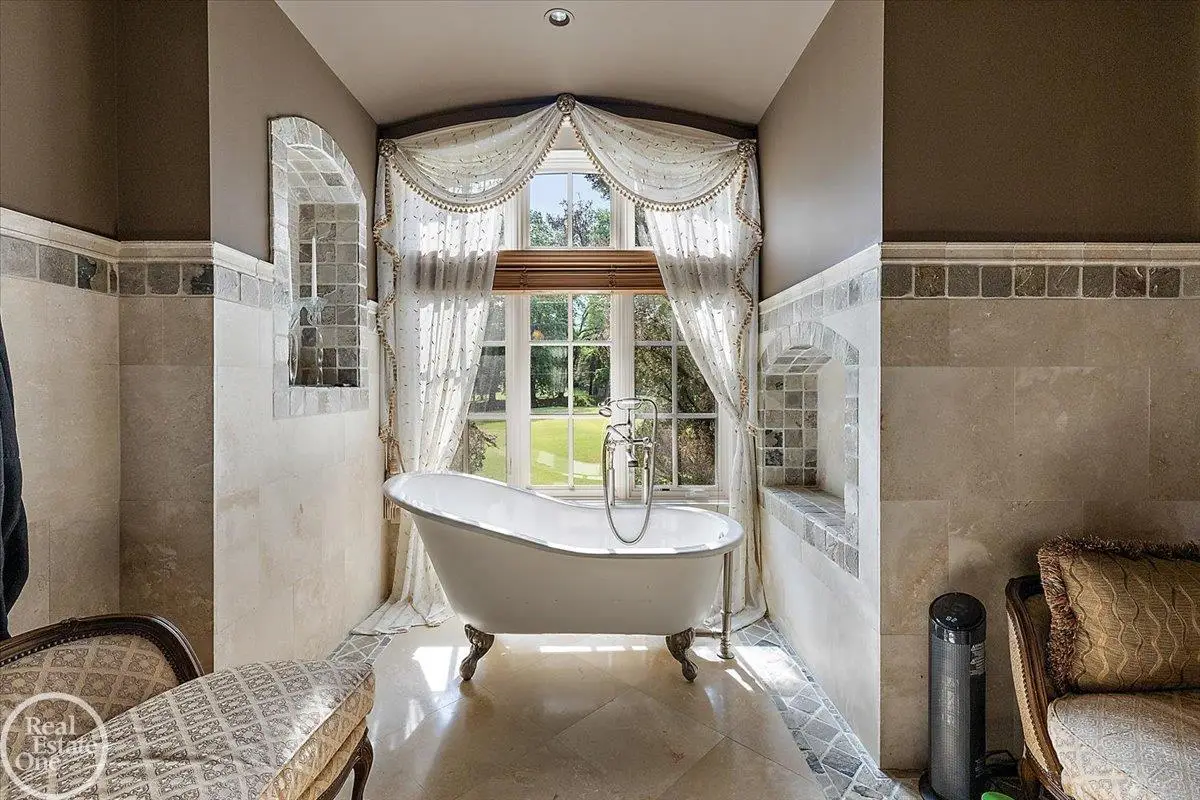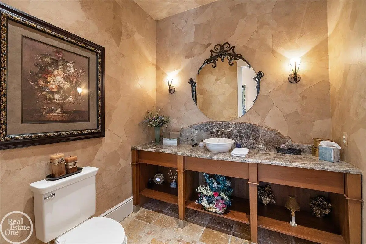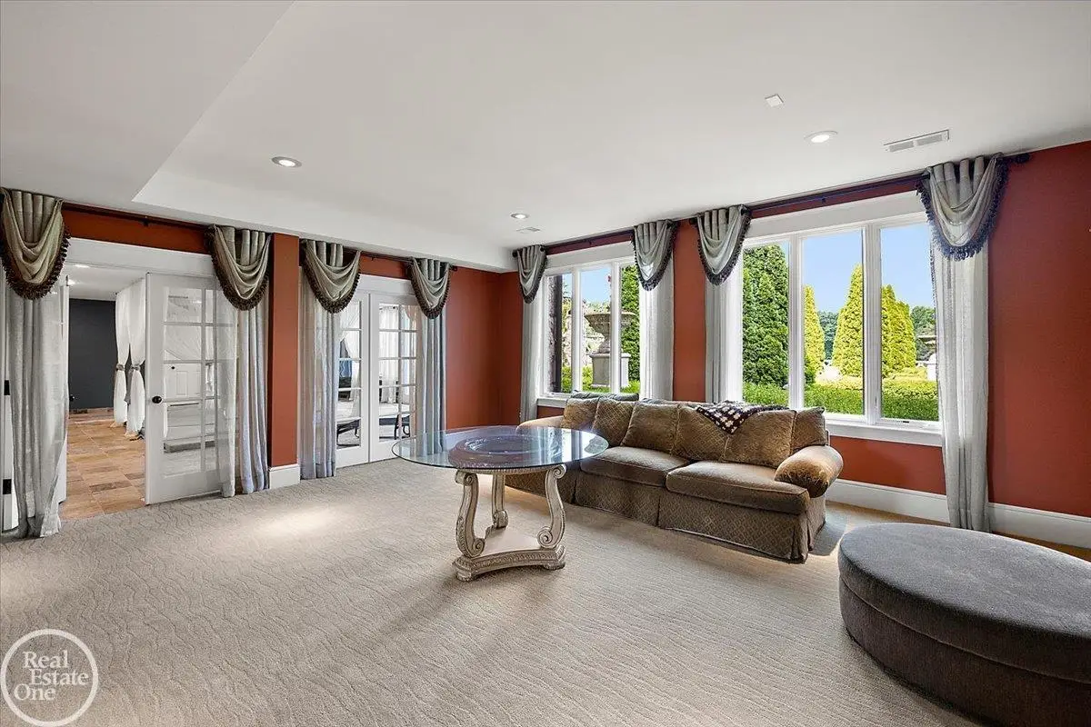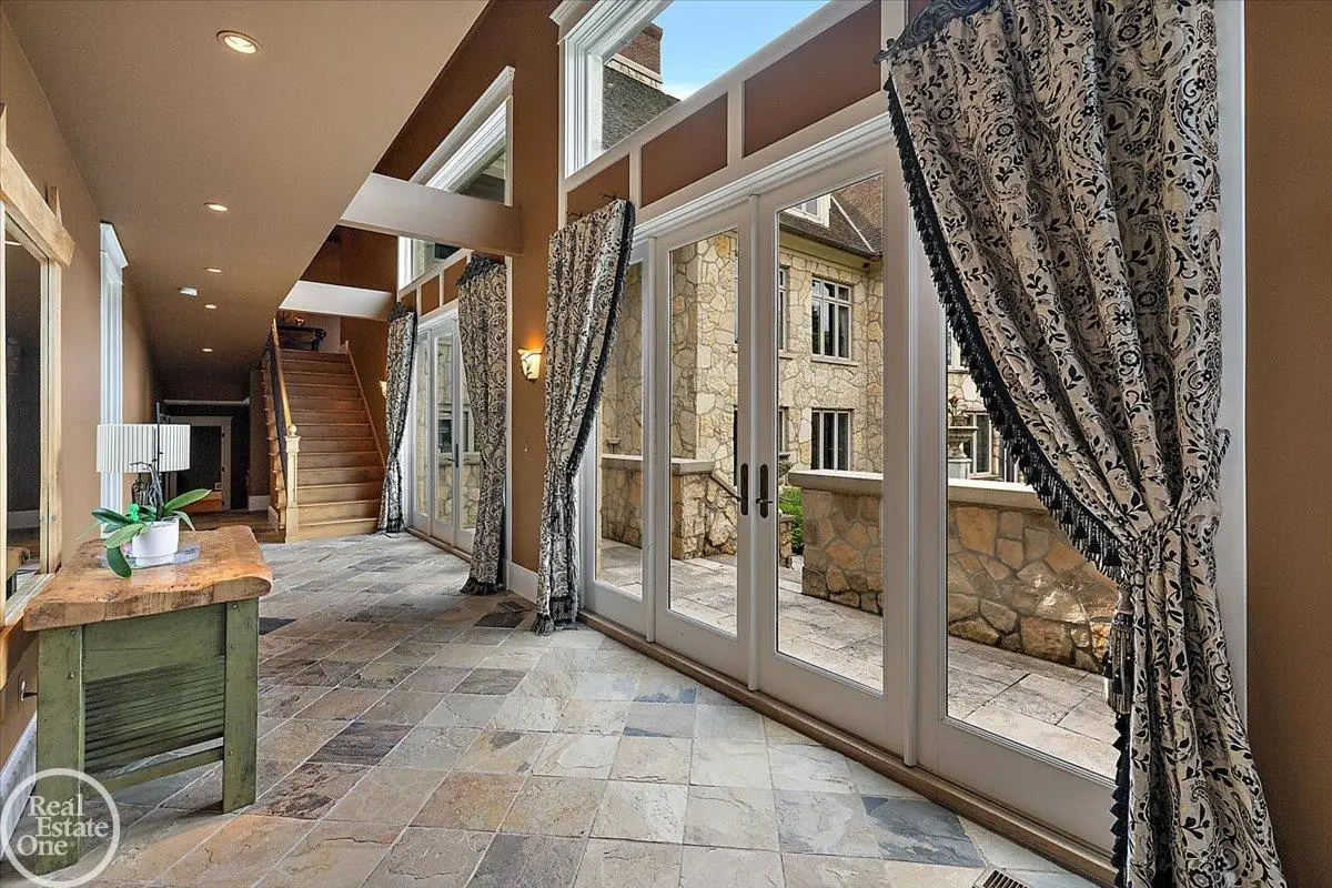 Discover an exceptional opportunity with this private 12-acre French Country Manor Estate in Oakland Township, offering over 12,000 square feet of stunning living space. Enjoy expansive terraced patios leading to beautifully designed Parterre Gardens and a built-in swimming pool measuring 25 feet by 55 feet. A helipad adds convenience for helicopter access right in your backyard, along with a state-of-the-art helicopter hangar. The property features extensive landscaping and an irrigation system covering all 12 acres, a 6-car garage, ample hangar storage for car enthusiasts, and a horse barn equipped with 6 stalls. The gourmet kitchen is a chef's dream, complete with a separate pizza oven and commercial-grade appliances. The spacious great room boasts beamed ceilings and large windows that offer views of the grounds. The estate includes 6 fireplaces, 6 bedrooms, a private loft area, maple-planked flooring, and a finished walk-out lower level with a 15-foot by 10-foot indoor lap pool and gaming spaces.