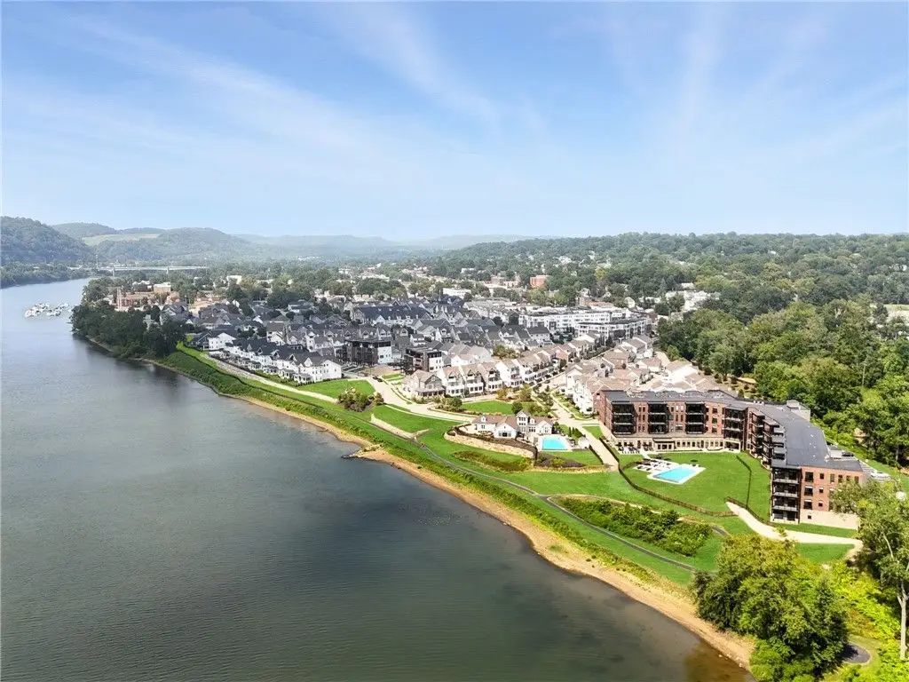 Discover The Brooks, a new resort-style condominium building along the Allegheny River within The River's Edge community. The Brooks condominiums promise an unmatched living experience with breathtaking views. This 3rd floor corner unit, spanning 1,644 sq ft, is located at the end of the south wing of the building next to the elevator. Enjoy breathtaking water vistas from the living area & bedrooms, enhanced by tall windows & the spacious covered "L" shaped balcony. A beautifully designed kitchen awaits, showcasing an oversized island, stainless appliances & sleek quartz countertops. The 3rd bedroom could be dining area, office or den. Resort-style amenities include a large lobby with water views, meeting rooms, fitness center, & an outdoor infinity pool. Indoor garage parking or private garage available for add'l cost. HOA fee includes water, sewer, trash, cable, internet, building maint/insurance. Property not yet assessed. Renderings/pictures shown for illustration purposes only.