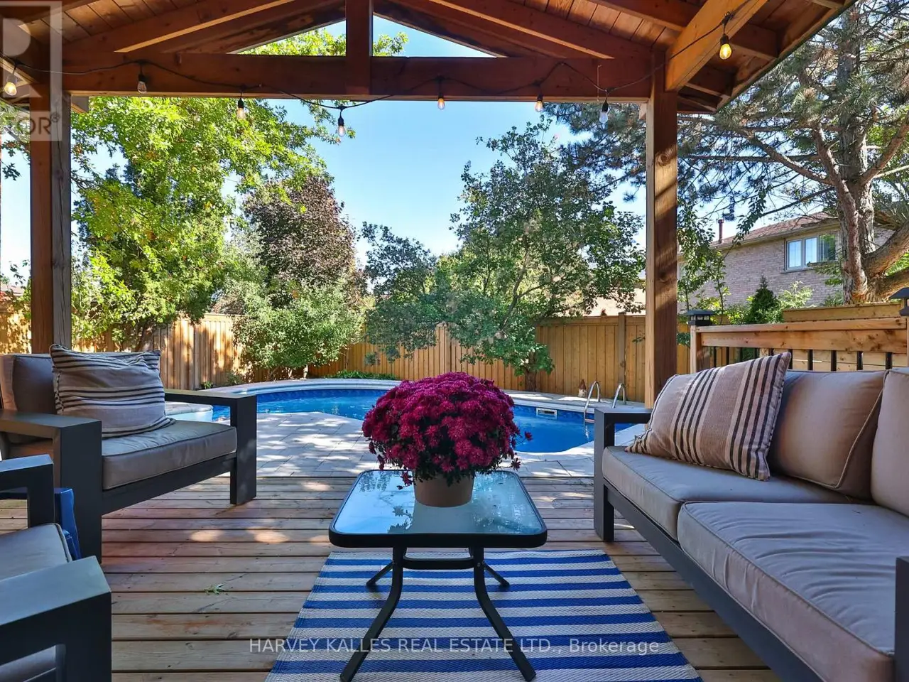 Executive Glen Abbey home, situated on highly sought after Rosethorne Road and elegantly appointed with numerous upgrades and features. Beautiful flagstone entrance and wrapped in modern pavers w/ wide access to backyard. Entrance foyer has tall ceilings and ample natural light. Classic baseboard/trim and immaculate hardwood flooring throughout. Main level Laundry room expertly tiled with great storage space. Spacious main level with the help from pot lights and windows throughout. Exceptionally upgraded kitchen and top quality appliances. Open concept family/kitchen area w/ walkout to backyard retreat, large pool and modern stone clad pool patio. (Heaters 2 yrs. Pump 1 yrs.) 4 Large bedrooms featuring the same hardwood throughout. Primary bedroom features 2 mirrored closets and walk-in closet w/ organizers. Upgraded bathrooms tastefully designed and well executed. Finished basement equipped with den, 3 piece bath and tons of storage space. Great location in an established neighborhood close to highways, shopping trails. (id:6370)