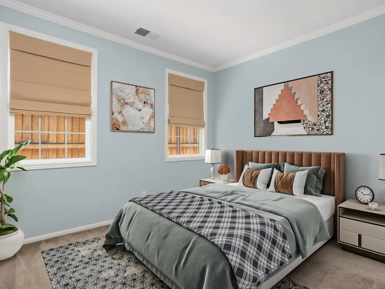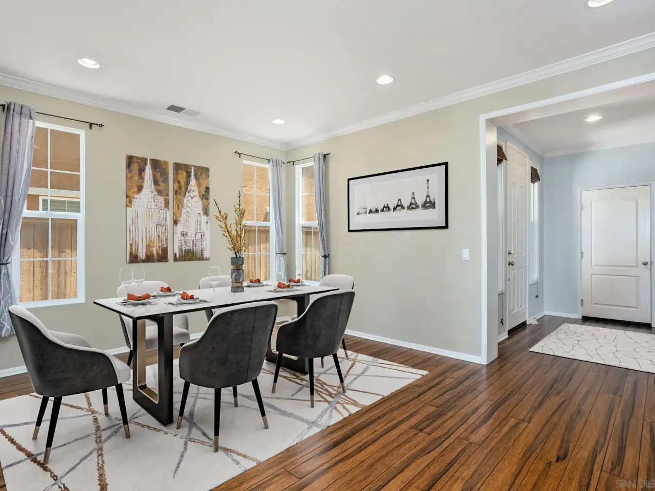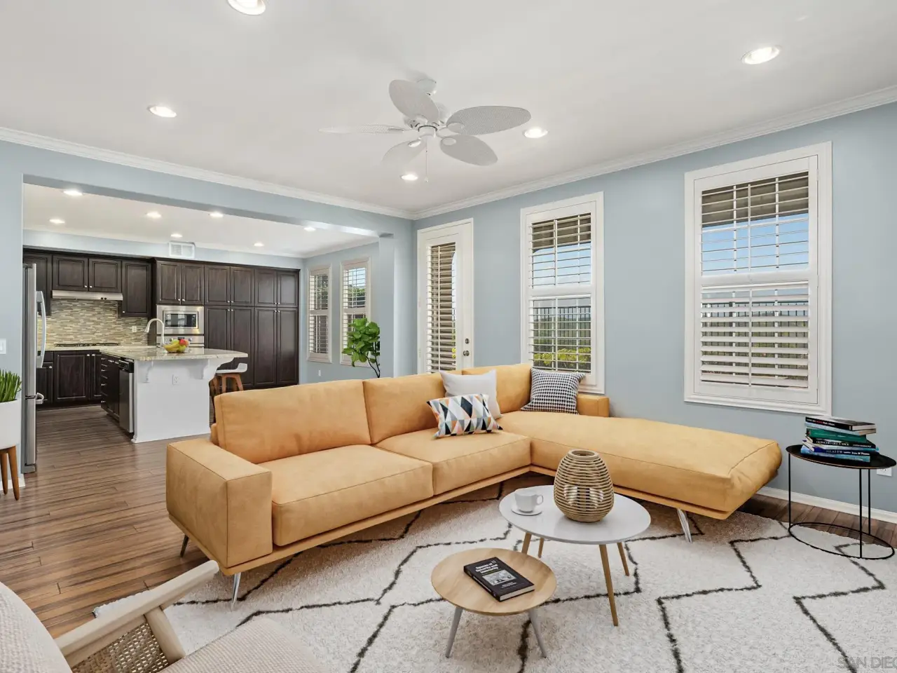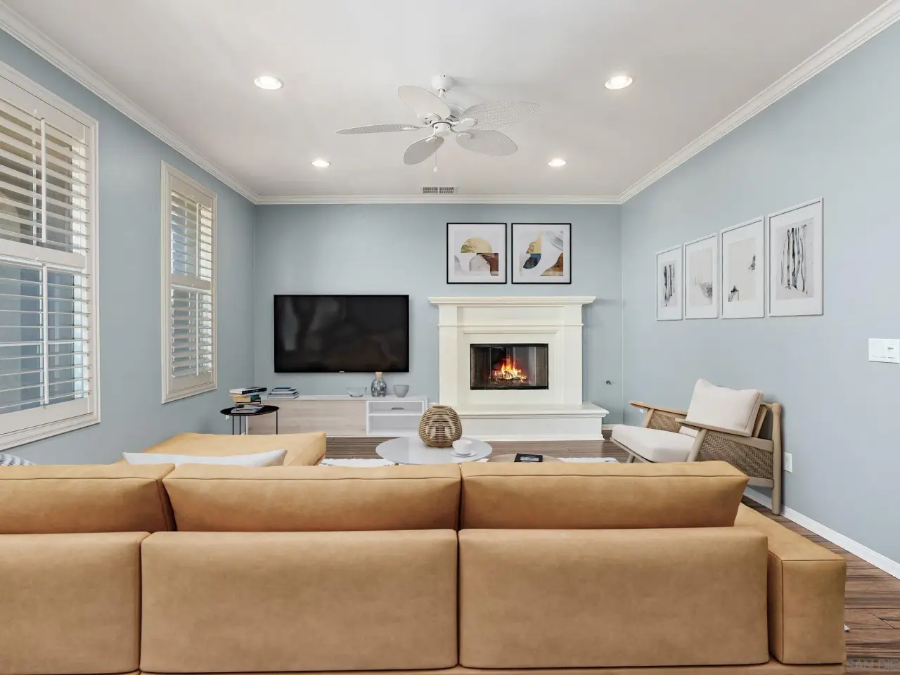 Crown molding and plantation shutters