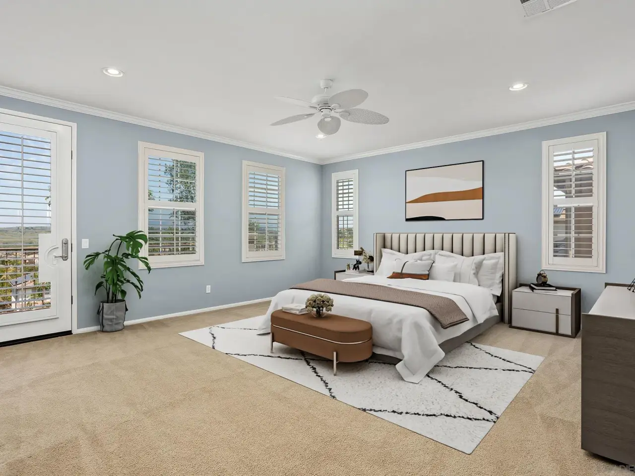 Spacious primary suite with private balcony