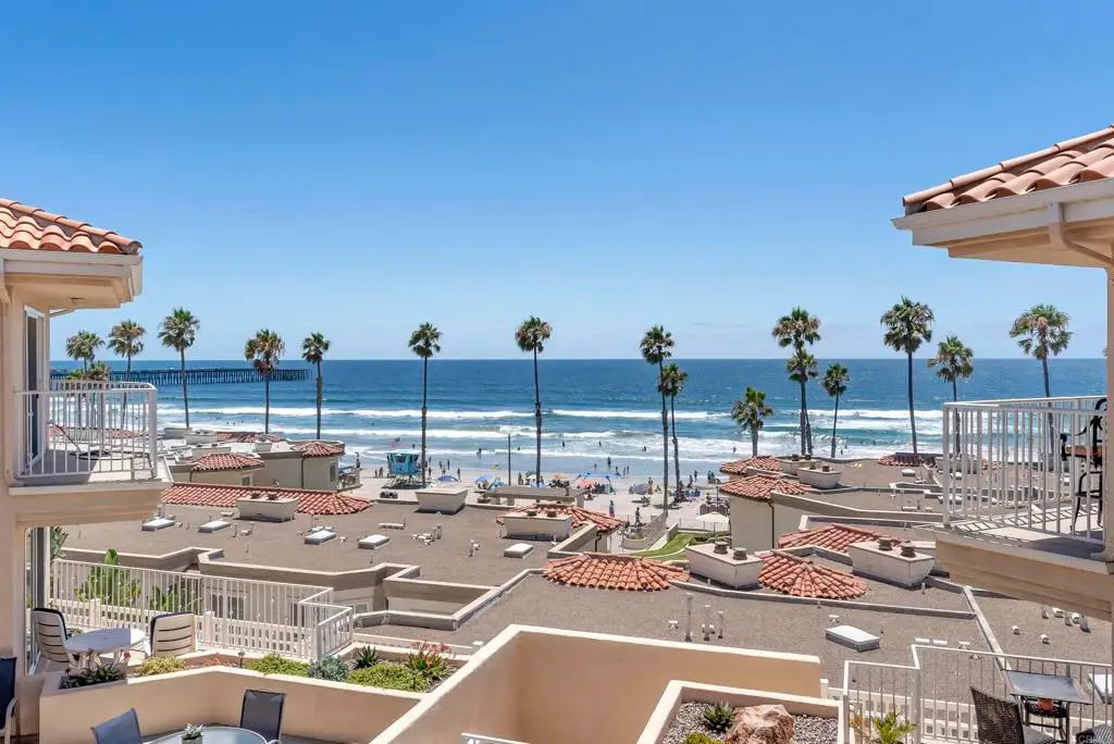 Start your mornings with blue ocean views and end your days with unforgettable sunsets over the Pacific. Perfectly positioned just north of the iconic Oceanside Pier, this stunning beach condo offers sweeping white-water views and effortless close by beach access--your personal front-row seat to coastal living. Step inside to an upgraded and move-in ready home where the Pacific Ocean is your backdrop. Catch ocean views from the open-concept kitchen and living room, or relax on your private balcony as the sun dips into the horizon. The primary bathroom has been tastefully updated with a large walk-in shower, adding to the refined coastal aesthetic. This two-bedroom, two-bath retreat is located in an intimate 15-unit gated community and features central A/C, in-unit laundry, two secure garage parking spaces, storage locker, and community bicycle storage room. Whether you're strolling to the beach, dining at nearby restaurants, sipping a coffee at a local cafe, or browsing boutiques and breweries, everything you love about Oceanside is just steps away. Community amenities include a shared BBQ and dining area perfect for summer evenings. Ideal as your primary residence or your personal getaway, this rare offering invites you to live the dream lifestyle--where every day feels like a vacation.