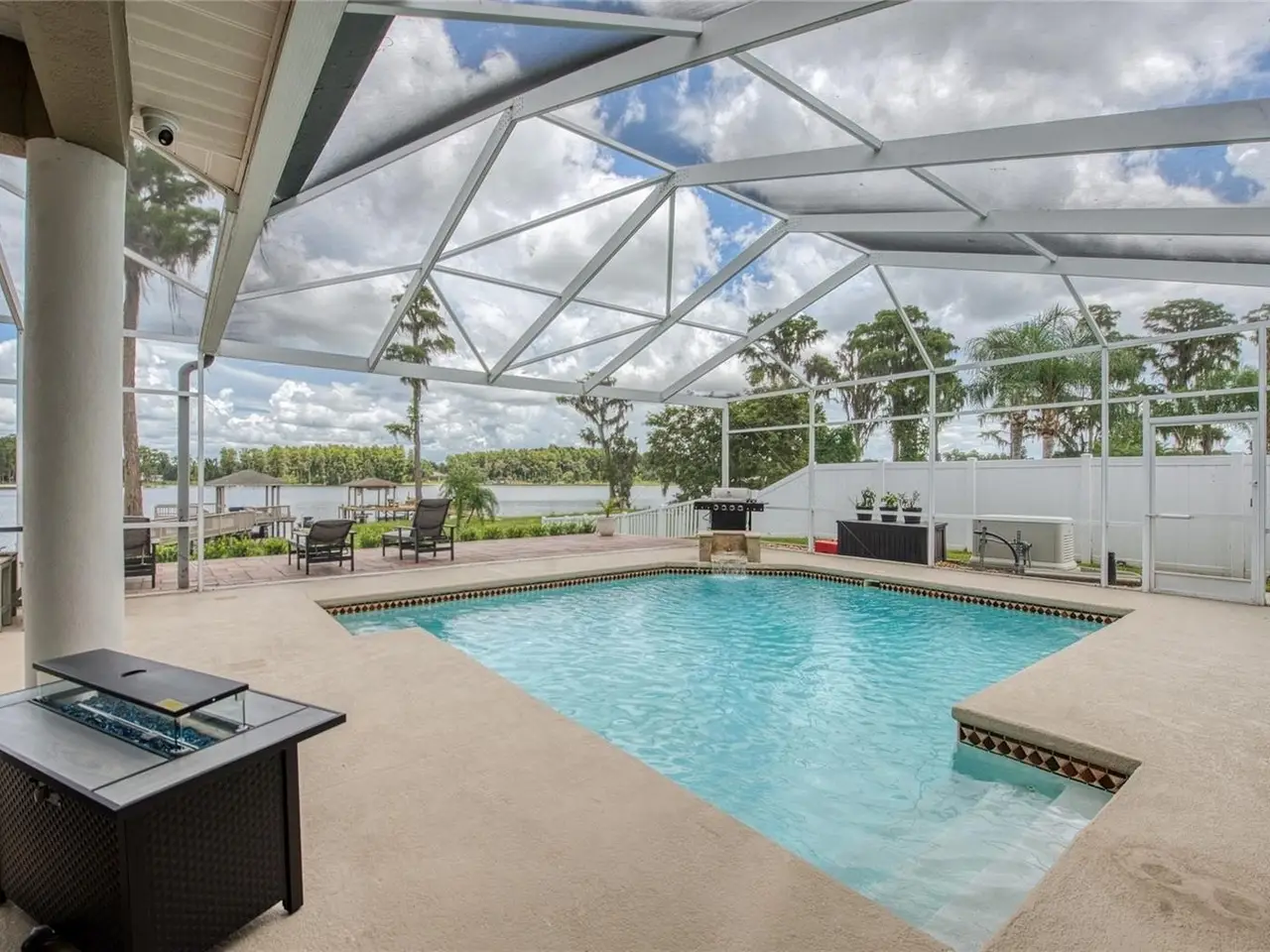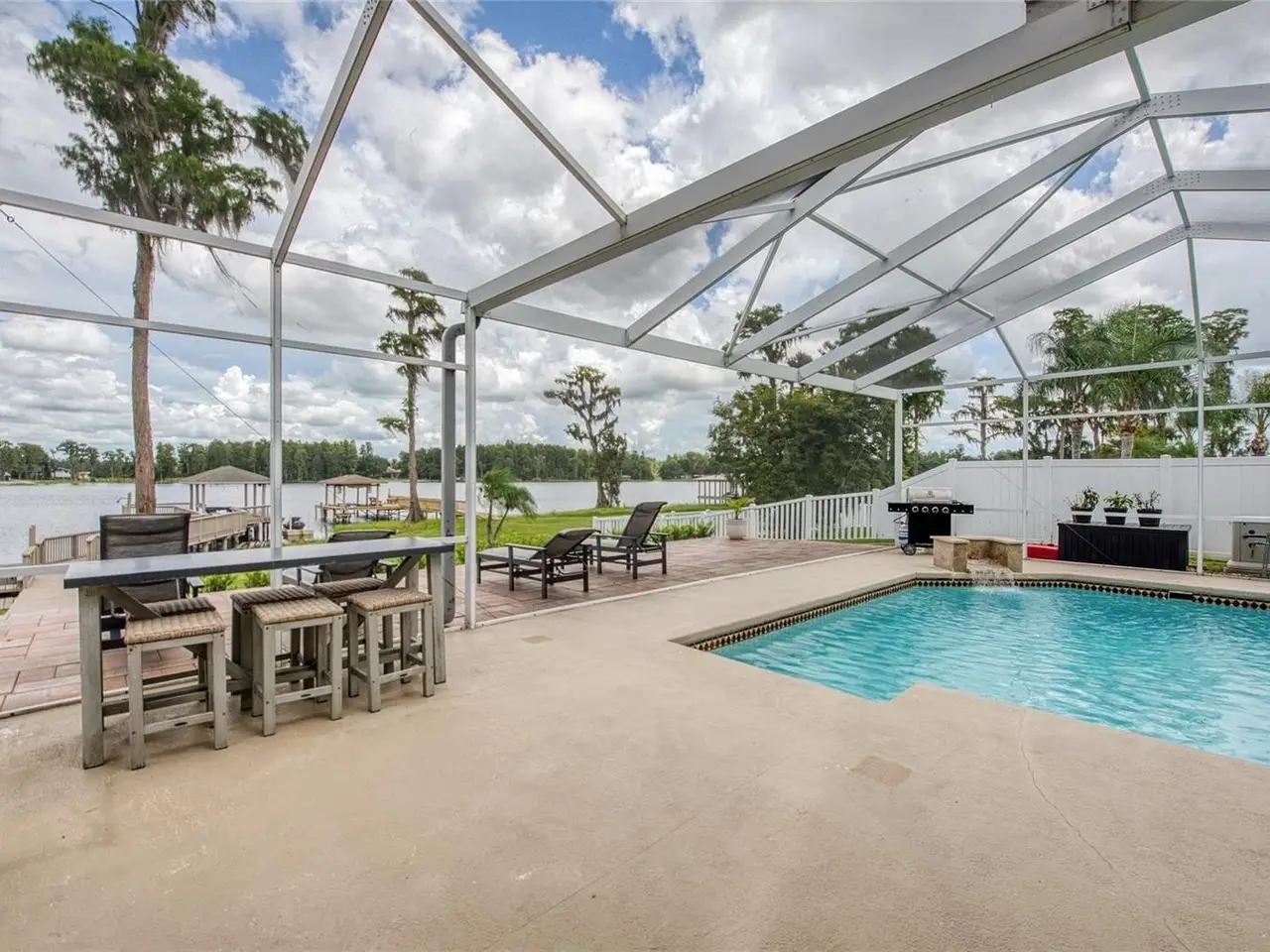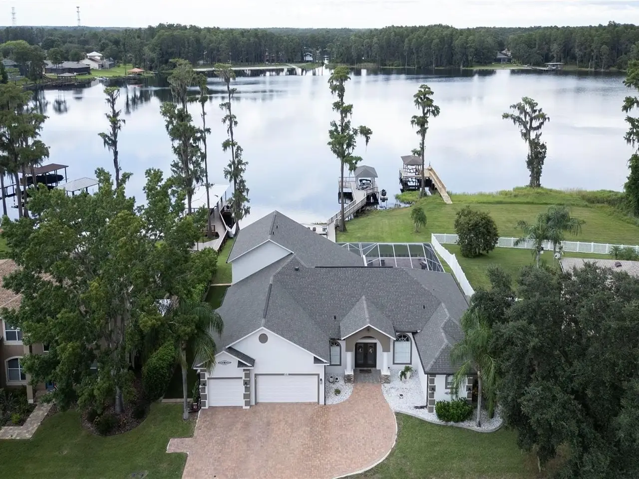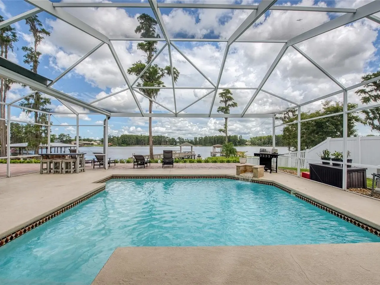 Odessa Lakeside Retreat Featuring Oversized Bedrooms, Modern Kitchen, and Expansive Outdoor Living! Welcome to lakeside living at its finest on the shores of Lake Ann, a pristine 97-acre ski lake in Odessa’s desirable Wyndham Lakes community. This elegant 4-bedroom, 3-bath ranch-style home spans 3,138 sqft. and sits on nearly an acre of property, offering both space and serenity. From boating and wakeboarding to poolside relaxation, this property blends luxury with adventure. Step inside to find vaulted ceilings that enhance the open design and flood the home with natural light. Oversized bedrooms with large closets provide comfort, while expansive picture windows showcase sweeping views of the lake. Thoughtful upgrades throughout the home include updated fixtures, hardwood floors (2023), updated drywall finishes in the main living areas (2023), a central vacuum system, motorized window shades, and even a dedicated movie screen with projector in one of the rooms—perfect for quiet evenings. The kitchen, updated in 2023, shines with stainless steel appliances and modern finishes. Bathrooms were refreshed in 2021, along with new tile, a roof replacement (2021), new gutter and leaf guards (2024), and a re-screened lanai (2021). A Generac generator (2023) and gas tankless water heater (2023) add peace of mind during the Florida storm season. Outside, in the front of the home there is a five car paver driveway (2023) that was permitted and approved by the HOA, and in the backyard the screened lanai and heated pool invite year-round enjoyment. The freshly painted dock extends into Lake Ann, ready for fishing, kayaking, skiing, and sunset cruises. An Astroturf dog run and private sandy beach area add unique touches to the backyard retreat. Located minutes from shopping, dining, The scenic 272-acre Lake Rogers Nature Park, and just 14 miles from Tampa International Airport, this property is the ideal balance of tranquility and convenience. Don’t miss your chance to own this Lake Ann retreat—schedule your private showing today!