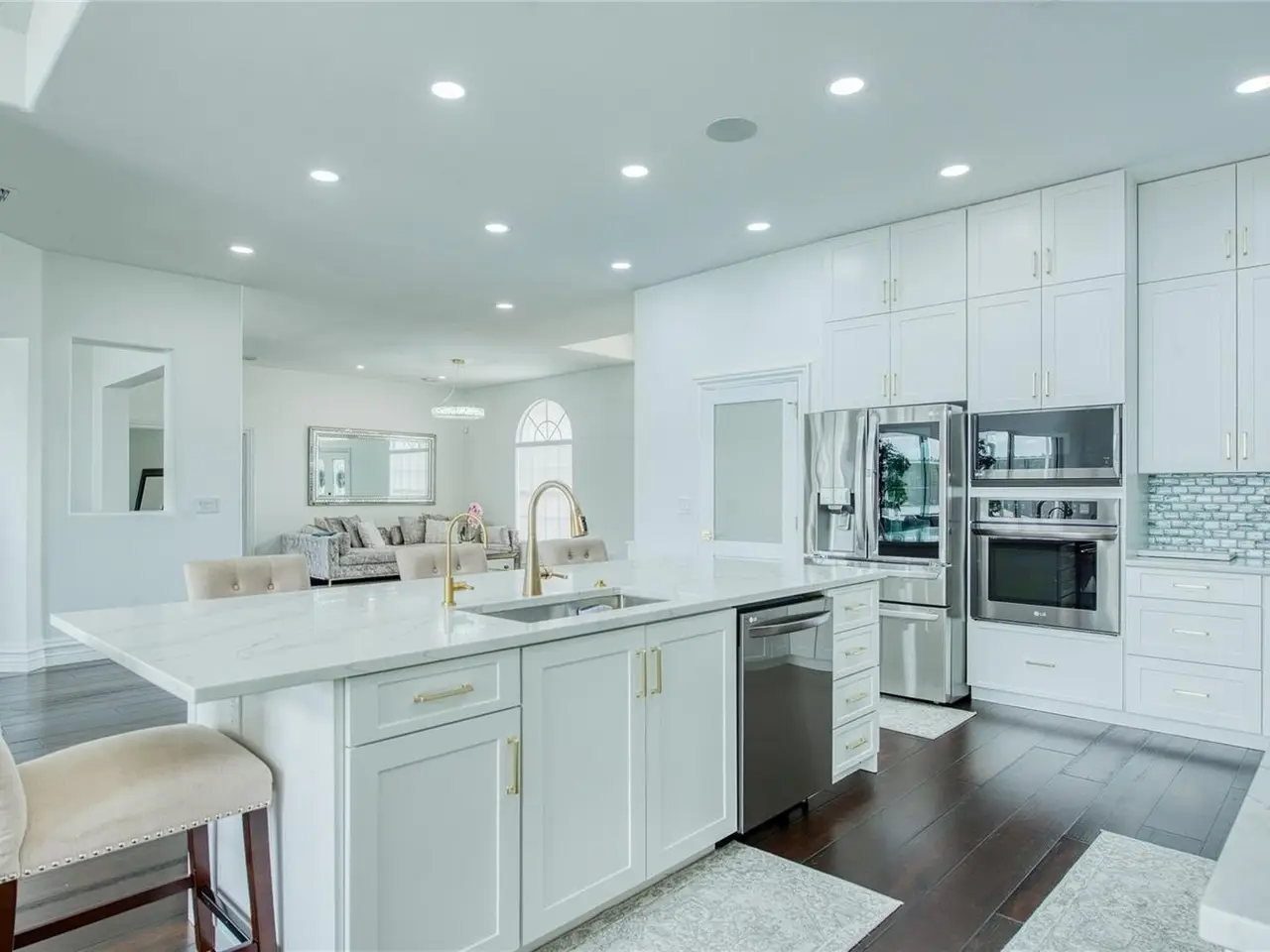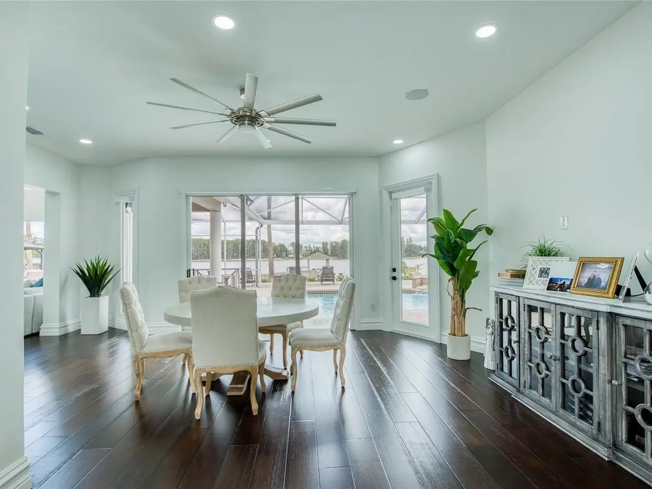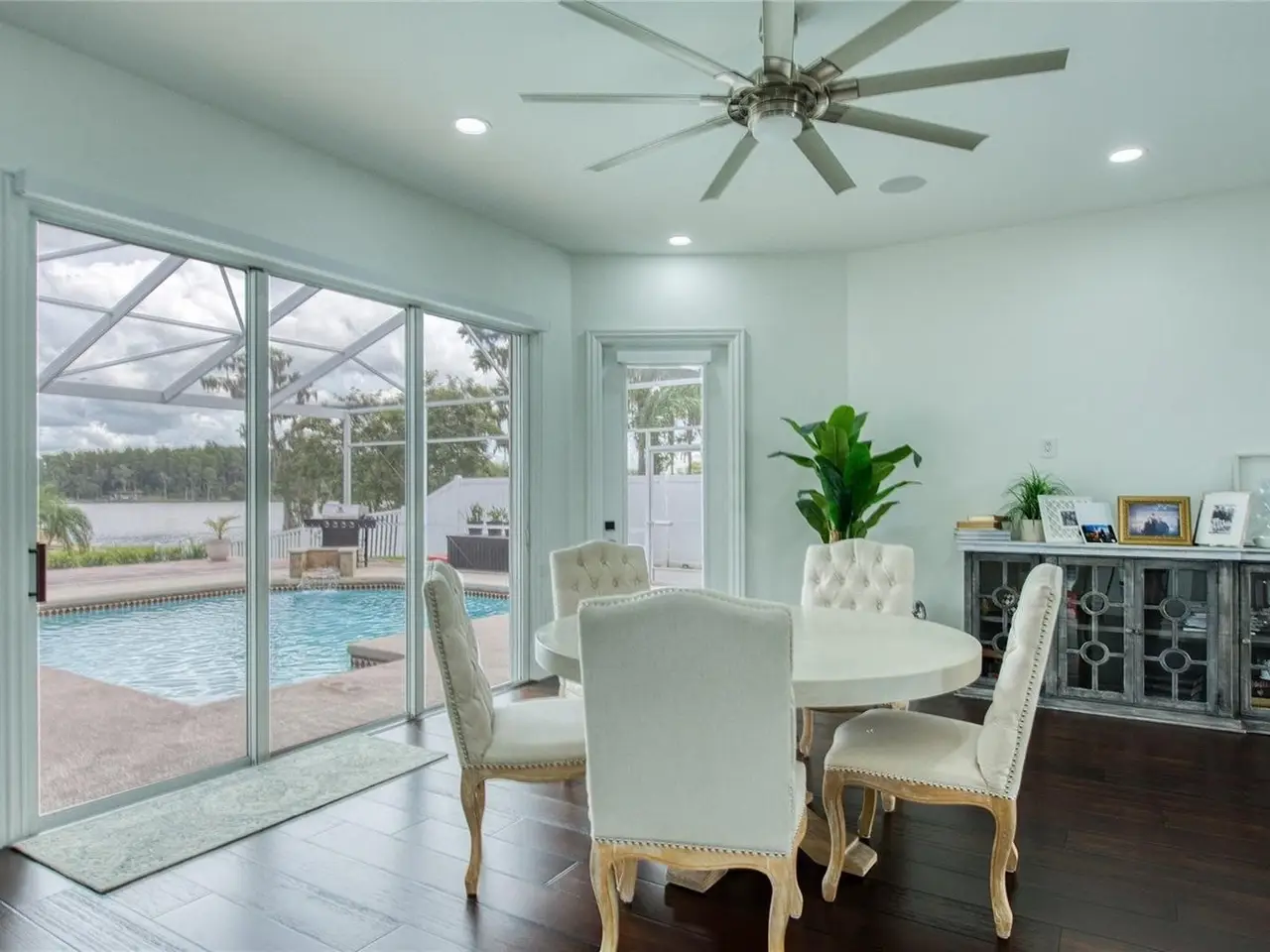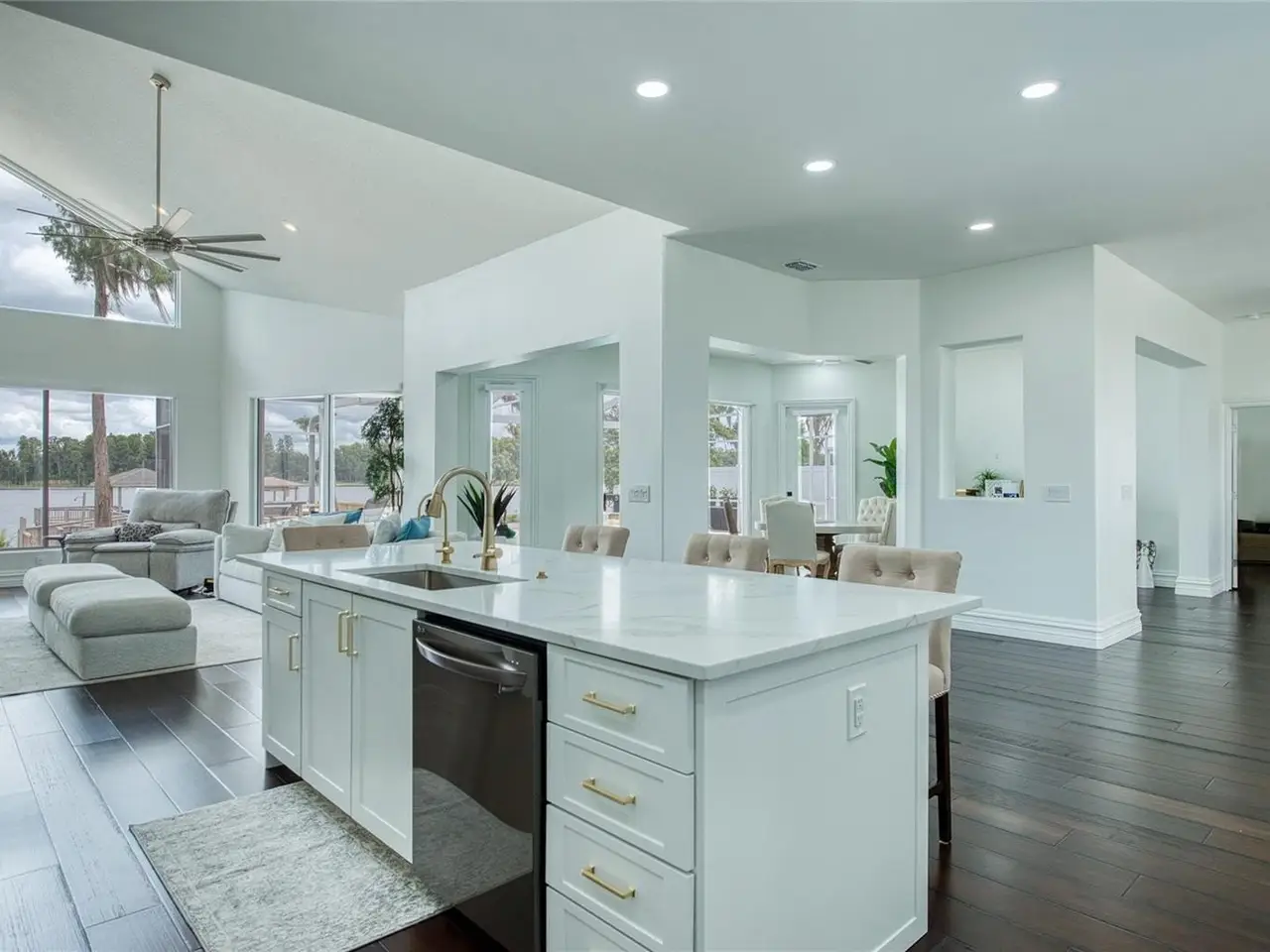 Odessa Lakeside Retreat Featuring Oversized Bedrooms, Modern Kitchen, and Expansive Outdoor Living! Welcome to lakeside living at its finest on the shores of Lake Ann, a pristine 97-acre ski lake in Odessa’s desirable Wyndham Lakes community. This elegant 4-bedroom, 3-bath ranch-style home spans 3,138 sqft. and sits on nearly an acre of property, offering both space and serenity. From boating and wakeboarding to poolside relaxation, this property blends luxury with adventure. Step inside to find vaulted ceilings that enhance the open design and flood the home with natural light. Oversized bedrooms with large closets provide comfort, while expansive picture windows showcase sweeping views of the lake. Thoughtful upgrades throughout the home include updated fixtures, hardwood floors (2023), updated drywall finishes in the main living areas (2023), a central vacuum system, motorized window shades, and even a dedicated movie screen with projector in one of the rooms—perfect for quiet evenings. The kitchen, updated in 2023, shines with stainless steel appliances and modern finishes. Bathrooms were refreshed in 2021, along with new tile, a roof replacement (2021), new gutter and leaf guards (2024), and a re-screened lanai (2021). A Generac generator (2023) and gas tankless water heater (2023) add peace of mind during the Florida storm season. Outside, in the front of the home there is a five car paver driveway (2023) that was permitted and approved by the HOA, and in the backyard the screened lanai and heated pool invite year-round enjoyment. The freshly painted dock extends into Lake Ann, ready for fishing, kayaking, skiing, and sunset cruises. An Astroturf dog run and private sandy beach area add unique touches to the backyard retreat. Located minutes from shopping, dining, The scenic 272-acre Lake Rogers Nature Park, and just 14 miles from Tampa International Airport, this property is the ideal balance of tranquility and convenience. Don’t miss your chance to own this Lake Ann retreat—schedule your private showing today!