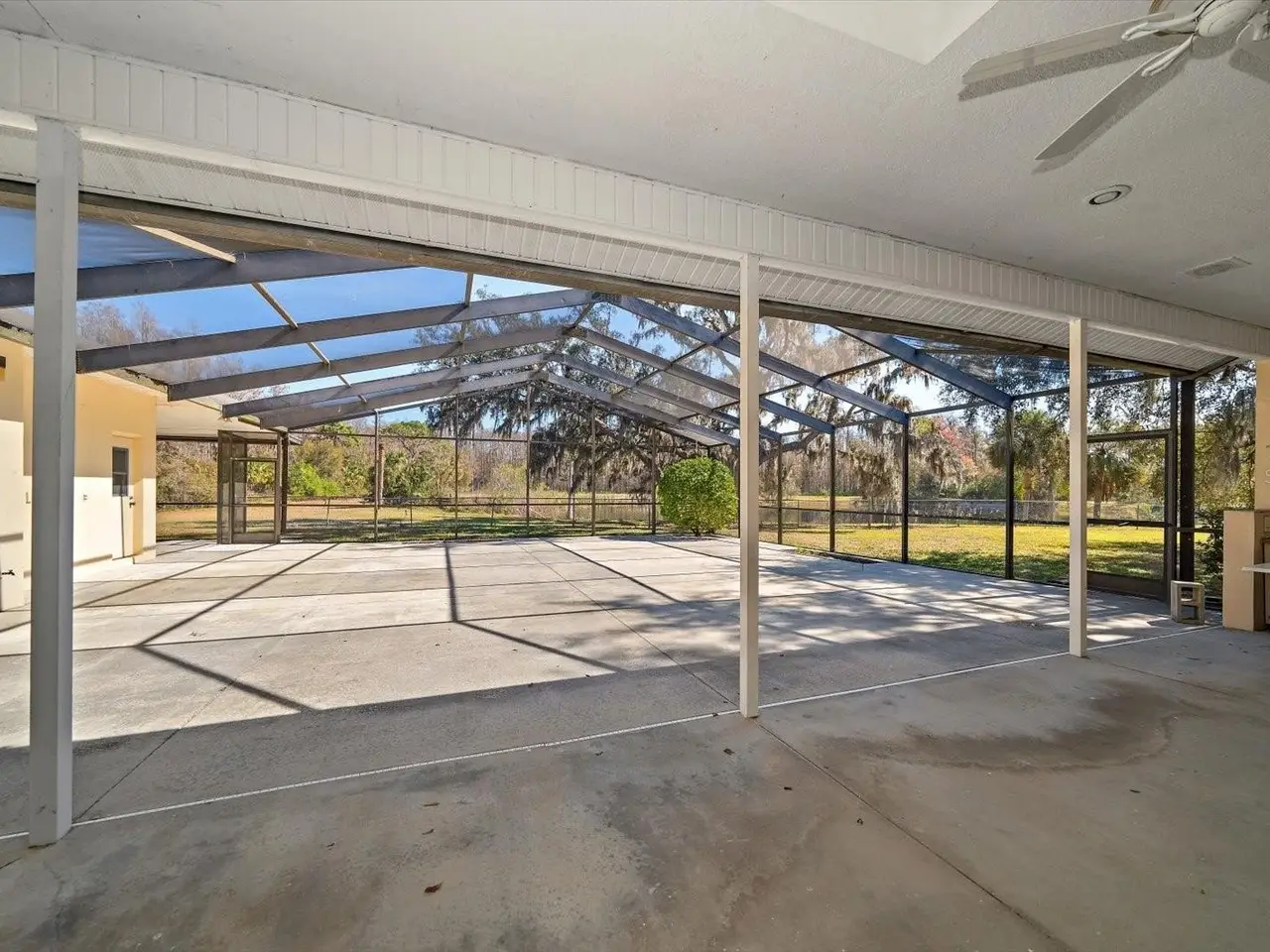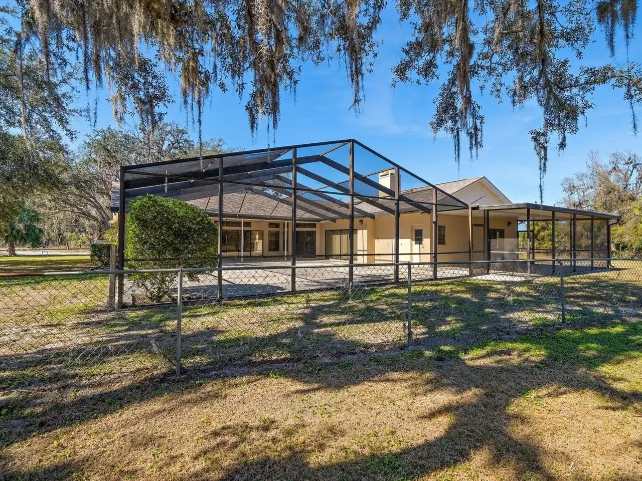 9 gorgeous Acres overlooking a tranquil pond and the opportunity to purchase the home next door with almost 11 Acres and to give you almost 20 Acres with 2 homes in Odessa!! There are 2 entrances to the home, the main entrance is on Tyler Rd through a private gate with a long drive or come down Foxbrook Lane and enter from there. With a 4 car garage as well as a carport, and circular driveway, there is plenty of parking space. As you enter this beautiful home, you will love the open floor plan, vaulted ceilings and natural light flowing throughout. There are 2 living areas along with an eat in kitchen, a blended living room/dining room all looking out to the peaceful pond. With 4 bedrooms + 5th bedroom (currently an office/sitting area), which does have a place to add a closet or just keep it as a den/office and has its own entrance. This home has a 3 way split with 2 Primary Suites both have walk-in closets and their own bathrooms. The additional 2 bedrooms are a nice size and share a bathroom with double sinks. Enjoy the view from the large vaulted screened patio, plumbed for an outdoor kitchen and plenty of room to add a pool if desired with more than enough space to entertain all your family and friends. The nice sized kitchen has been updated with real wood cabinets, granite tops, and stainless appliances. Located less than a mile from the border of Pinellas county, Brooker Creek Preserve, and both horseback & riding trails. This location is away from it all and yet so close to shopping, both airports, and our wonderful beaches. Roof was replaced in 2024 & both A/C's 2 years ago.