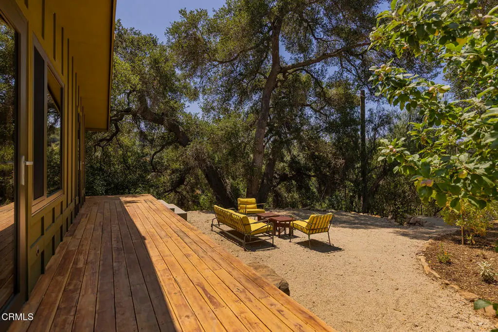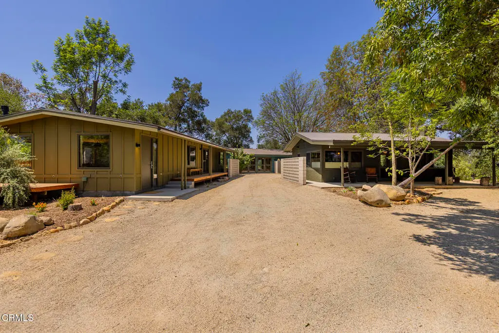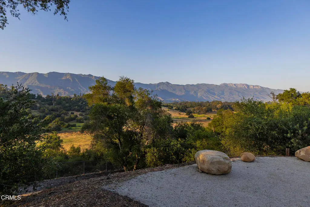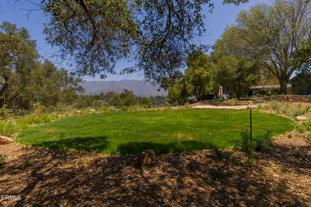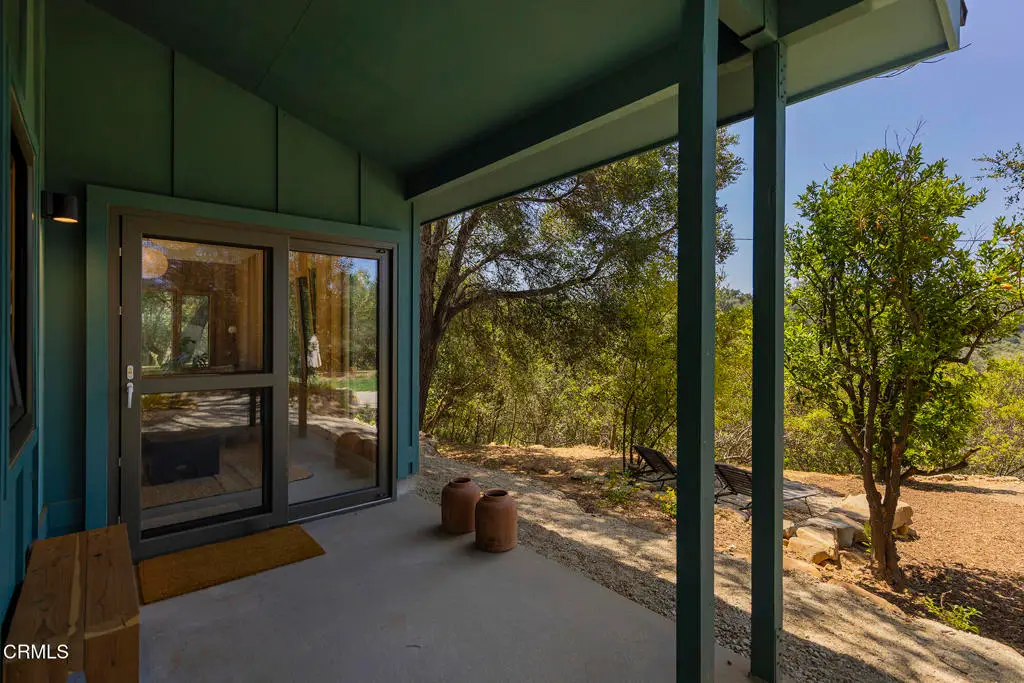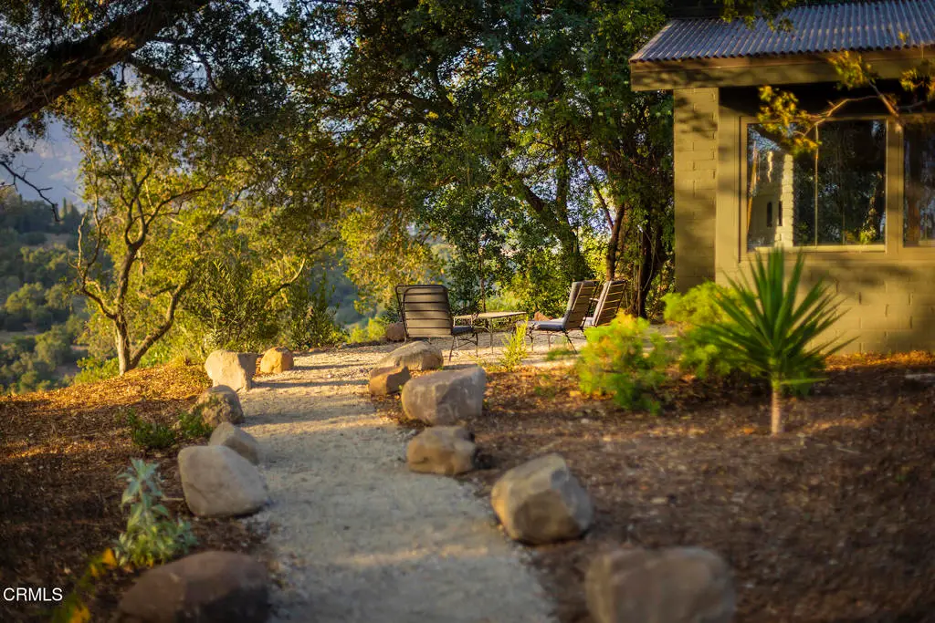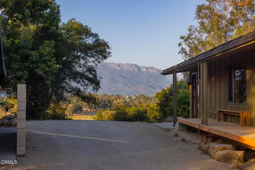 This extraordinary 2.5-acre estate is one of Ojai's most rare and refined offerings, located in a stunning ridge-top setting within the heart of the valley. Just minutes from downtown, the Ojai Valley Inn, and Villanova School, this private hilltop retreat offers panoramic 360-degree views, unmatched privacy, and a masterfully curated renovation that blends natural beauty with elevated living. Completed in 2025, every inch of the property has been meticulously renovated inside and out, combining timeless materials with modern craftsmanship. The main residence spans 1,450 square feet and is a stunning 3-bedroom, 2.5-bath. Thoughtful details are everywhere, from the solid oak floors and cedar-lined walls and ceilings, to handcrafted porcelain towel hooks, push-button light switches, and imported European tile at the entry. The chef's kitchen features honed Brazilian quartzite countertops, all-new appliances, and tilt-and-turn windows that open to a teak wraparound deck framing iconic views of the Topa Topa mountains. Bathrooms are finished with radiant heated floors, hand-selected tile work, and custom lighting. The home also includes brand-new HVAC, plumbing, electrical, and a fire-resistant metal roof. Just beyond the main house, the 623-square-foot guest house offers a studio-style layout with cedar interiors, polished concrete floors, a full kitchen, bath, and fireplace, ideal for guests, extended stays, or creative space. The third structure, a 599-square-foot finished two-car garage, continues the design language with polished concrete floors, cedar finishes, a half bath and outdoor shower, perfect as a gym, workspace, or overflow guest suite. The land itself is a sanctuary, dotted with mature trees, sculpted landscaping, and private walking paths that weave through the property. Perched high above the valley, the ridge-line setting catches a gentle, year-round breeze, creating a perfect microclimate. A private well services the entire 2.5 acres, supplying water for all landscaping needs, while a state-of-the-art water filtration system supports all three structures. This is more than a home, it's a private, architectural retreat designed for those who appreciate privacy, beauty, and an effortless connection to nature. A property like this comes along once in a generation, a true Ojai original.