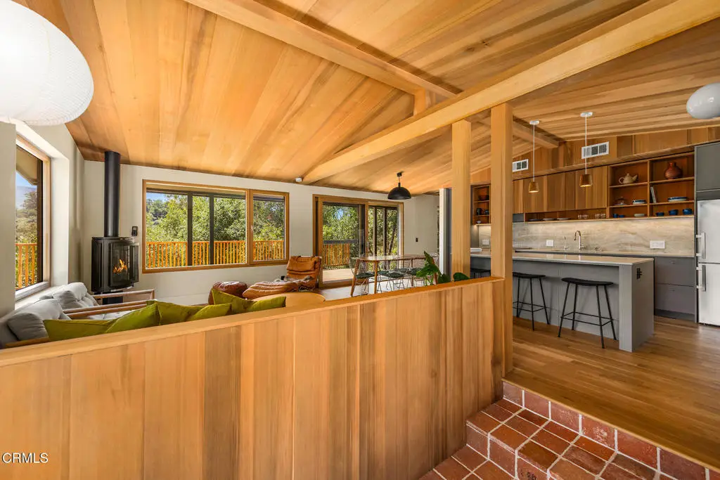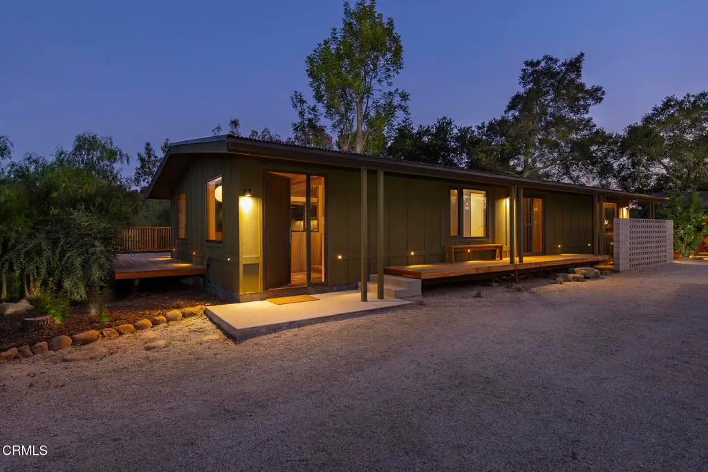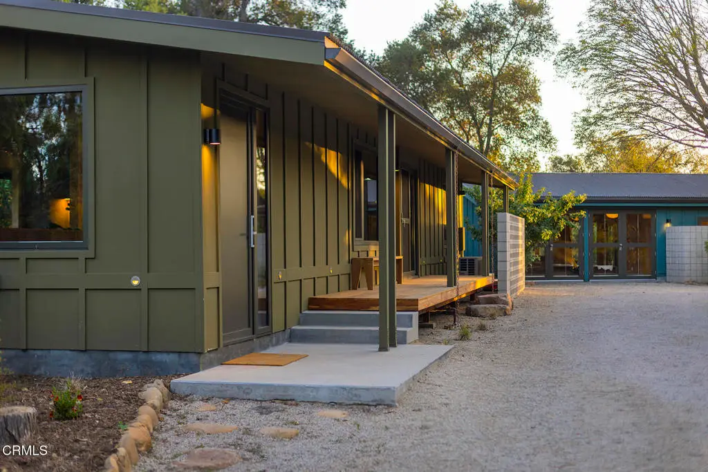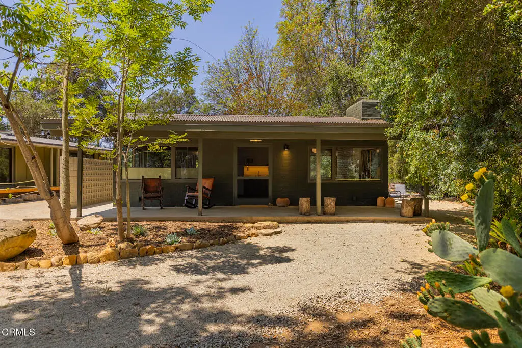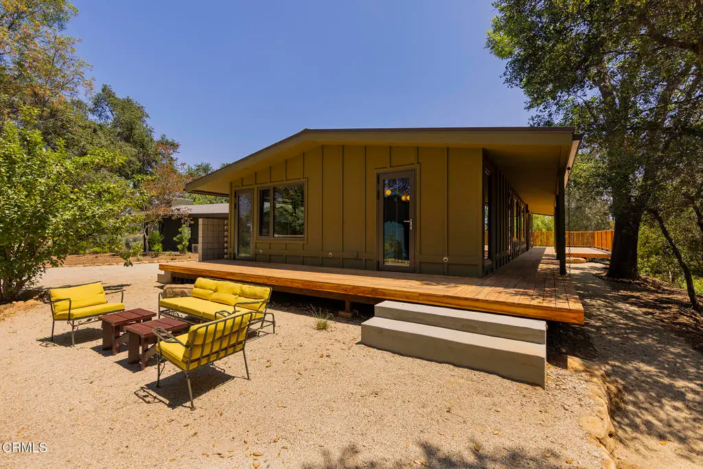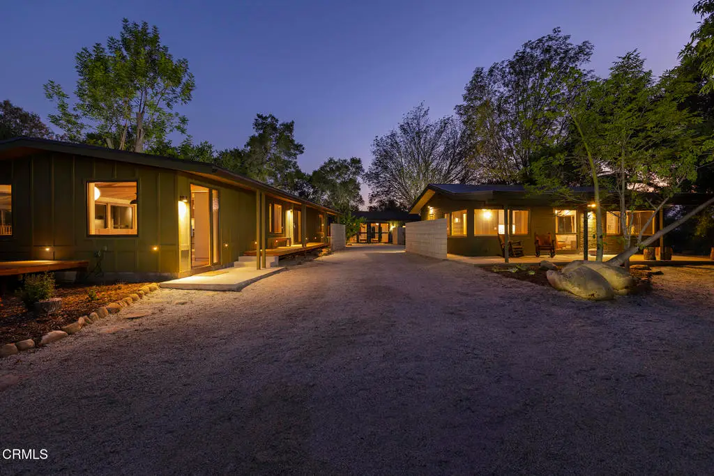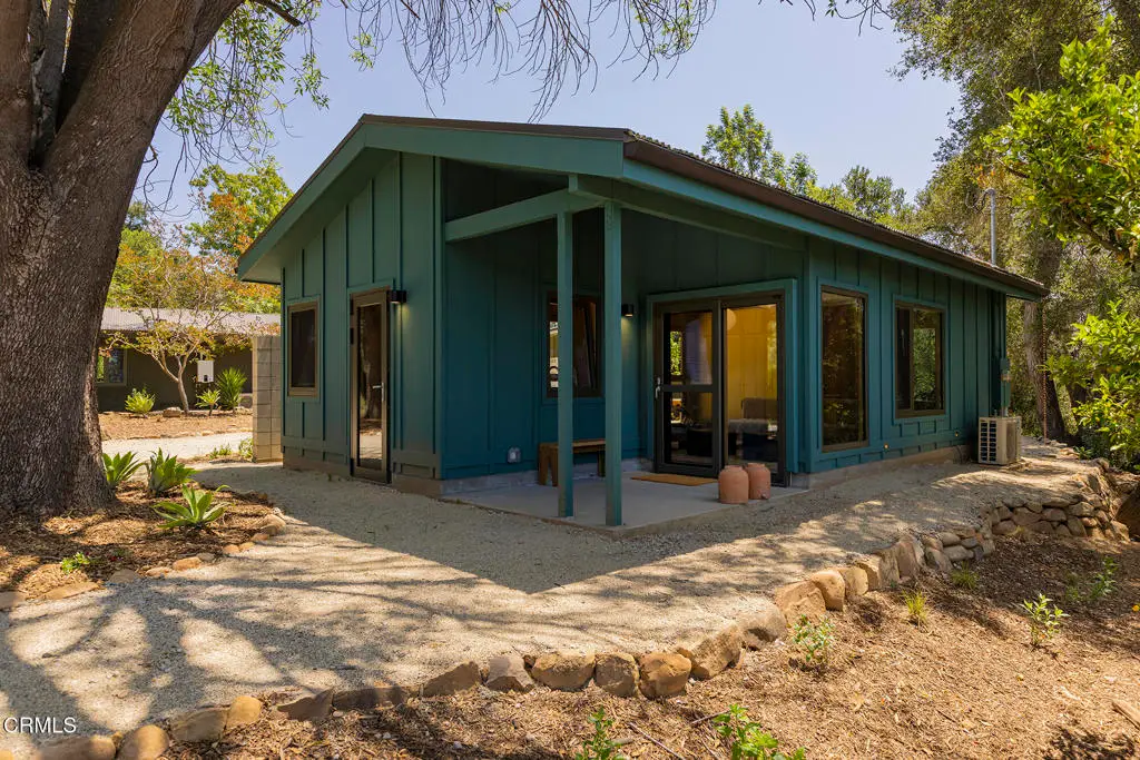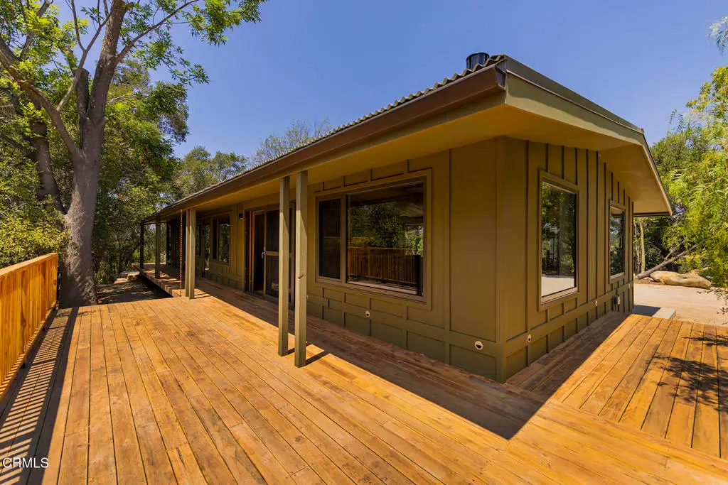 This extraordinary 2.5-acre estate is one of Ojai's most rare and refined offerings, located in a stunning ridge-top setting within the heart of the valley. Just minutes from downtown, the Ojai Valley Inn, and Villanova School, this private hilltop retreat offers panoramic 360-degree views, unmatched privacy, and a masterfully curated renovation that blends natural beauty with elevated living. Completed in 2025, every inch of the property has been meticulously renovated inside and out, combining timeless materials with modern craftsmanship. The main residence spans 1,450 square feet and is a stunning 3-bedroom, 2.5-bath. Thoughtful details are everywhere, from the solid oak floors and cedar-lined walls and ceilings, to handcrafted porcelain towel hooks, push-button light switches, and imported European tile at the entry. The chef's kitchen features honed Brazilian quartzite countertops, all-new appliances, and tilt-and-turn windows that open to a teak wraparound deck framing iconic views of the Topa Topa mountains. Bathrooms are finished with radiant heated floors, hand-selected tile work, and custom lighting. The home also includes brand-new HVAC, plumbing, electrical, and a fire-resistant metal roof. Just beyond the main house, the 623-square-foot guest house offers a studio-style layout with cedar interiors, polished concrete floors, a full kitchen, bath, and fireplace, ideal for guests, extended stays, or creative space. The third structure, a 599-square-foot finished two-car garage, continues the design language with polished concrete floors, cedar finishes, a half bath and outdoor shower, perfect as a gym, workspace, or overflow guest suite. The land itself is a sanctuary, dotted with mature trees, sculpted landscaping, and private walking paths that weave through the property. Perched high above the valley, the ridge-line setting catches a gentle, year-round breeze, creating a perfect microclimate. A private well services the entire 2.5 acres, supplying water for all landscaping needs, while a state-of-the-art water filtration system supports all three structures. This is more than a home, it's a private, architectural retreat designed for those who appreciate privacy, beauty, and an effortless connection to nature. A property like this comes along once in a generation, a true Ojai original.