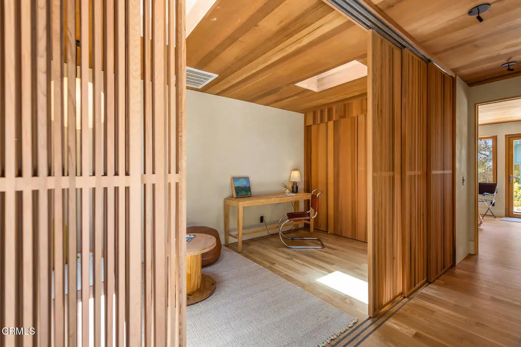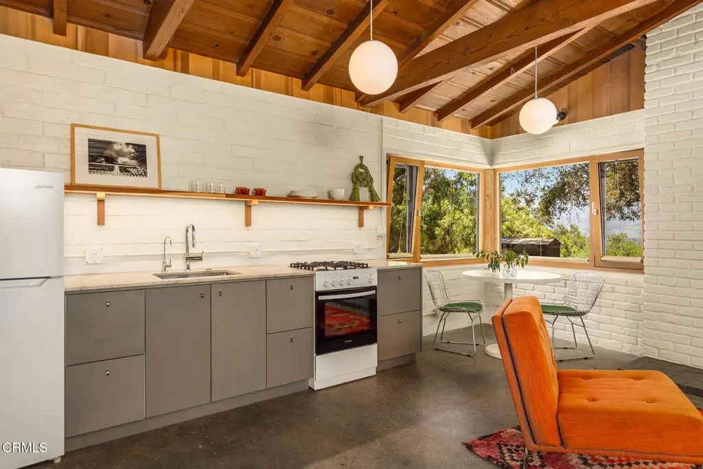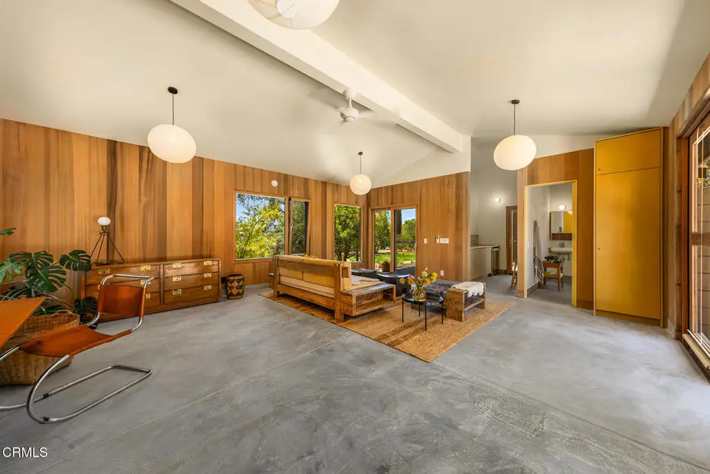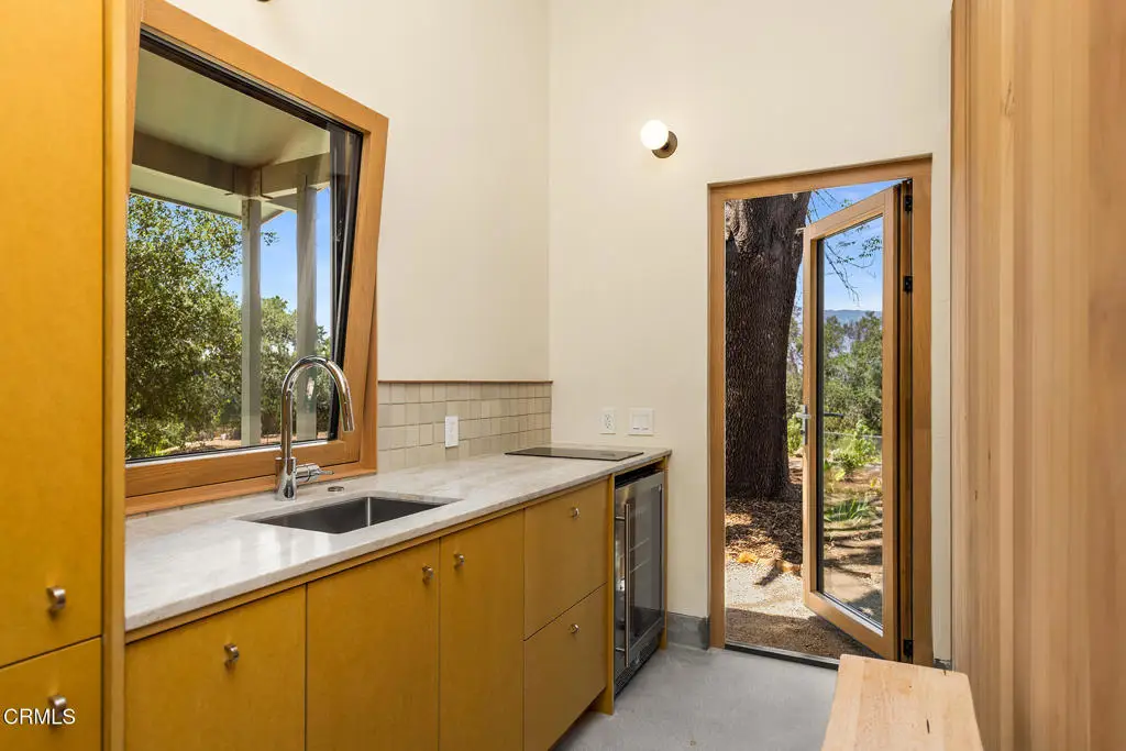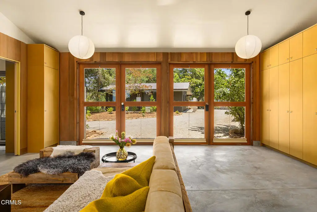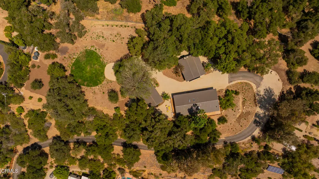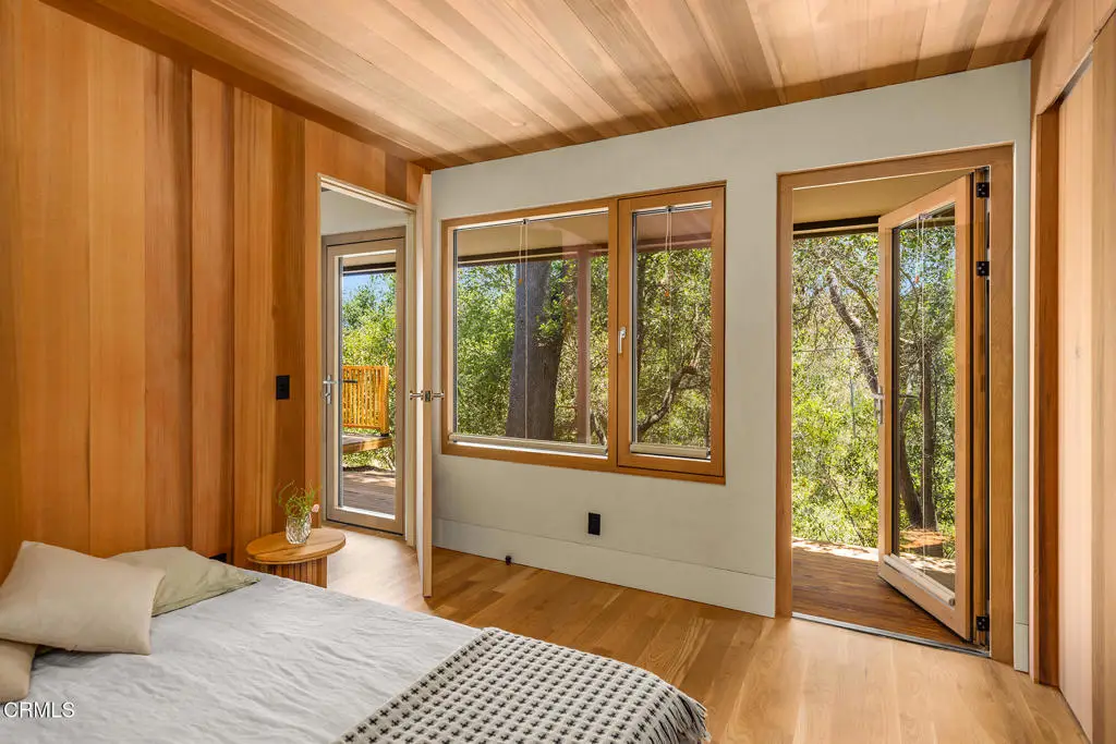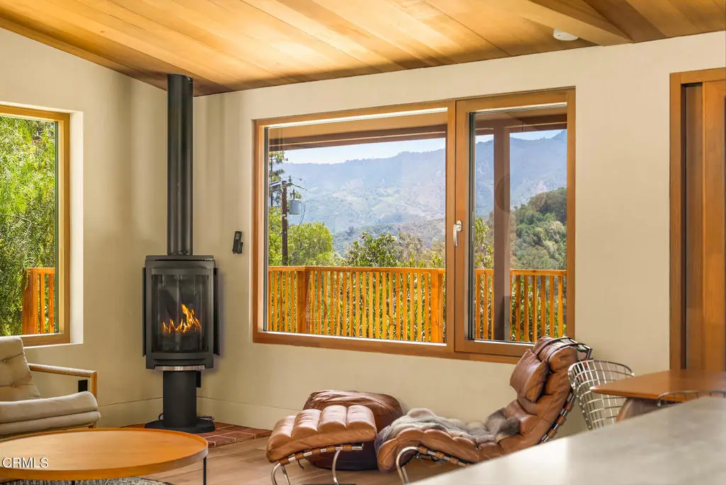 This extraordinary 2.5-acre estate is one of Ojai's most rare and refined offerings, located in a stunning ridge-top setting within the heart of the valley. Just minutes from downtown, the Ojai Valley Inn, and Villanova School, this private hilltop retreat offers panoramic 360-degree views, unmatched privacy, and a masterfully curated renovation that blends natural beauty with elevated living. Completed in 2025, every inch of the property has been meticulously renovated inside and out, combining timeless materials with modern craftsmanship. The main residence spans 1,450 square feet and is a stunning 3-bedroom, 2.5-bath. Thoughtful details are everywhere, from the solid oak floors and cedar-lined walls and ceilings, to handcrafted porcelain towel hooks, push-button light switches, and imported European tile at the entry. The chef's kitchen features honed Brazilian quartzite countertops, all-new appliances, and tilt-and-turn windows that open to a teak wraparound deck framing iconic views of the Topa Topa mountains. Bathrooms are finished with radiant heated floors, hand-selected tile work, and custom lighting. The home also includes brand-new HVAC, plumbing, electrical, and a fire-resistant metal roof. Just beyond the main house, the 623-square-foot guest house offers a studio-style layout with cedar interiors, polished concrete floors, a full kitchen, bath, and fireplace, ideal for guests, extended stays, or creative space. The third structure, a 599-square-foot finished two-car garage, continues the design language with polished concrete floors, cedar finishes, a half bath and outdoor shower, perfect as a gym, workspace, or overflow guest suite. The land itself is a sanctuary, dotted with mature trees, sculpted landscaping, and private walking paths that weave through the property. Perched high above the valley, the ridge-line setting catches a gentle, year-round breeze, creating a perfect microclimate. A private well services the entire 2.5 acres, supplying water for all landscaping needs, while a state-of-the-art water filtration system supports all three structures. This is more than a home, it's a private, architectural retreat designed for those who appreciate privacy, beauty, and an effortless connection to nature. A property like this comes along once in a generation, a true Ojai original.