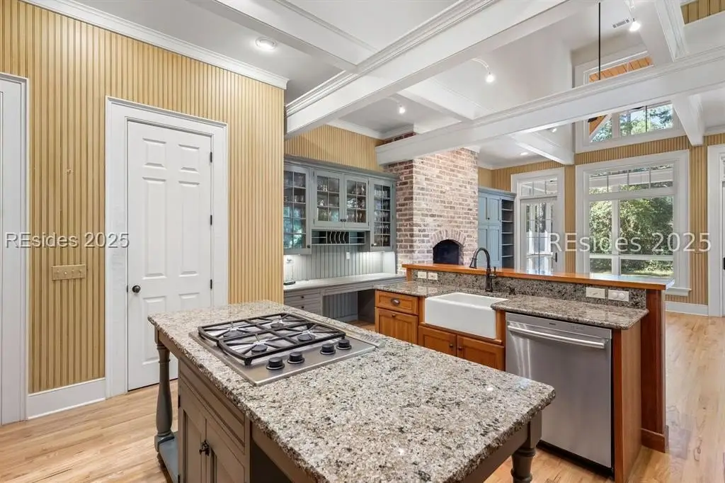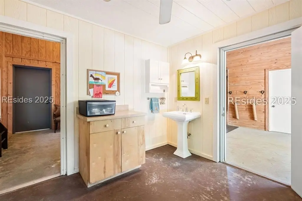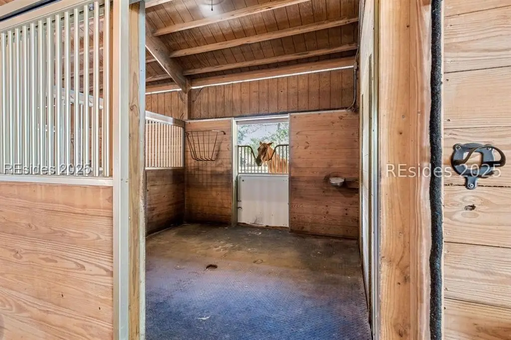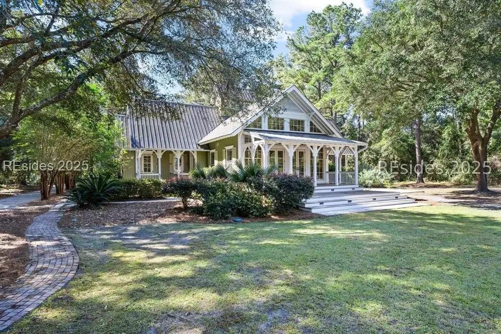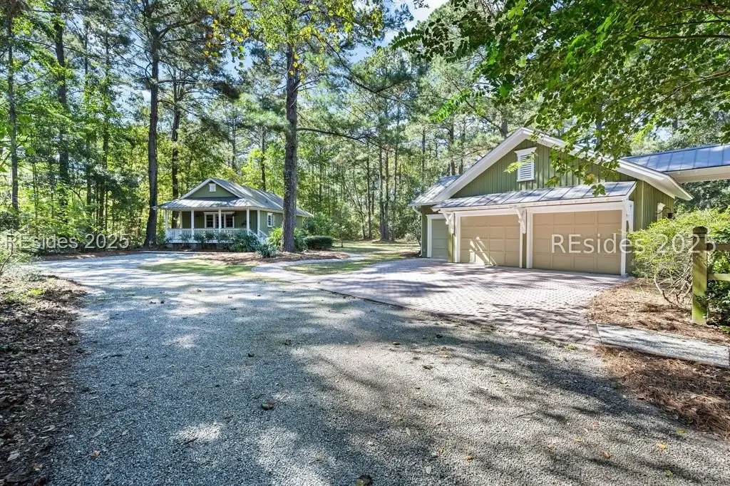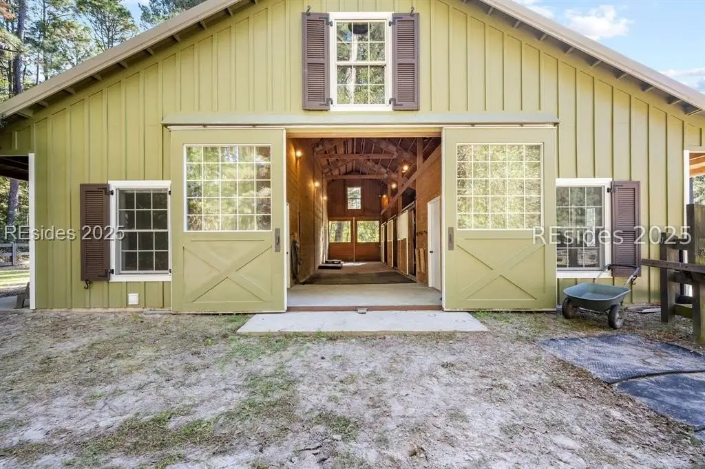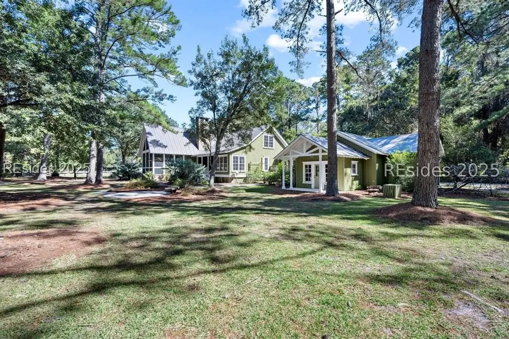 A Refined 13+ Acre Lowcountry Equestrian Retreat on Spring Island - A long, oak-lined drive leads to this extraordinary 13.2-acre equestrian estate - an intimate compound within the private, gated community of Spring Island. The property features a main house, guest cottage, 2+ car garage with golf cart bay and potting shed, the Orvis retreat, an equestrian viewing gazebo, three-stall barn, and two large, fenced pastures plus one paddock around the stalls. The main residence offers a welcoming front porch with sweeping views of pastures and the barn. French doors open to a vaulted great room filled with natural light and fine craftsmanship. The chef's kitchen with dual islands and premium appliances flows into a keeping room anchored by a Savannah brick fireplace. A screened porch opens to gardens for year-round Lowcountry living. The primary suite includes a sitting area, spa-style bath, and private porch. Guest suite, laundry, and bright studio or "woman cave" complete the main living areas. A breezeway connects the main house to the garage and potting shed, ideal for gardeners and nature enthusiasts. The guest cottage offers front and back porches, a sitting area with kitchenette, and two ensuite bedrooms, providing privacy and comfort for family or friends. Across a wooden bridge, the Orvis Room "man cave" features a wraparound porch with outdoor fireplace overlooking a tranquil water feature. Inside, a great room, office, or bourbon room, and full bath create an ideal gathering place. The gazebo overlooks pastures, perfect for entertaining or watching dressage. The three-stall barn includes a tack room, bath, utility area, and space for future living quarters. Two large, fenced pastures and one paddock provide ample room for horses. Life on Spring Island is unlike anywhere else, offering 3,000 acres of preserved natural beauty and premier amenities: Arnold Palmer-designed golf, equestrian center, tennis and pickleball, fitness complex with heated and chilled saltwater pools, scenic trails for walking or riding, a 7.5-acre community garden, and an inspiring art barn. (Note - 5 photos with furniture in them have been virtually staged to show the home's potential)