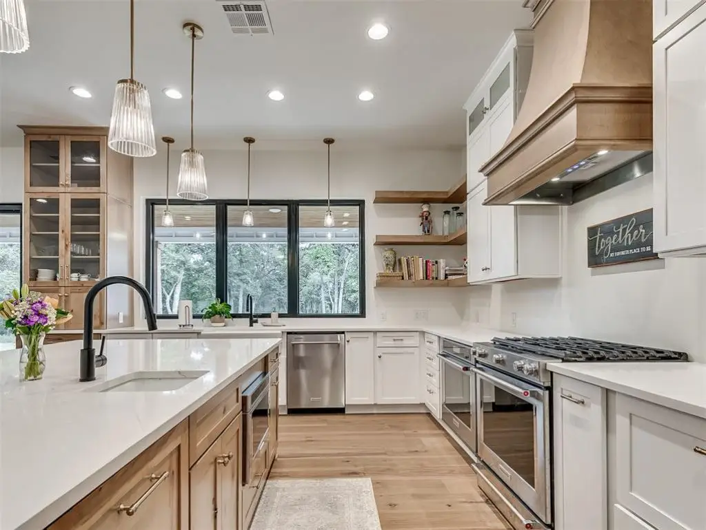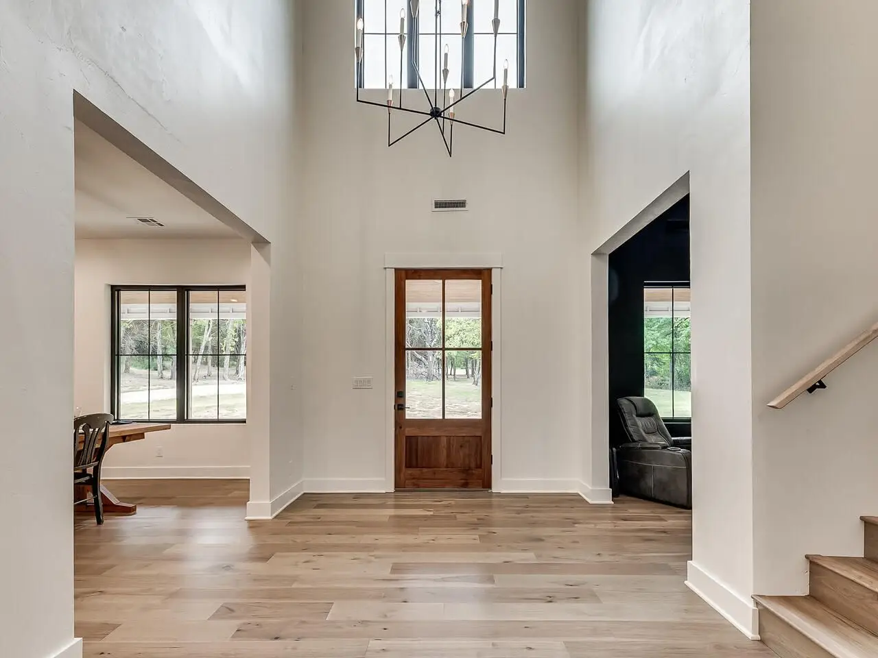 If this isnt a dream come true modern Farmhouse I dont know what is! This custom-built home sits majestically on a beautiful 4.35 acre wooded lot. After you've caught your breath as you travel down the winding drive you'll quickly realize how lovely and usable are the generously sized wrap around porches front and back. There's over 1,500 sqft of porches. That's just the beginning! There is so much architectural interest within the property; a 20' entry ceiling, Pella windows, and most significantly pastoral peaceful views of the property from every vantage point. This home has six bedrooms, the primary bedroom and bath which is spectacular is on one end. And three other bedrooms and bathrooms on the main floor at the other end all with 10' ceilings. Upstairs is a big living area (playroom, second office or media room) as well as the other roomy bedrooms, two bathrooms and big gorgeous windows to look out of and dream. Every home has a heart and this one is the large living area combined with an expansive open kitchen. If you enjoy entertaining and love cooking this ones for you! Every detail was thought through carefully when designing this kitchen. Lovely cabinets and lots of storage and a big farm sink overlooking the backyard. The quartz island is approximately 5'x10' with a salad sink and there is room for lots of stools and storage around the island, Kitchen Aide appliances, engineered wood flooring throughout the living areas. On top of the highly functional and beautiful kitchen there is a walk-in pantry room and over 10' of quartz countertop space many drawers and cabinets with adjustable shelves room for a refrigerator and freezer plus a mudroom area for coats/shoes. Directly across from this room is the laundry room with a deep sink storage and it has an 8' quartz countertop space. These rooms are work horses! Navien tankless hot water, water filtration system, water softener, 4 car garage & more!Well waterSeptic system: Installed and serviced by Red Dirt Septic2 Navien Tankless hot water heaters3 Heat & AC zoned unitsPella windows (casement)Each room wired with Cat6 cablingFiber Internet installedWater sprinkler system ready with well waterWater softener systemTriple filtered water treatment system1,500 sq ft loft unfinished loft space above garage with plumbing and electrical planned for future expansionLarge shop space located in 4 car garageBathroom with outside entrance located in garageFront and rear porches prewired for ceiling fansEngineered hardwood floors downstairs5.1 channel surround sound ceiling speakers in downstairs living area