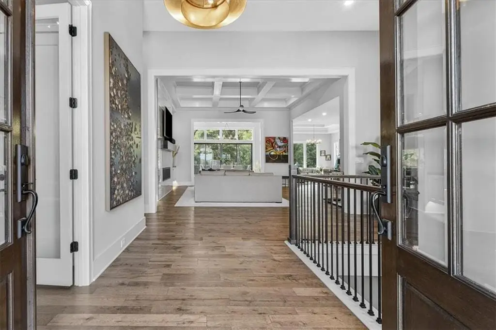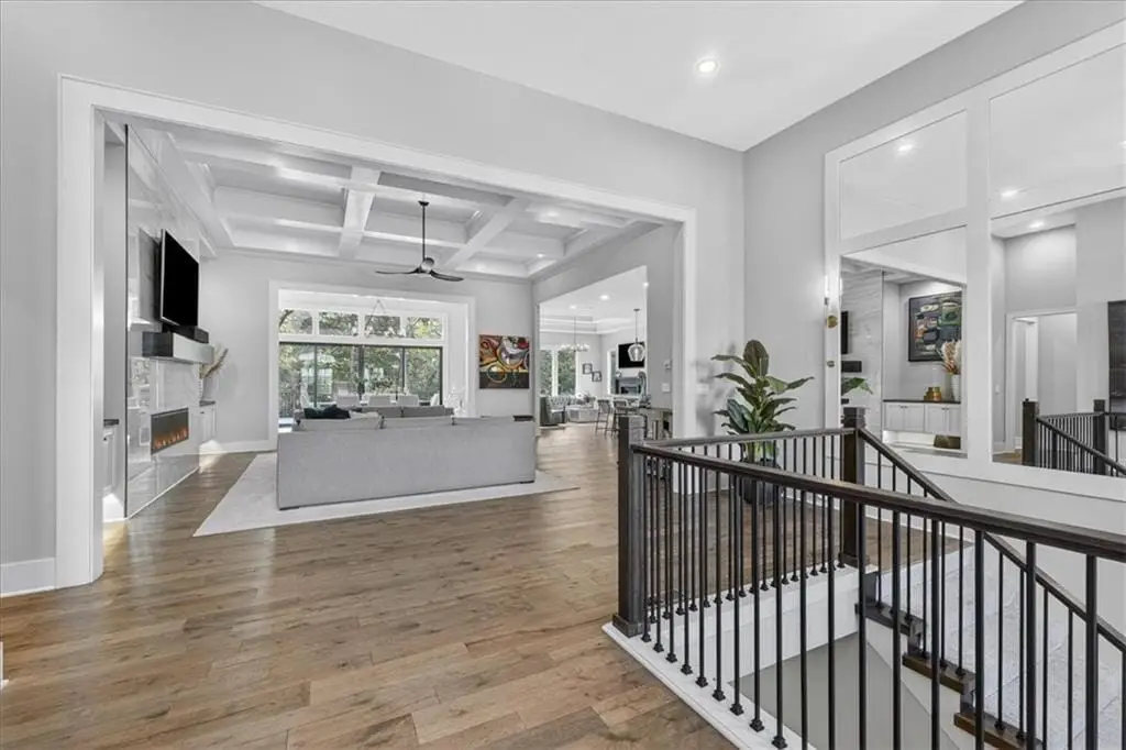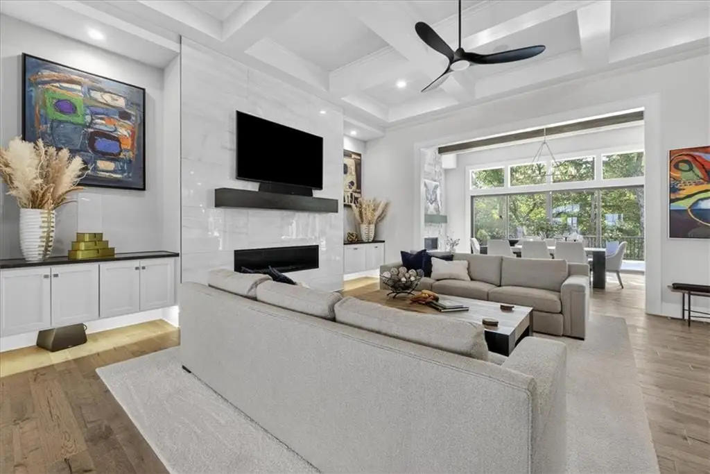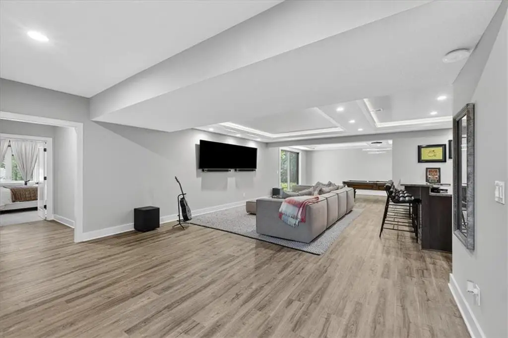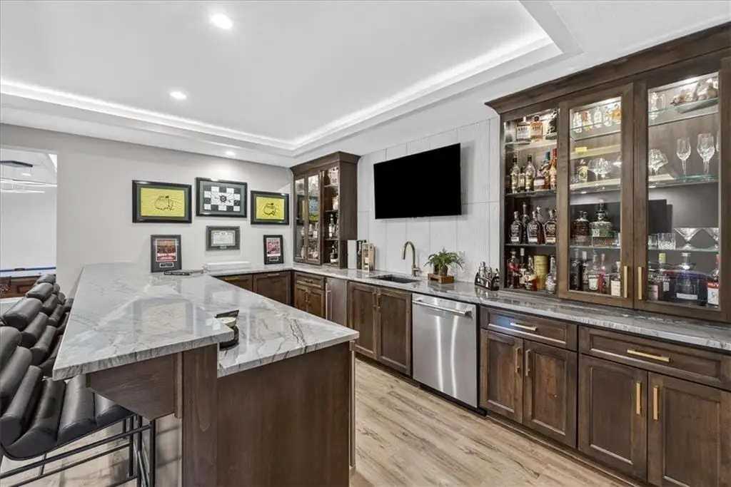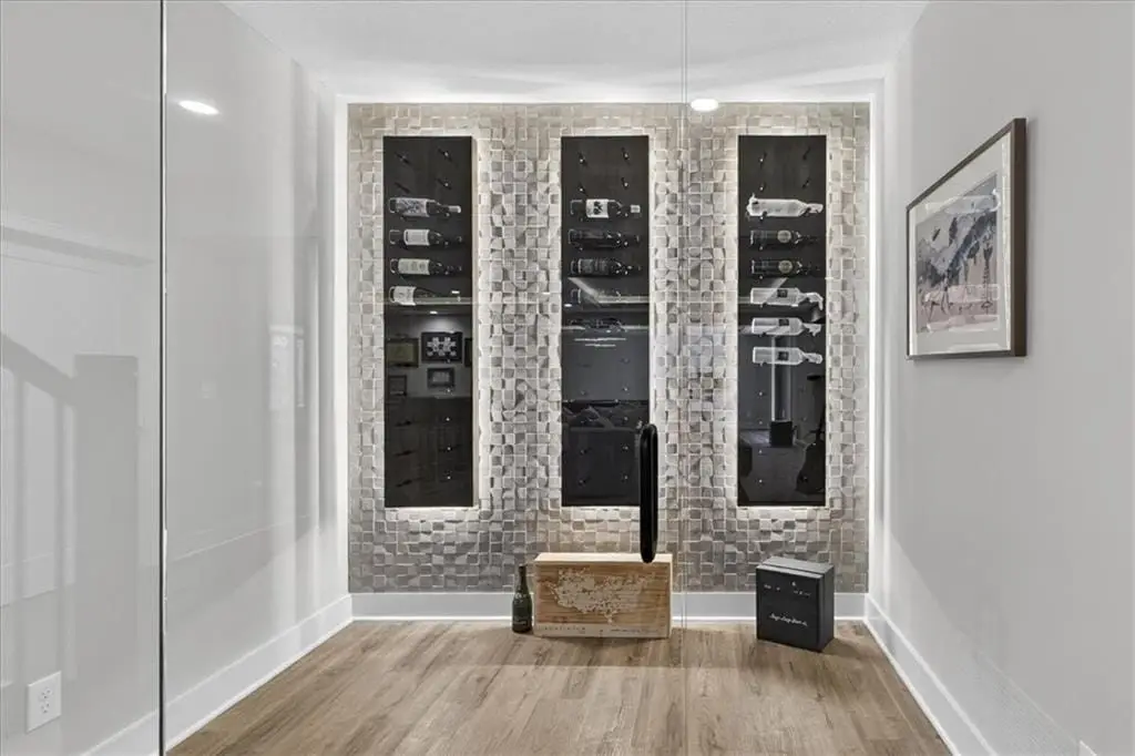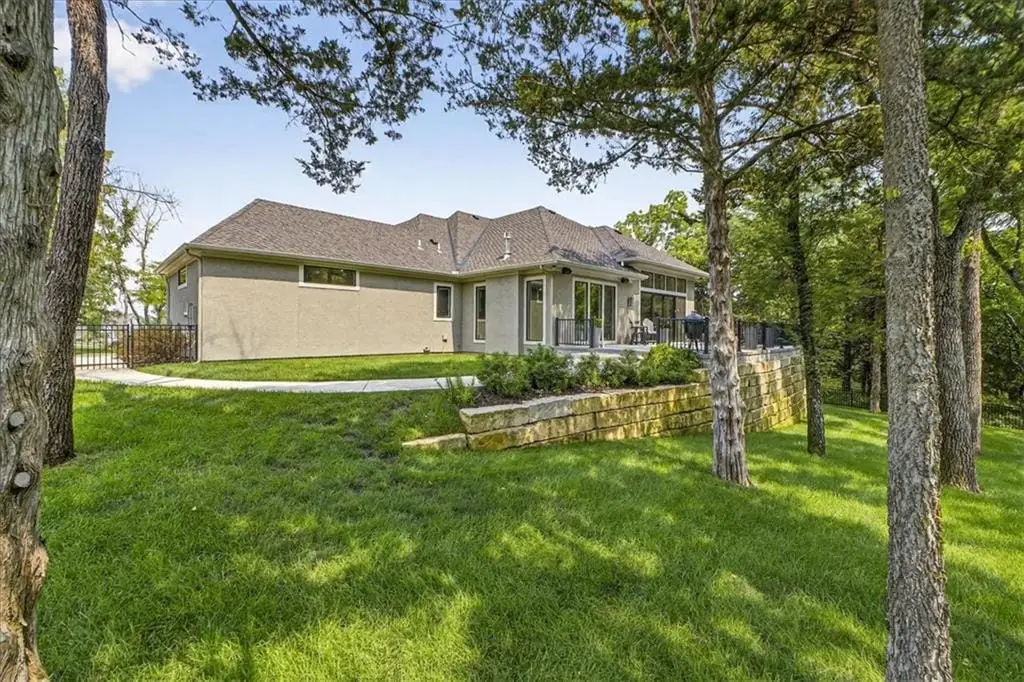 Luxury and modern elegance converge in this custom reverse 1.5-story by Kessler Custom Homes, ideally located in Cedar Creek's coveted Hidden Lake Estates. Situated on a .66-acre treed cul-de-sac lot, this 4-bed, 4-bath showpiece offers nearly 5,000 square feet of impeccably designed living space with a walkout basement and oversized 4-car side-entry garage with epoxy floors. The chef's kitchen is a dream, featuring top-of-the-line BlueStar appliances, six ovens, a massive quartz island, custom cabinetry, and a walk-in butler's pantry that doubles as a prep kitchen or secondary office. The open main level boasts vaulted ceilings, exposed beams, designer lighting, hardwood floors, and built-in speakers throughout. A dramatic wall of windows and sliding doors open to a stamped concrete patio overlooking the private, fully fenced backyard. The luxurious primary suite features two walk-in closets and a spa-worthy bath with floating vanities, herringbone tile, soaking tub, and dual-head walk-in shower. The lower level offers a full wet bar with ice maker and dishwasher, glass-enclosed wine cellar, game room, and two spacious bedrooms with ensuite baths and private patio access. Enjoy direct access to Cedar Creek's resort-style amenities, including a 65-acre lake, multiple pools, clubhouse, trails, tennis, and Shadow Glen Golf Club just minutes away.
