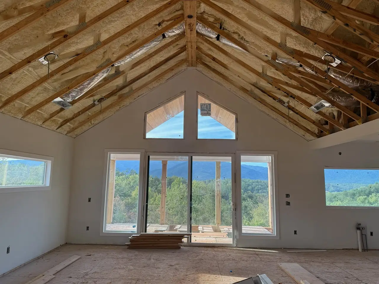 Solid New Construction with Breathtaking Mountain Views, perched on 4 acres with outstanding 180-degree views of Mt. Mitchell and the surrounding mountain ranges, this newly built home combines modern luxury with timeless mountain craftsmanship. A level circular driveway welcomes you to this stunning property, complete with a 26 kW Kohler whole-house generator for peace of mind. Inside, the great room impresses with cathedral tongue-and-groove ceilings and expansive custom windows designed with extra UV protection, framing mountain vistas from every living space and bedroom. The open floor plan features a chef's kitchen with GE Caf? appliances, a butler's pantry, walk-in pantry, and access to Trex decking for seamless indoor-outdoor living. Quality and durability are evident throughout, with Hardi exterior siding, 400-amp electrical service, tankless water heater with instant hot water, and a whole-home WiFi mesh system ensuring strong connectivity on every level. Security is enhanced with a camera system and exterior lighting. Beautiful ?-inch thick, 5-inch wide white oak floors flow throughout the first and second levels. Each bedroom offers an en suite bath, while multiple flex spaces provide endless options for a home office, gym, craft room, or recreation room. Excellent storage is integrated throughout. An additional 4 acres is available for those who desire more space and privacy.