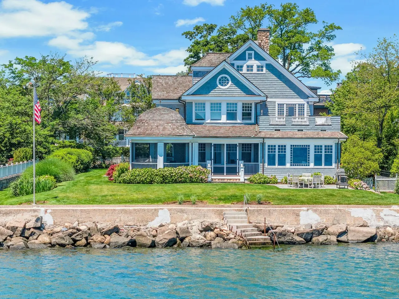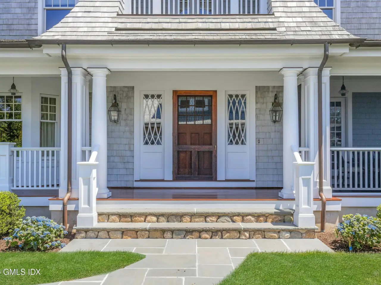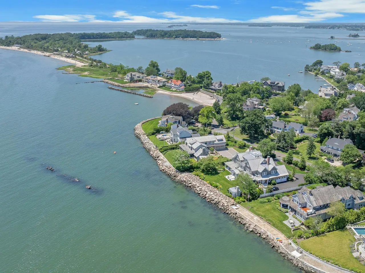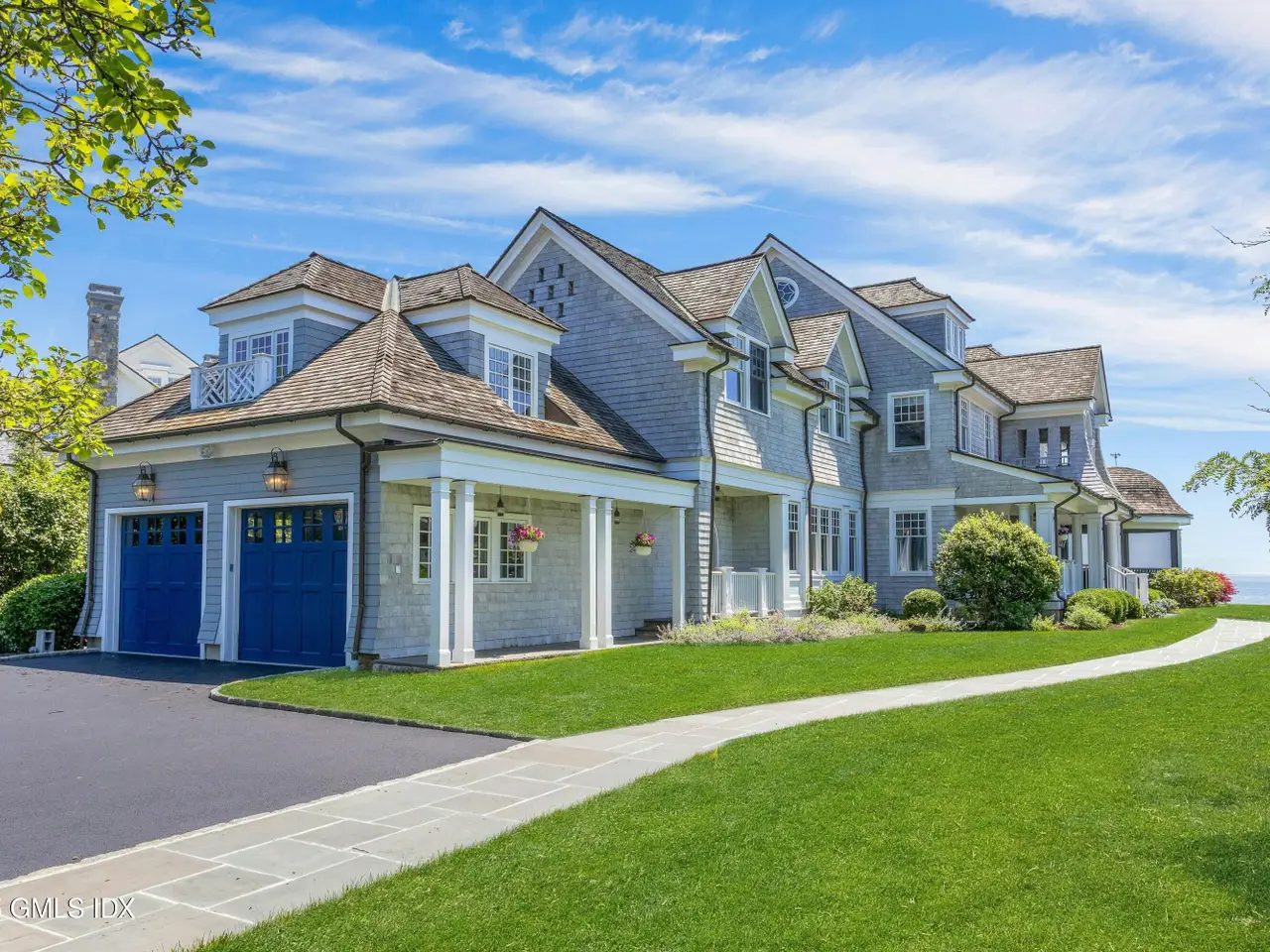 Spectacular Waterfront Living in Lucas Point! Wake up to breathtaking sunrise views of Long Island Sound from this stunning Nantucket-style coastal retreat, nestled in the heart of sought-after Lucas Point. Just a short stroll to the private association beach, boat dock, and iconic Tod's Point, this home is your gateway to the ultimate Greenwich lifestyle. Thoughtfully designed for both relaxed living and grand entertaining, this home features expansive wraparound porches, perfect for summer gatherings, sunset cocktails, or cozy family evenings. Inside, a sun-filled open-concept kitchen and family room seamlessly flow into elegant formal living spaces and a private home office. A charming butler's pantry and an additional study room off the kitchen add both function and flexibility. Upstairs, the luxurious primary suite boasts a private deck with panoramic water views, your personal sanctuary, with heated bathroom floors and steam room shower. Four additional spacious bedrooms, a laundry room, and a versatile bonus room (ideal as a second office or media room) offer comfort and convenience for every member of the household. A covered breezeway connects to the two-car garage, enhancing both curb appeal and year-round practicality. Recent upgrades include refreshed driveways, decks, and walkways. Plus, pending applications for a private dock and pool promise even more potential to personalize this dream home. Don't miss this rare opportunity to own waterfront in one of Greenwich's most coveted coastal neighborhoods!