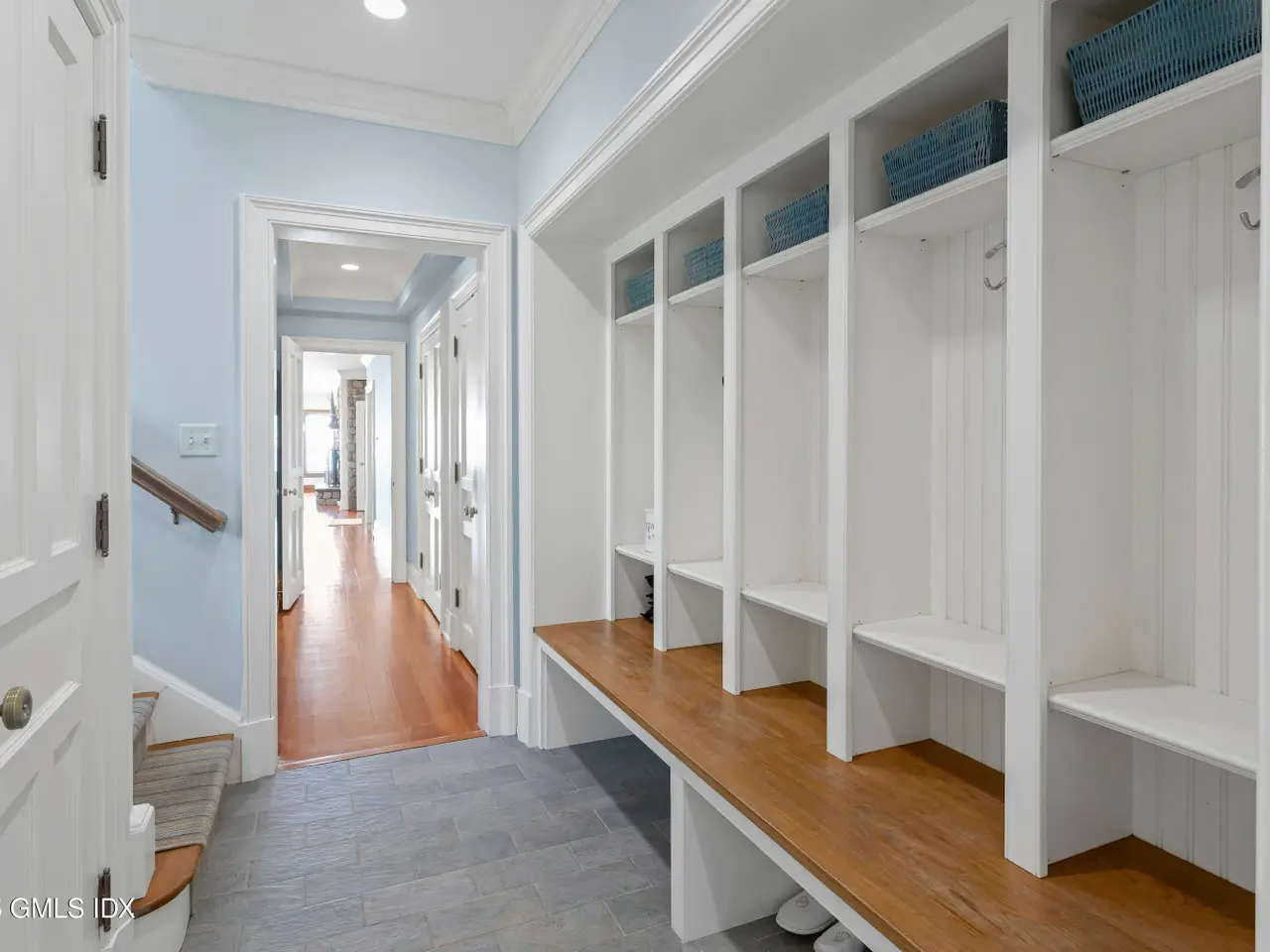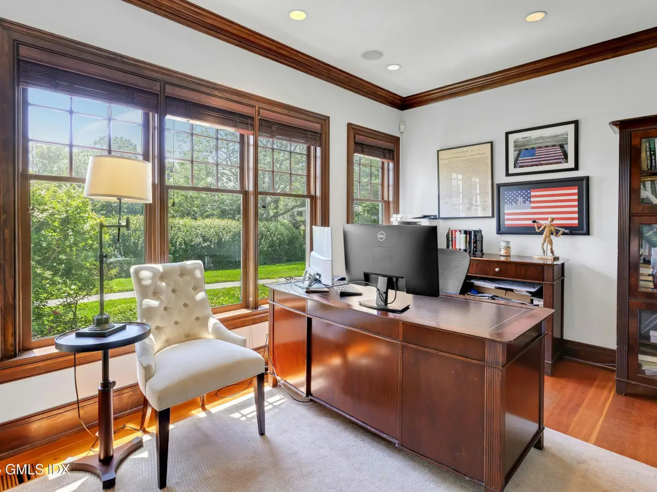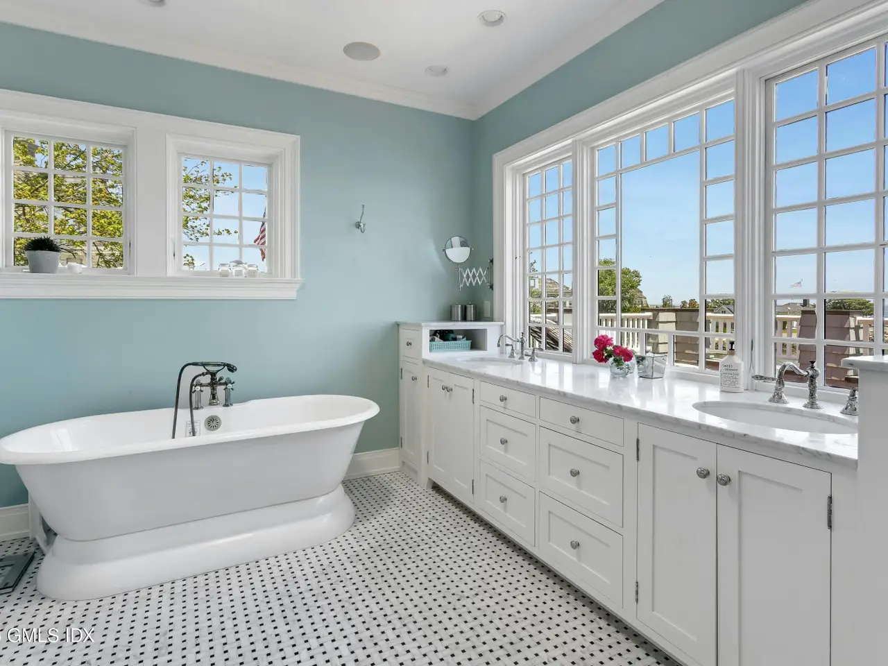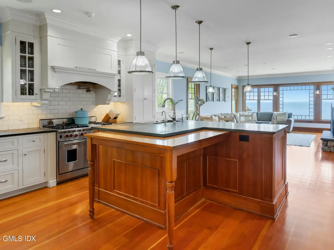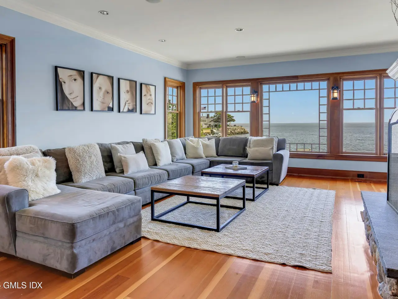 Spectacular Waterfront Living in Lucas Point! Wake up to breathtaking sunrise views of Long Island Sound from this stunning Nantucket-style coastal retreat, nestled in the heart of sought-after Lucas Point. Just a short stroll to the private association beach, boat dock, and iconic Tod's Point, this home is your gateway to the ultimate Greenwich lifestyle. Thoughtfully designed for both relaxed living and grand entertaining, this home features expansive wraparound porches, perfect for summer gatherings, sunset cocktails, or cozy family evenings. Inside, a sun-filled open-concept kitchen and family room seamlessly flow into elegant formal living spaces and a private home office. A charming butler's pantry and an additional study room off the kitchen add both function and flexibility. Upstairs, the luxurious primary suite boasts a private deck with panoramic water views, your personal sanctuary, with heated bathroom floors and steam room shower. Four additional spacious bedrooms, a laundry room, and a versatile bonus room (ideal as a second office or media room) offer comfort and convenience for every member of the household. A covered breezeway connects to the two-car garage, enhancing both curb appeal and year-round practicality. Recent upgrades include refreshed driveways, decks, and walkways. Plus, pending applications for a private dock and pool promise even more potential to personalize this dream home. Don't miss this rare opportunity to own waterfront in one of Greenwich's most coveted coastal neighborhoods!