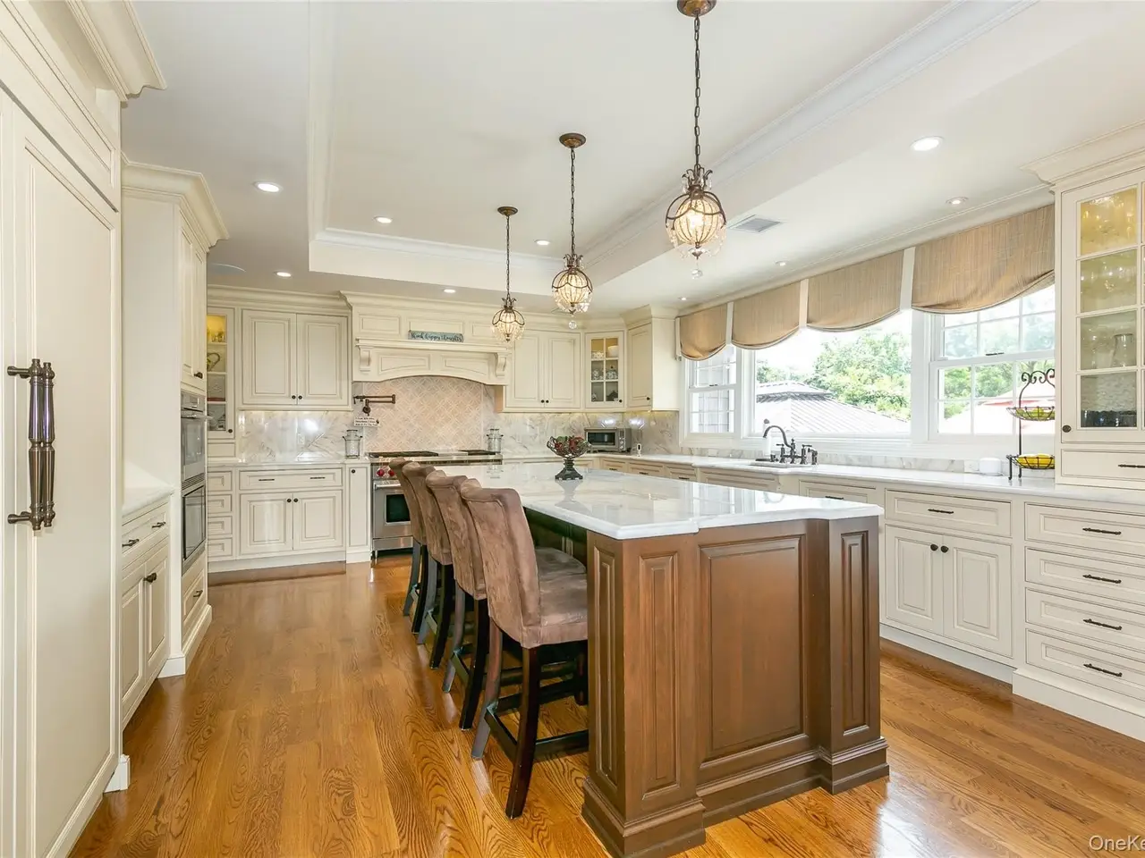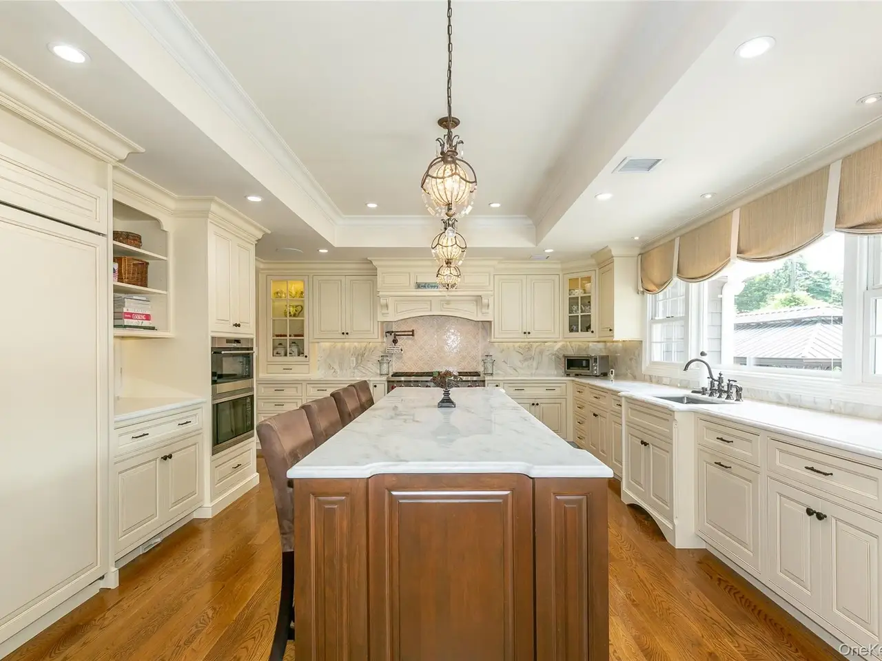 Exquisite, Better-Than-New Estate Ranch. Meticulously rebuilt from the ground up, this sprawling ranch sits at the serene end of a private cul-de-sac, offering the ultimate blend of sophistication, privacy and year round resort living. Step outside to professionally landscaped grounds highlighted by a heated in ground pool, extensive stone patios and multiple lounging and entertaining areas-all creating a true country-club oasis. Inside, a state-of-the-art gourmet kitchen showcases top tier appliances, custom cabinetry and gas cooking. The sun drenched family room with soaring cathedral ceilings frames dramatic views of the spectacular backyard retreat. Additional distinctions include seperate guest quarters for VIP visitors, impeccable "Like New" condition throughout. Also available for rent starting 12/1/2025 for $11,000.