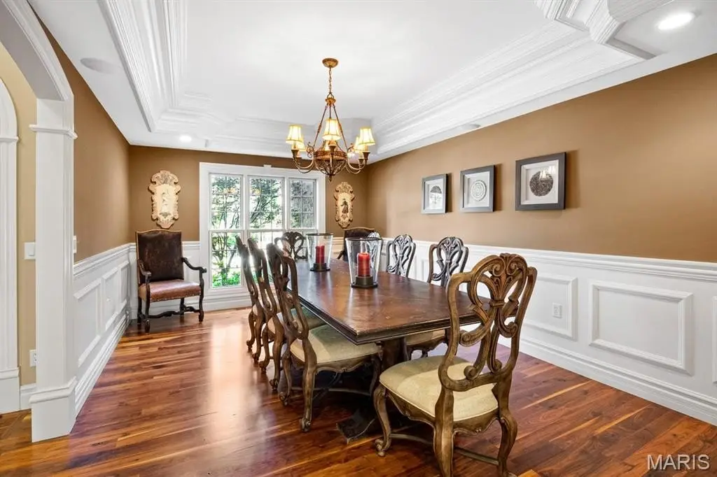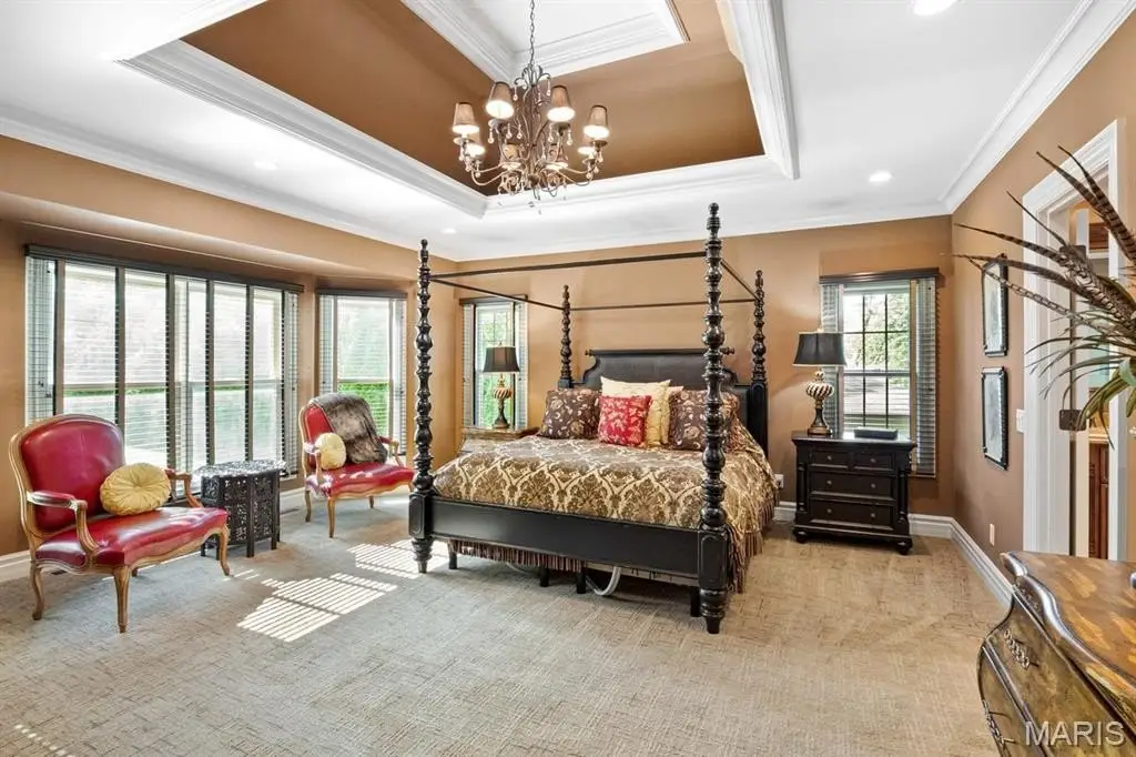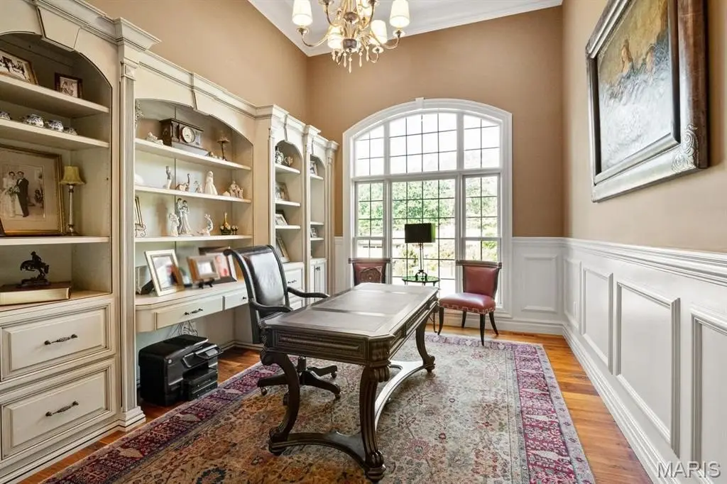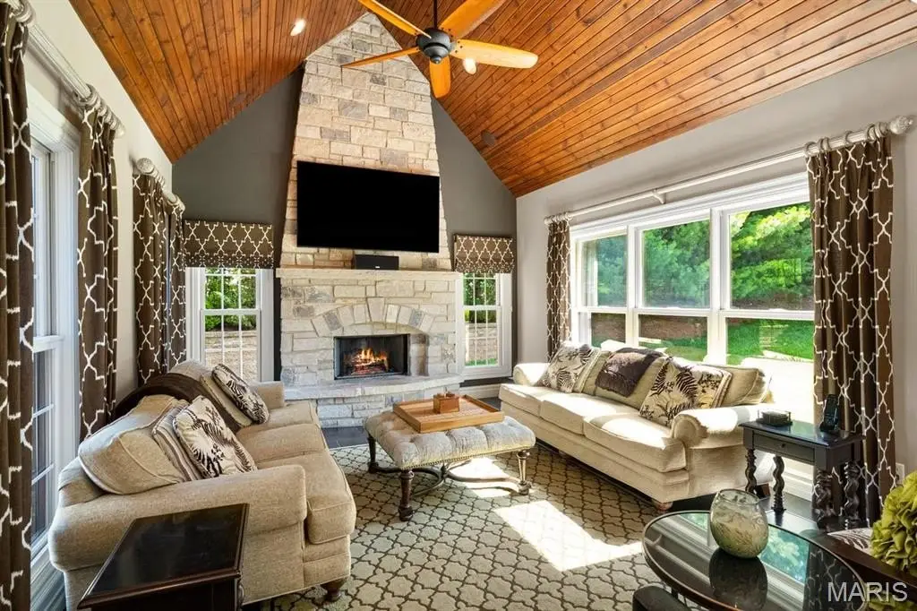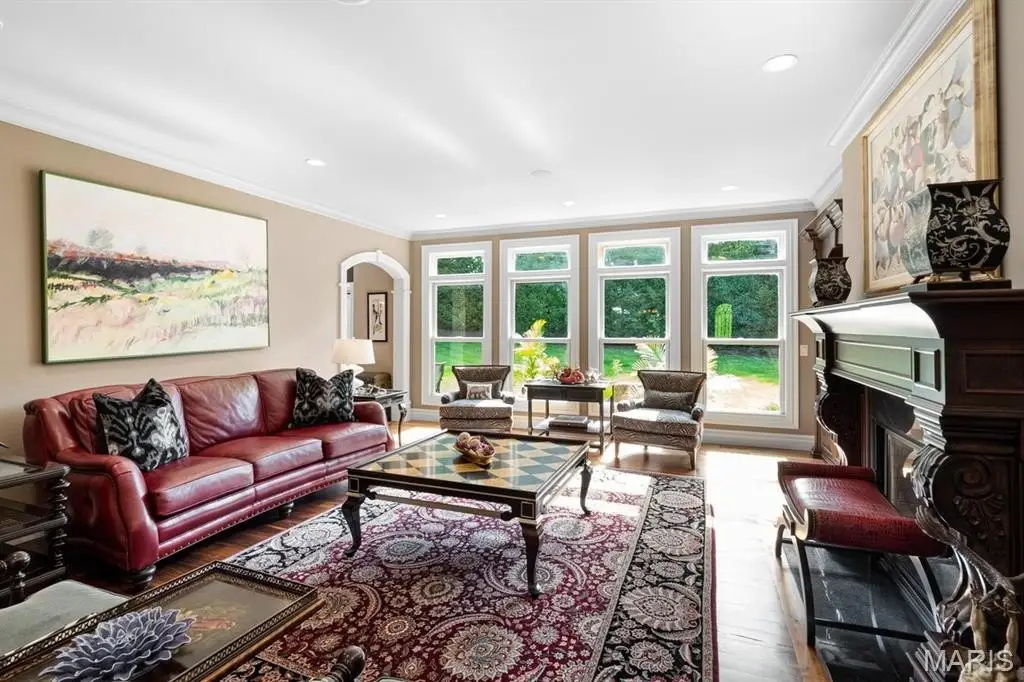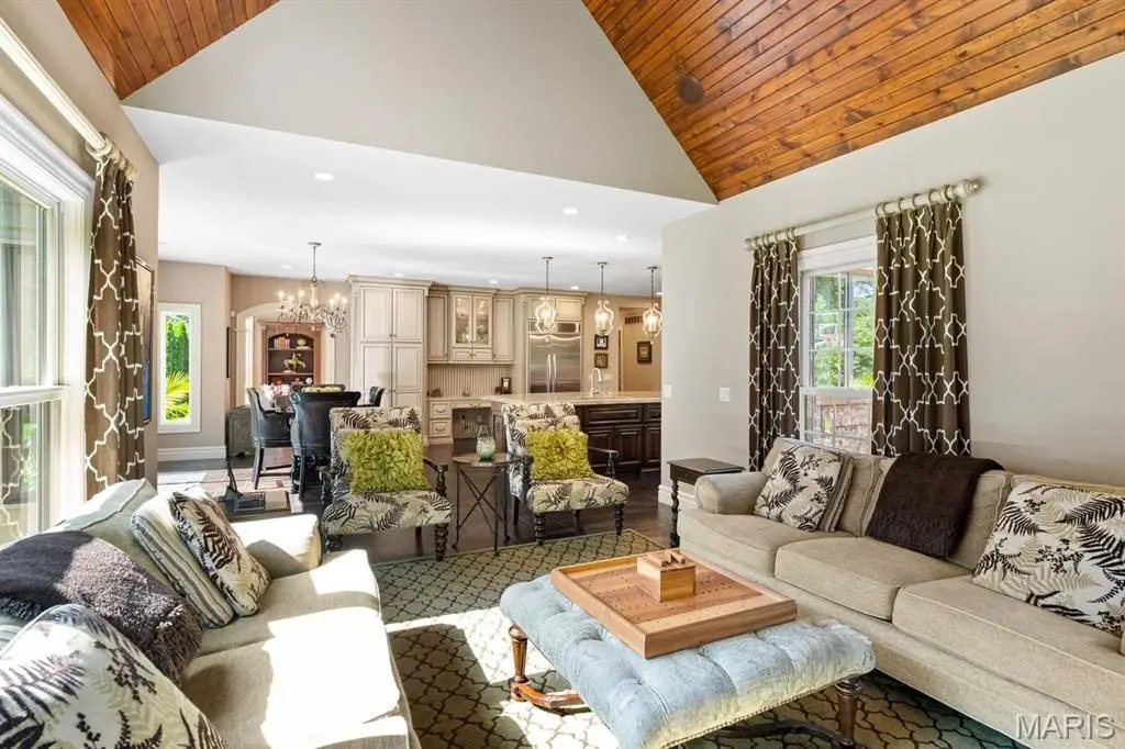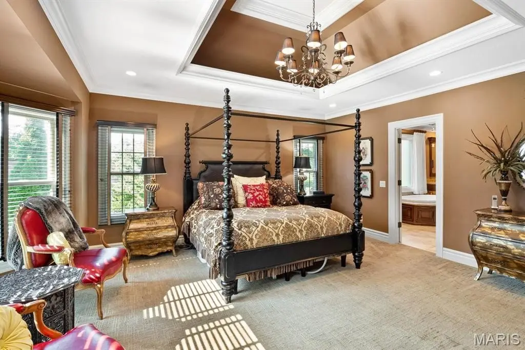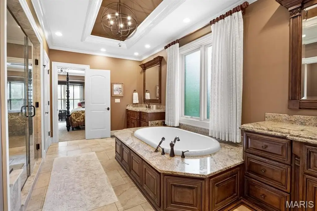 Price Improved. This spectacular custom built 13 year old home is situated on a lushly landscaped .5 acre lot on a private lane close to Old Bonhomme Elementary and Stacy Park. This home has all the right spaces to live & entertain effortlessly. The home is filled with custom touches like in-ceiling speakers, crown molding, wainscoting & high end flooring throughout.The gourmet eat-in kitchen has top of the line appliances & a huge center island that includes seating, a sink & plenty of storage. Off the kitchen, you will find a mudroom with built-in cubbies, door to the oversized 3 car garage & separate laundry room. The main floor master suite is grand & includes a gorgeous granite-clad bathroom with his & her vanities, air jetted whirlpool tub, two custom closets & a large walk-in shower w/ dual shower heads. Upstairs you will find a big bonus room complete w/ gas fireplace, built-in bookcases & speakers. There are 3 additional bedrooms, one of which is en-suite while the other two share a jack-n-jill bathroom. Plus there is an upstairs laundry closet that fits a full-size stackable washer/dryer. The finished lower level includes a walk behind bar, HUGE flex space for entertaining, a possible 5th bedroom, a full bathroom and great storage. The lot is private and features a large patio with built in firepit, sprinkler system and outdoor speakers. A home for all ages and stages.