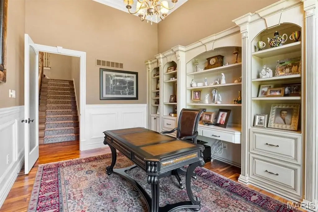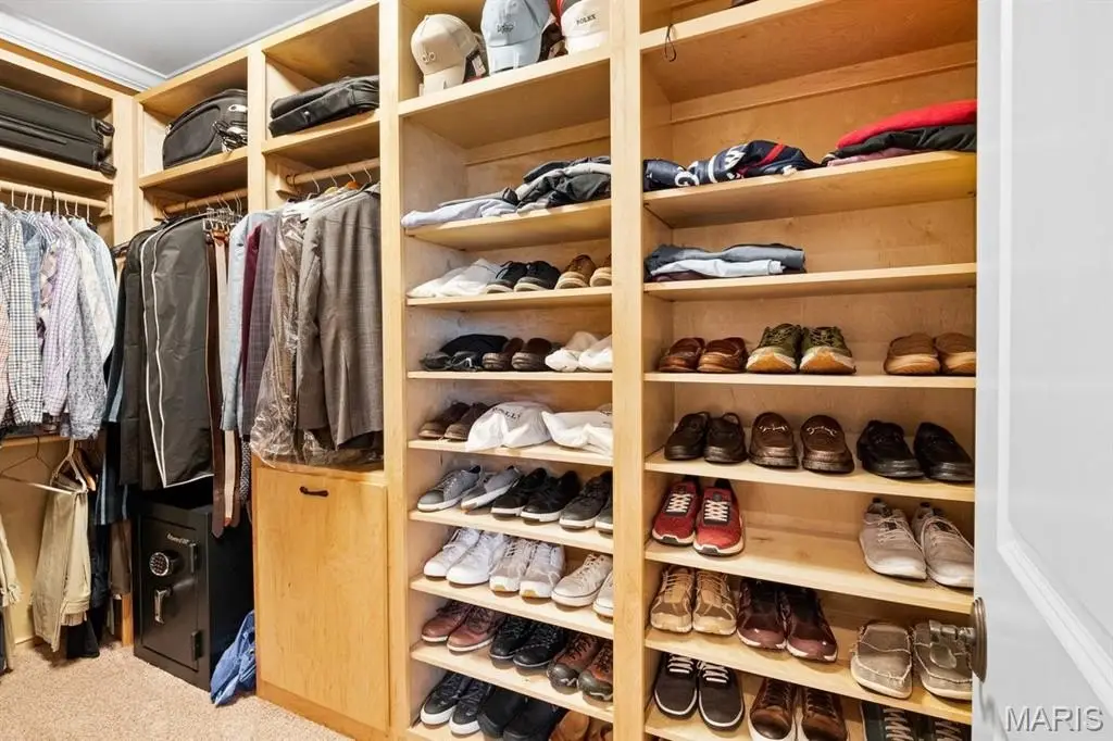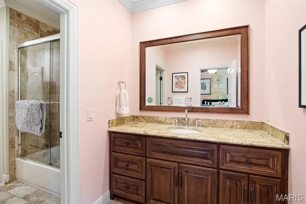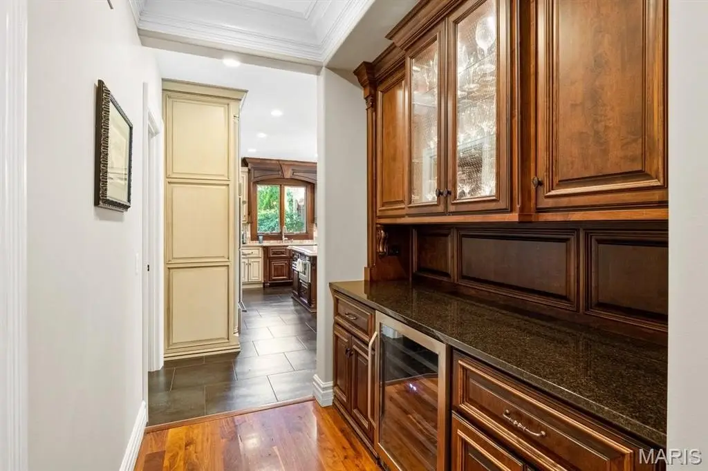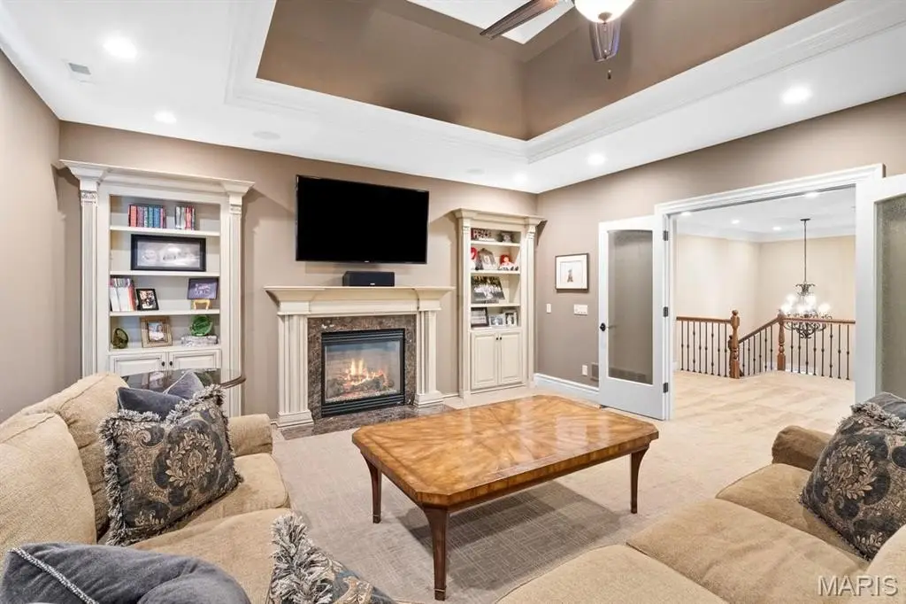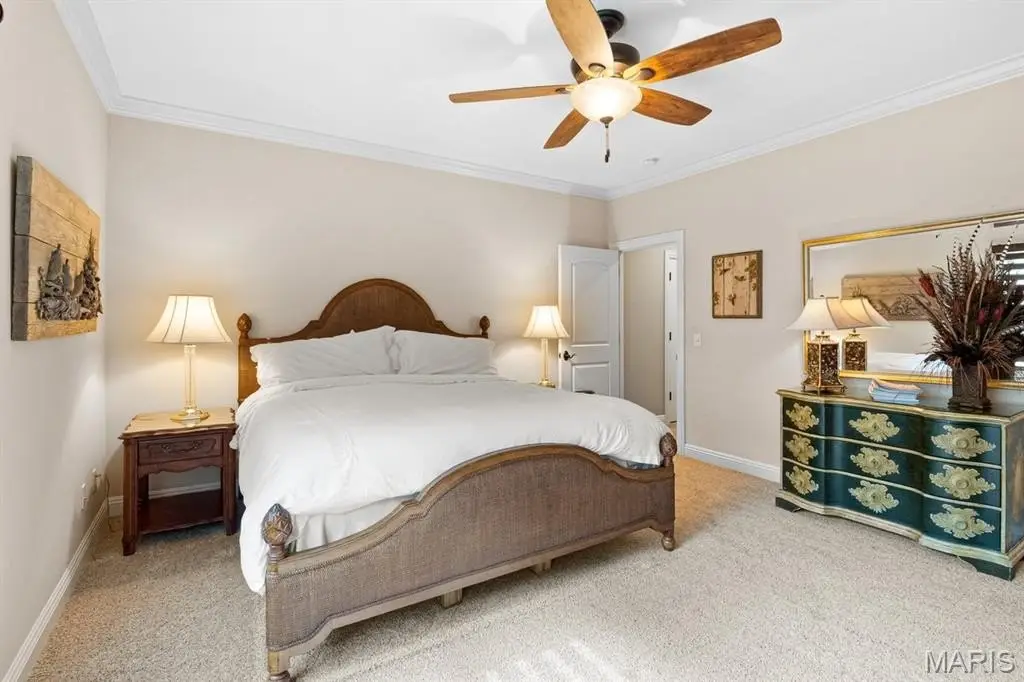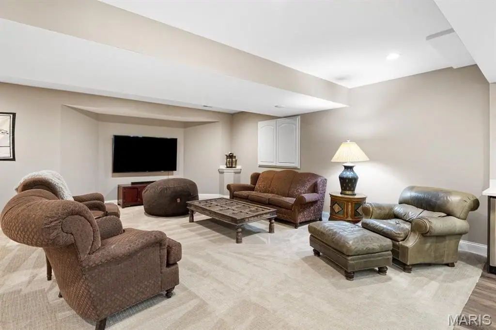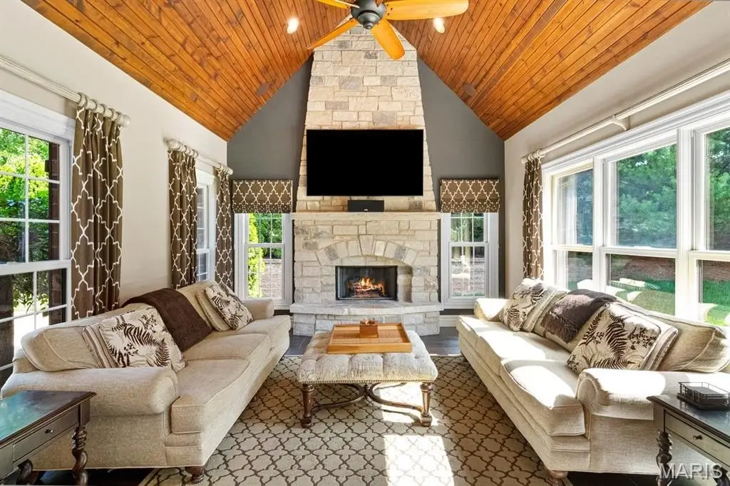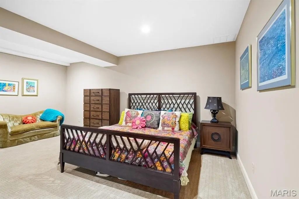 Price Improved. This spectacular custom built 13 year old home is situated on a lushly landscaped .5 acre lot on a private lane close to Old Bonhomme Elementary and Stacy Park. This home has all the right spaces to live & entertain effortlessly. The home is filled with custom touches like in-ceiling speakers, crown molding, wainscoting & high end flooring throughout.The gourmet eat-in kitchen has top of the line appliances & a huge center island that includes seating, a sink & plenty of storage. Off the kitchen, you will find a mudroom with built-in cubbies, door to the oversized 3 car garage & separate laundry room. The main floor master suite is grand & includes a gorgeous granite-clad bathroom with his & her vanities, air jetted whirlpool tub, two custom closets & a large walk-in shower w/ dual shower heads. Upstairs you will find a big bonus room complete w/ gas fireplace, built-in bookcases & speakers. There are 3 additional bedrooms, one of which is en-suite while the other two share a jack-n-jill bathroom. Plus there is an upstairs laundry closet that fits a full-size stackable washer/dryer. The finished lower level includes a walk behind bar, HUGE flex space for entertaining, a possible 5th bedroom, a full bathroom and great storage. The lot is private and features a large patio with built in firepit, sprinkler system and outdoor speakers. A home for all ages and stages.