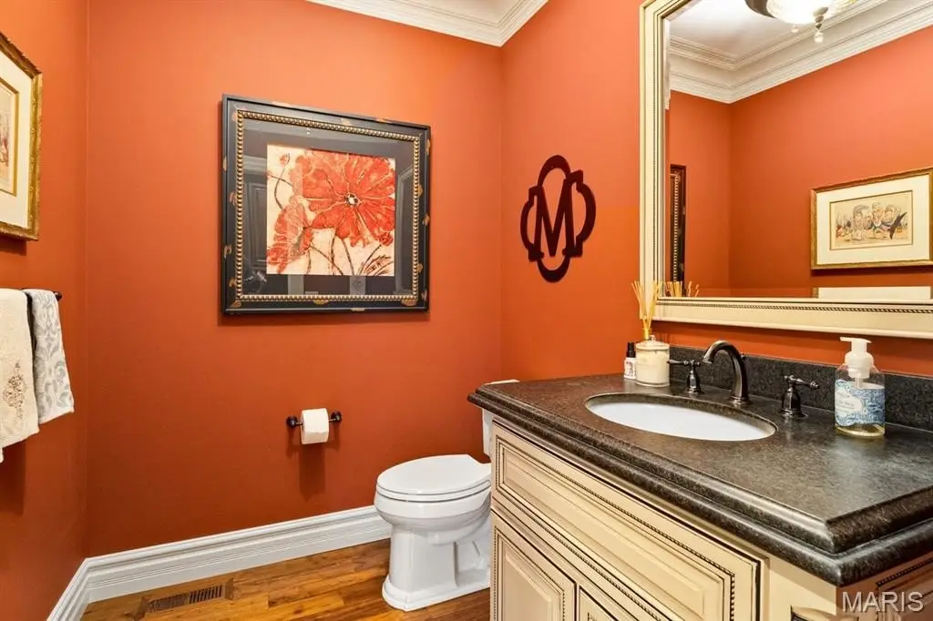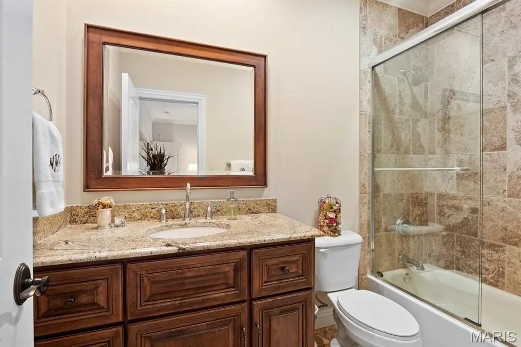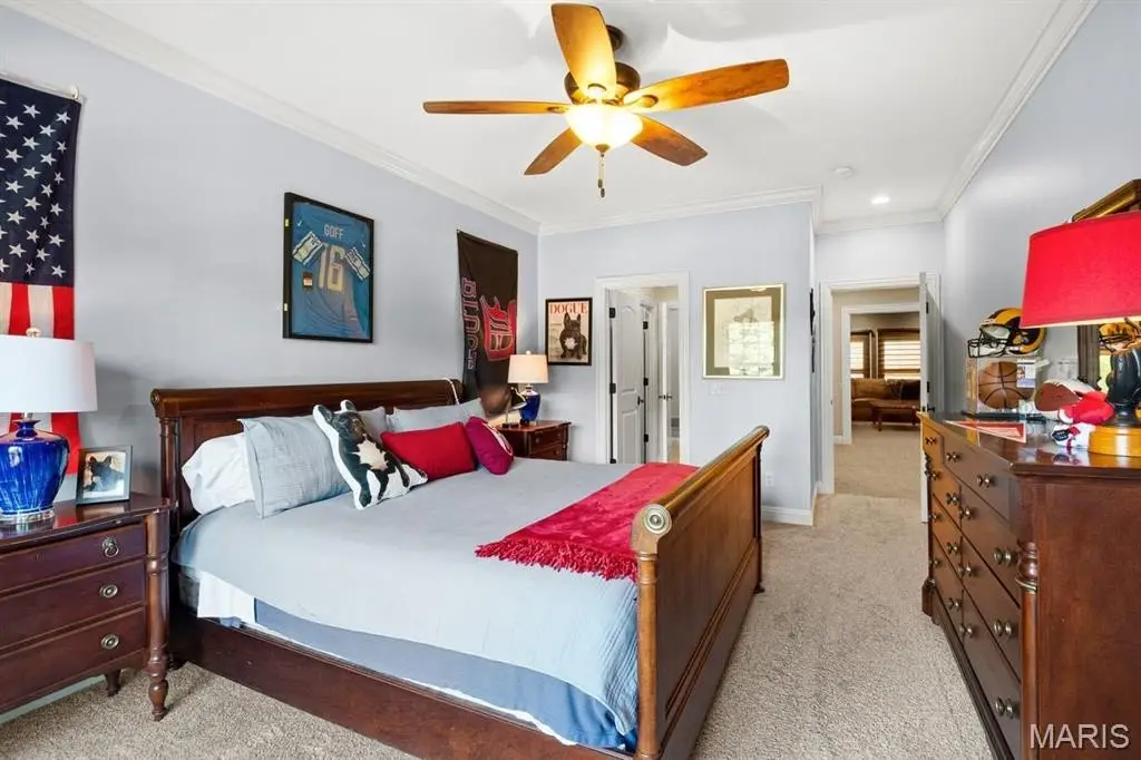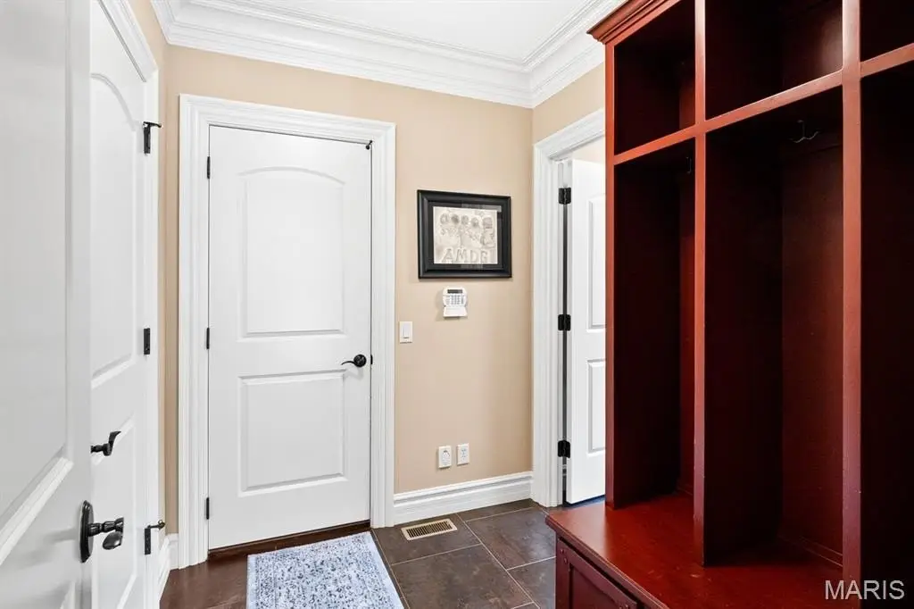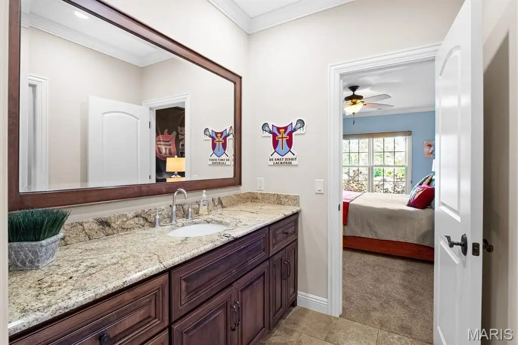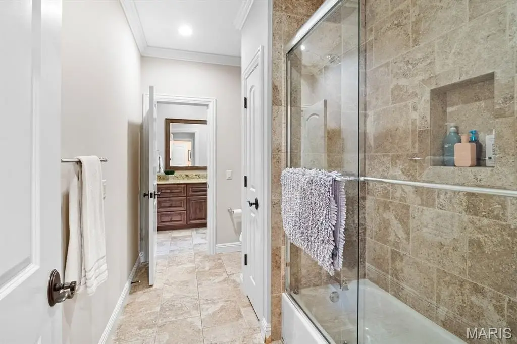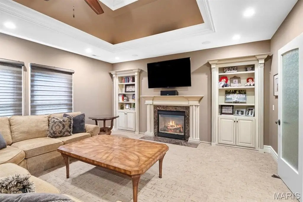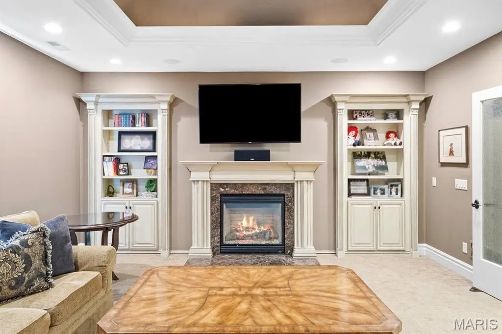Price Improved. This spectacular custom built 13 year old home is situated on a lushly landscaped .5 acre lot on a private lane close to Old Bonhomme Elementary and Stacy Park. This home has all the right spaces to live & entertain effortlessly. The home is filled with custom touches like in-ceiling speakers, crown molding, wainscoting & high end flooring throughout.The gourmet eat-in kitchen has top of the line appliances & a huge center island that includes seating, a sink & plenty of storage. Off the kitchen, you will find a mudroom with built-in cubbies, door to the oversized 3 car garage & separate laundry room. The main floor master suite is grand & includes a gorgeous granite-clad bathroom with his & her vanities, air jetted whirlpool tub, two custom closets & a large walk-in shower w/ dual shower heads. Upstairs you will find a big bonus room complete w/ gas fireplace, built-in bookcases & speakers. There are 3 additional bedrooms, one of which is en-suite while the other two share a jack-n-jill bathroom. Plus there is an upstairs laundry closet that fits a full-size stackable washer/dryer. The finished lower level includes a walk behind bar, HUGE flex space for entertaining, a possible 5th bedroom, a full bathroom and great storage. The lot is private and features a large patio with built in firepit, sprinkler system and outdoor speakers. A home for all ages and stages.