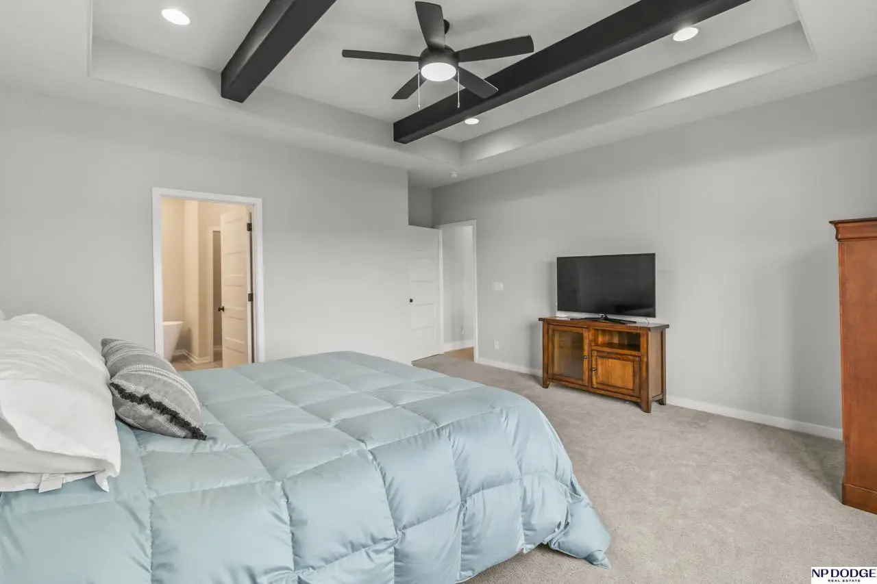 Less than 3-years old w/ many upgrades that are usually not included when building! Absolutely gorgeous inside w/ open floor plan and neutral decor throughout! Larger than it looks w/ over 4,000 finished square feet and six bedrooms, one being used as an Office and another as Exercise room (could be playroom)! Main level has Kitchen w/ large dining area, spacious quartz countertops, serving island, lots of cabinets and walk-in pantry, Living room has stone front FP and beamed ceiling, and large Primary BR has beamed ceiling and 2-story walk-in closet! Walkout basement has Family room w/ FP, large Rec-room area, separate Wet-bar area, 3-large BR's, 3/4 bathroom and large storage room w/ built-ins! Also includes custom remote window coverings, 4-car garage, extensive landscaping, main level laundry w/ folding counter, drop zone, water softener and oversized covered composite deck and covered patio!