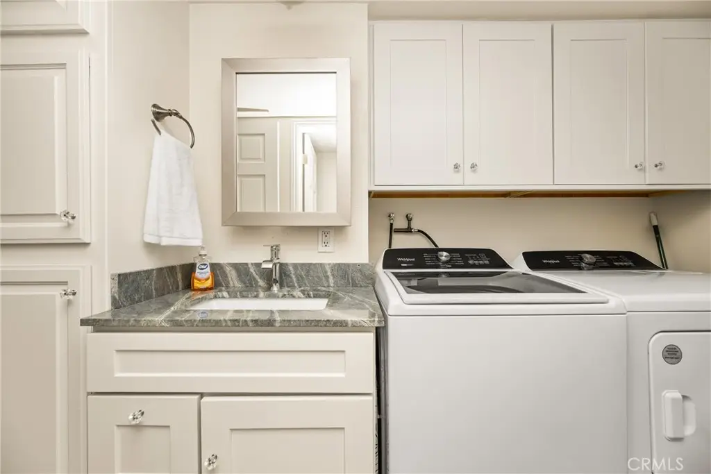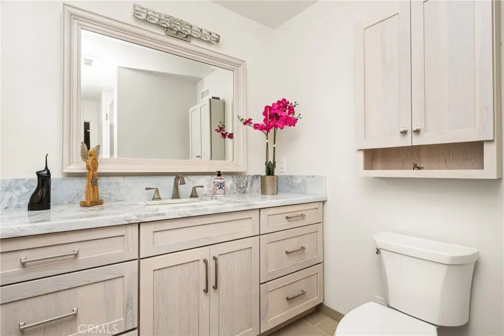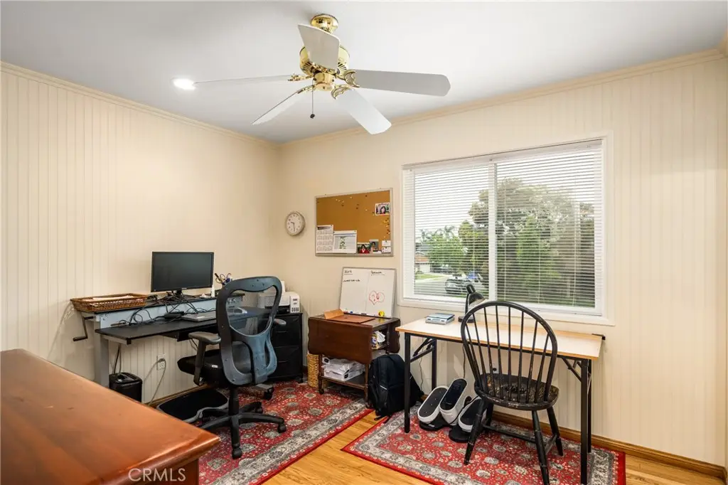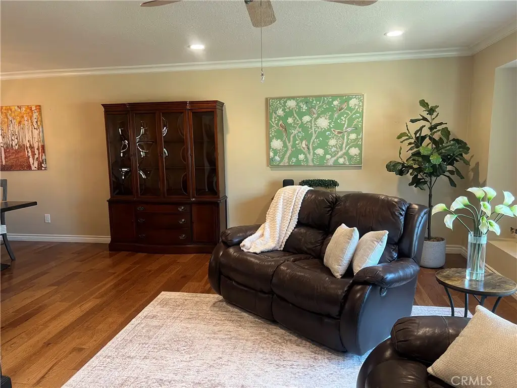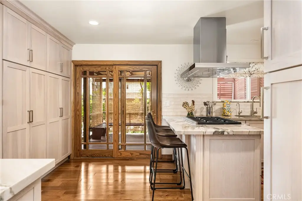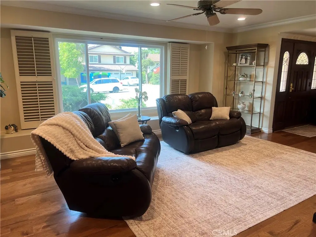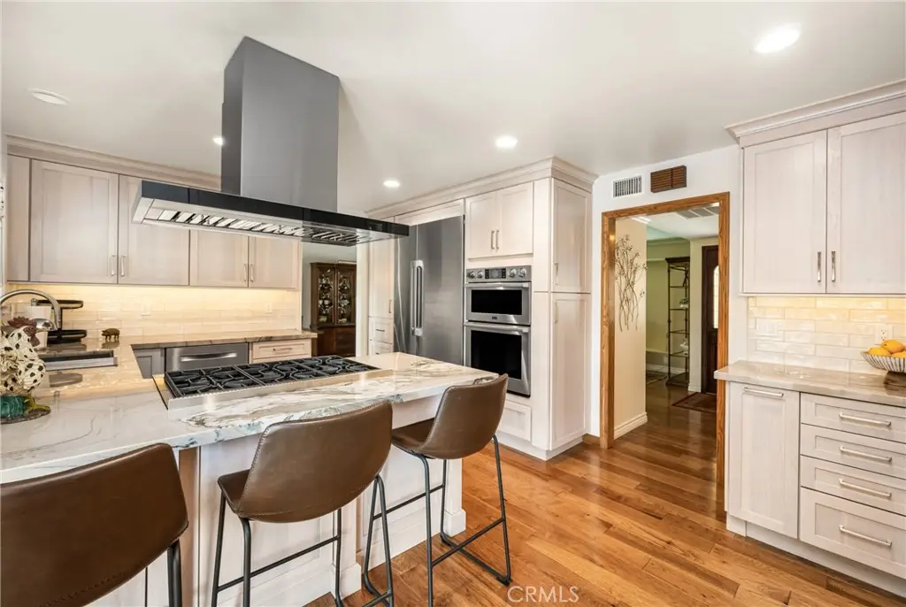 Welcome to this beautifully upgraded 4-bedroom, 3-bathroom home offering 2,121 sq ft of thoughtfully designed living space. With a downstairs bedroom and full bath, this layout is perfect for guests or multigenerational living. At the heart of the home is the Designer Chef's Kitchen, featuring premium appliances: Sub-Zero Dacor refrigerator, Dacor double oven with warming drawer, Wolf 6-burner cooktop, Bosch dishwasher, and Dacor convection microwave. Enjoy the gorgeous Quartzite countertops, vegetable prep sink, and custom pull-out shelving make this a dream kitchen for any culinary enthusiast. All bathrooms have been tastefully updated with elegant Kraft Maid birch wood cabinetry, adding warmth and sophistication throughout the home. The home boasts 3/4-inch Hickory wood floors, recessed lighting and ceiling fans perfect for those warm summer days. Outside, entertain in style under the custom - built covered patio, perfect for alfresco dining. The expansive backyard is a private oasis featuring mature Hass avocado, orange, lime, and kumquat trees, plus a convenient slab sink for barbequing. On opposite sides of the yard, you'll find two custom built 8x16 sheds complete with insulation, drywall, windows, and 3-amp wiring offers exceptional additional space. Additional highlights include RV parking with remote controlled gate access, Noritz tankless water heater, reverse Osmosis water system, a Vertex security system, with multiple cameras for added coverage, newer ductwork, and a 3-year-old composition shingle roof with 50-year warranty. A rare find that blends luxury finishes, thoughtful upgrades, and versatile outdoor space - this home is truly the total package!