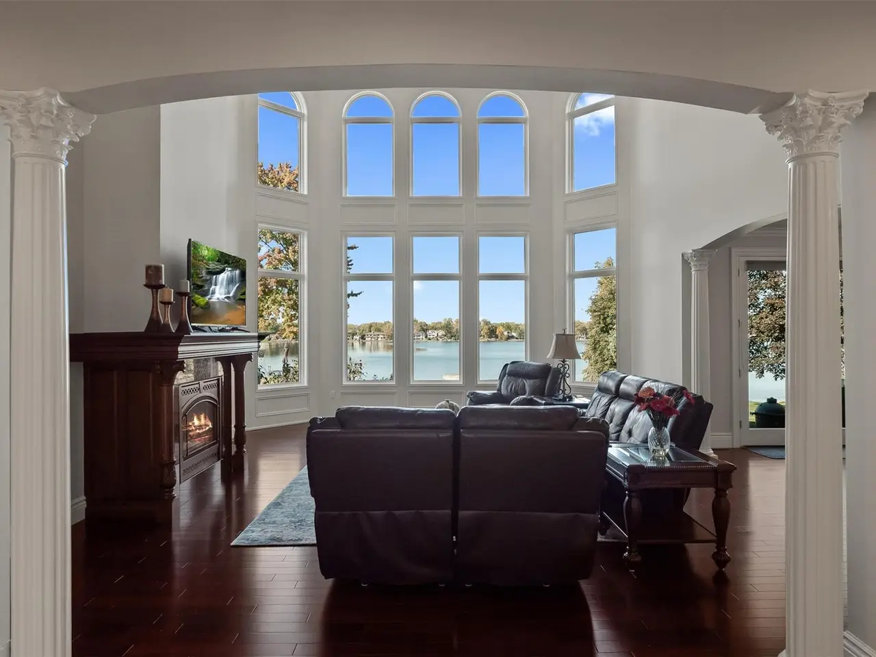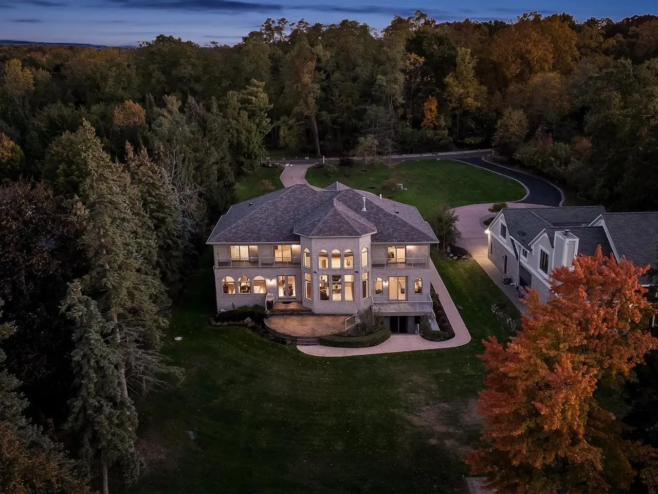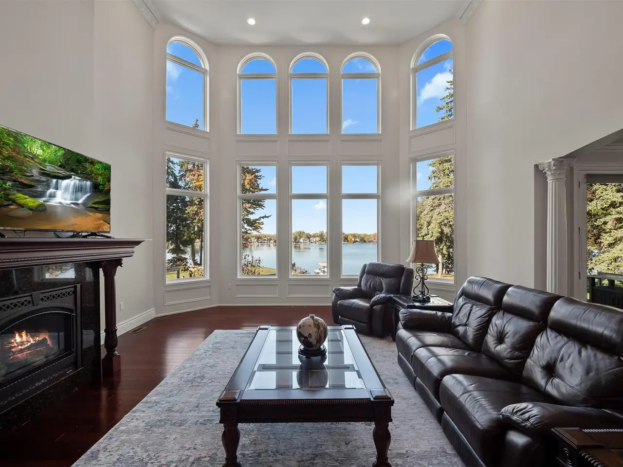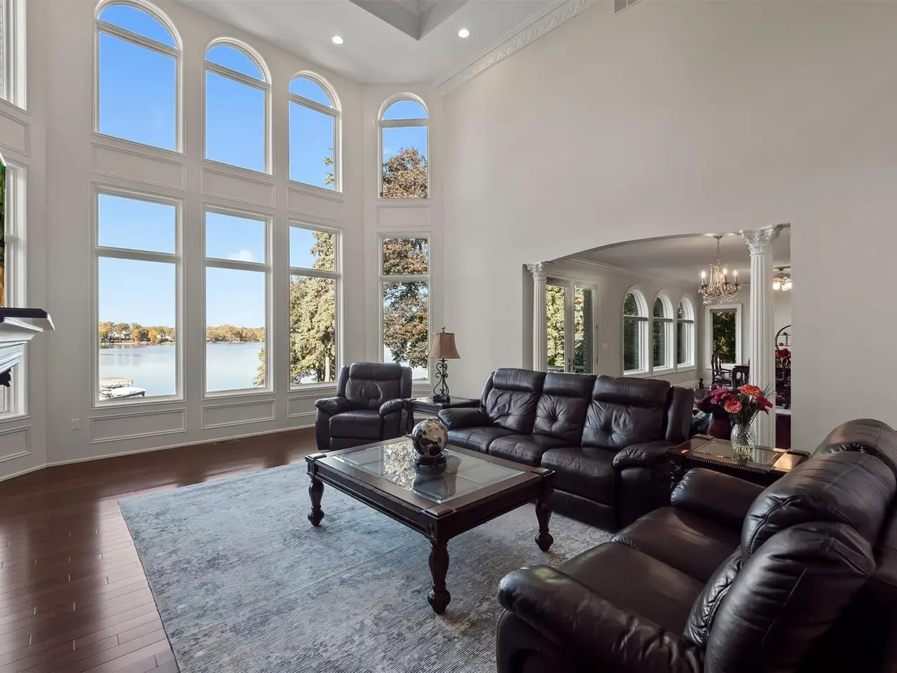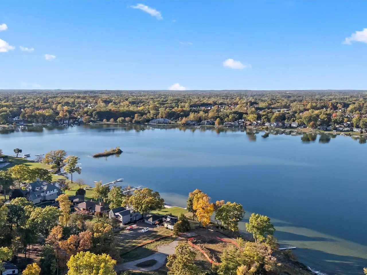 Situated on Dow Ridge Road, one of the most prestigious streets in Oakland County, and certainly the epitome of Cass Lake living. Perched above the shoreline on just over three quarters of an acre lot. 108' of crystal clear, sandy shoreline. Newer built in 2012. Long double-wide driveway, with circular fountain area, provides ample parking for large gatherings. Grand two-story foyer and great room. The great room offers floor-to-ceiling windows with magnificent unobstructed views of the lake. Library/office with custom built-ins. Bright, white gourmet granite kitchen, oversized island with countertop seating, and premium stainless steel appliances: SubZero refrigerator and freezer, Wolf gas range, KitchenAid dishwasher. Walk-in pantry. Full back hall bath, great when coming off a day on the lake. Desirable first-floor primary suite, doorwall to deck, dual walk-in closets. Curved hardwood and wrought iron staircase. Three en-suites upstairs all facing the lake with their own balconies, granite baths and walk-in closets. The second floor loft/office area could easily be enclosed to create an additional bedroom. Lower-level walk-up, second full kitchen, exercise area, 5th en-suite. Lower level kitchen has two side-by-side six burner gas ranges. Dual staircases, solid core doors, palladium windows, Generator, new roof 2025, interior freshly painted 2025. New tile balcony with a glass railing. Unable to duplicate lot and home for this price. Room for a pool in the backyard. Large brick-paver lakefront patio. Four car garage. West Bloomfield Schools: Gretchko Elementary, new West Bloomfield Middle & West Bloomfield High. Experience lakefront living at its finest!