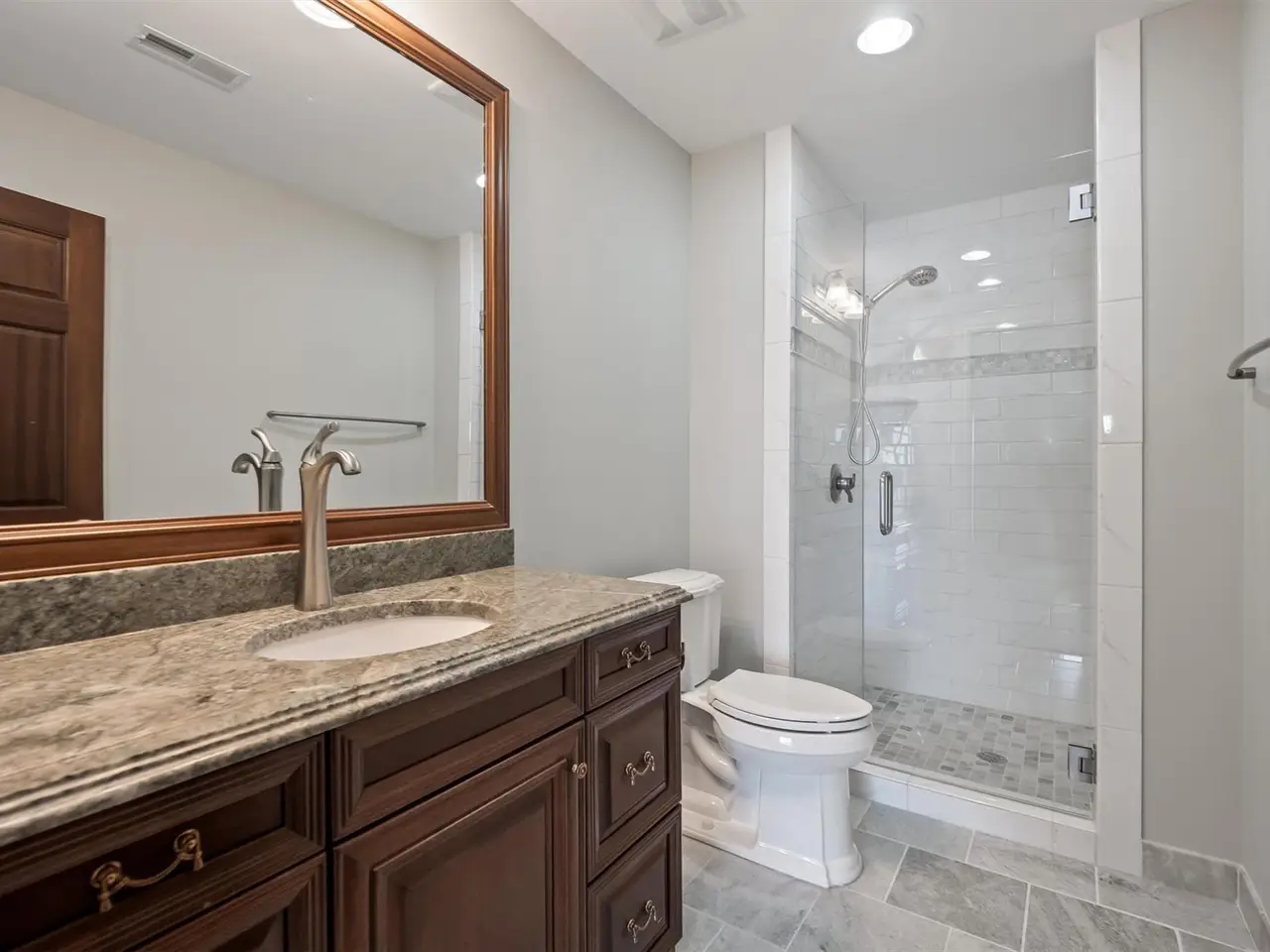 • First-floor primary suite with dual closets