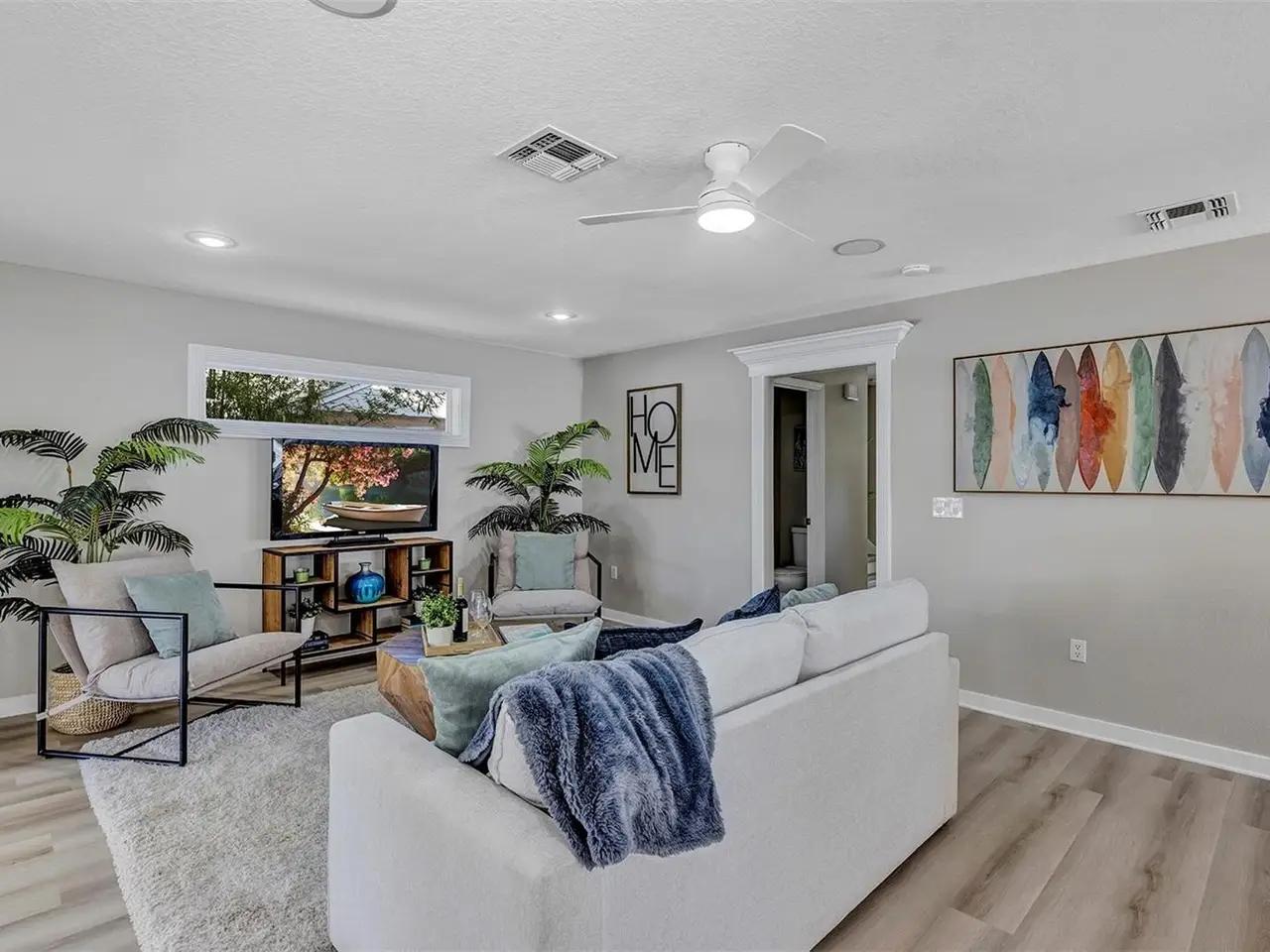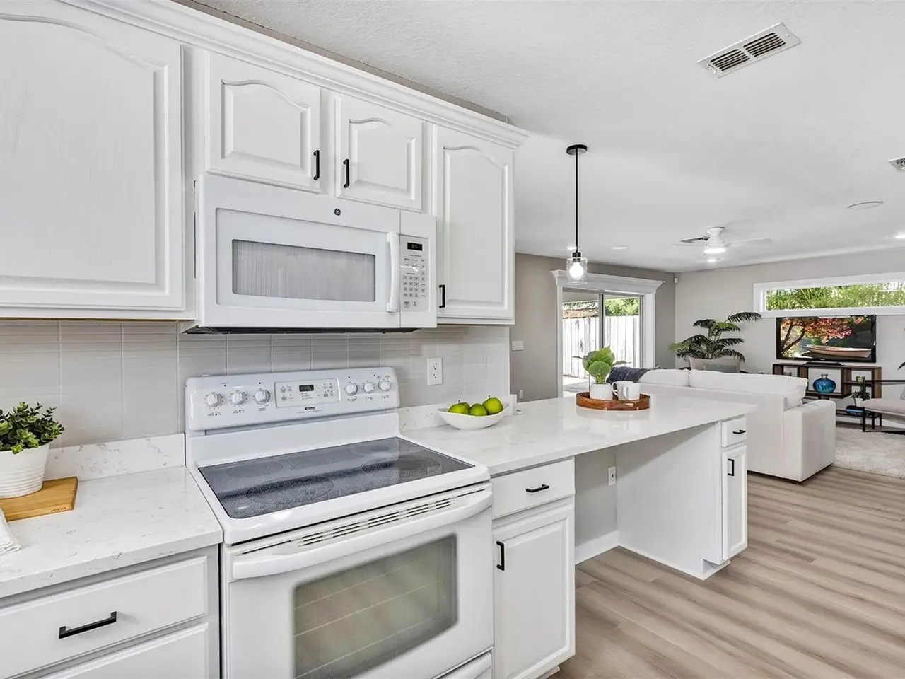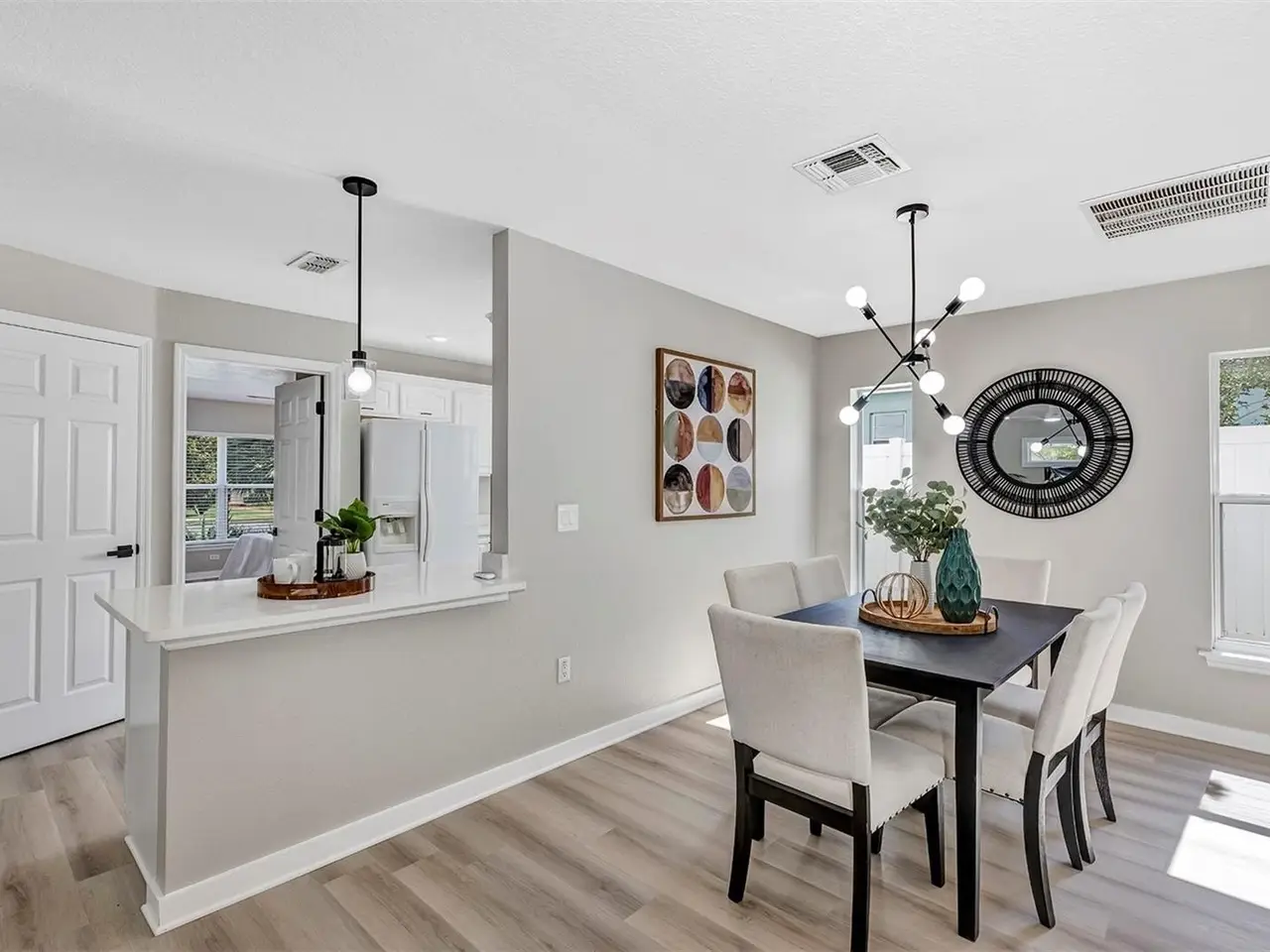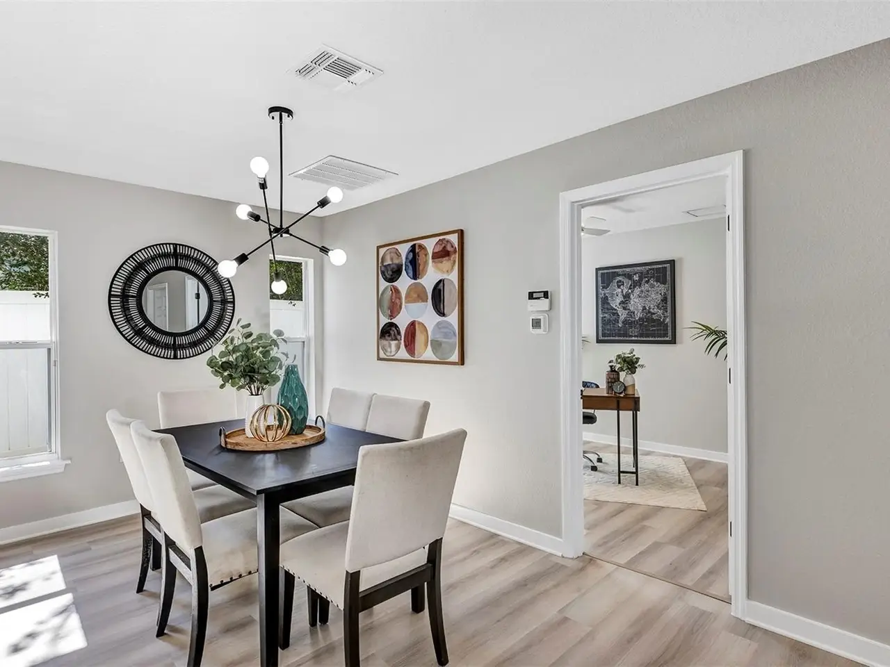 Welcome to this beautifully updated 4-bedroom, 2.5-bathroom single-family home, From the moment you walk in, you'll notice the luxury vinyl plank flooring flows seamlessly throughout, offering durability and elegance in every room. The open-concept living area is filled with natural light, enhanced by new ceiling fans and designer light fixtures that bring warmth and style to every gathering. At the heart of the home is the recently upgraded kitchen, featuring sparkling white Carrara quartz countertops and a sleek 4 inch tall backsplash. Need a quiet place to work from home? You’ll love the dedicated home office, thoughtfully designed for focus and productivity. When it's time to unwind, retreat to your private back patio, ideal for morning coffee or sunset dinners while providing great shade from the Florida heat. All bathrooms have been completely renovated with custom tile flooring and contemporary touches. With the split bedroom floorplan, you will find the primary bedroom on the main floor and on the second floor you are greeted by yet another living room space and the remaining 3 bedrooms. There’s plenty of room for your growing family, guests, or creative hobbies. And thanks to thoughtful upgrades throughout, you can move right in without lifting a finger. Rest easy knowing that the roof was just replaced in 2023 (with a transferable warranty) and HVAC was replaced in 2024. Minutes from top-rated schools, parks, shopping, and easy access to I-4, this home offers both convenience and connection to a vibrant community. Visit College Park's most beloved breakfast spot: Shaker's American Cafe; a staple in the community since 1993 that is less than a block away! or take a 3 minute walk in the opposite direction and visit the Jack Kerouac House: a haven for literary enthusiasts. There truly is something for everyone! Don’t miss the opportunity to make this Orlando gem yours.