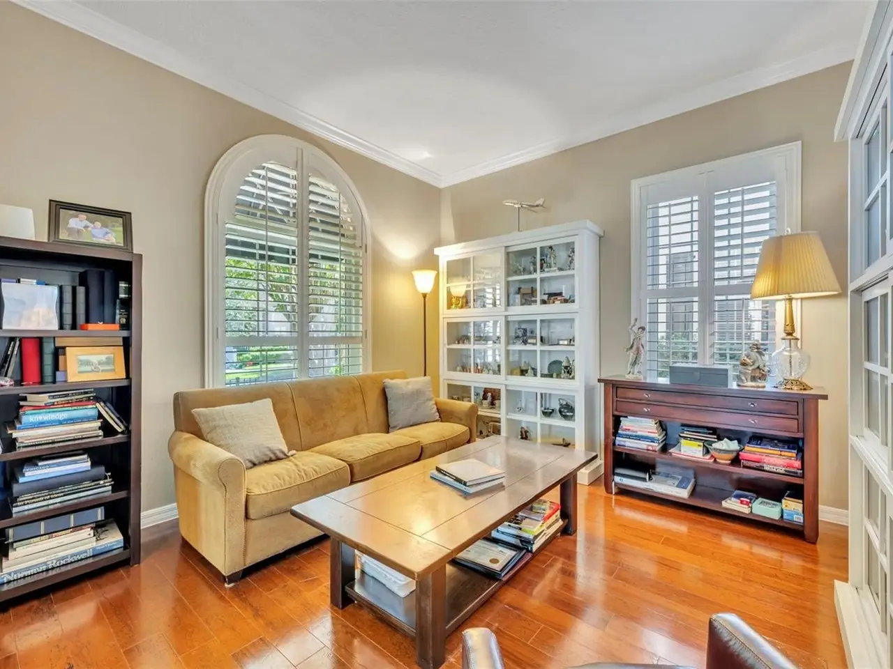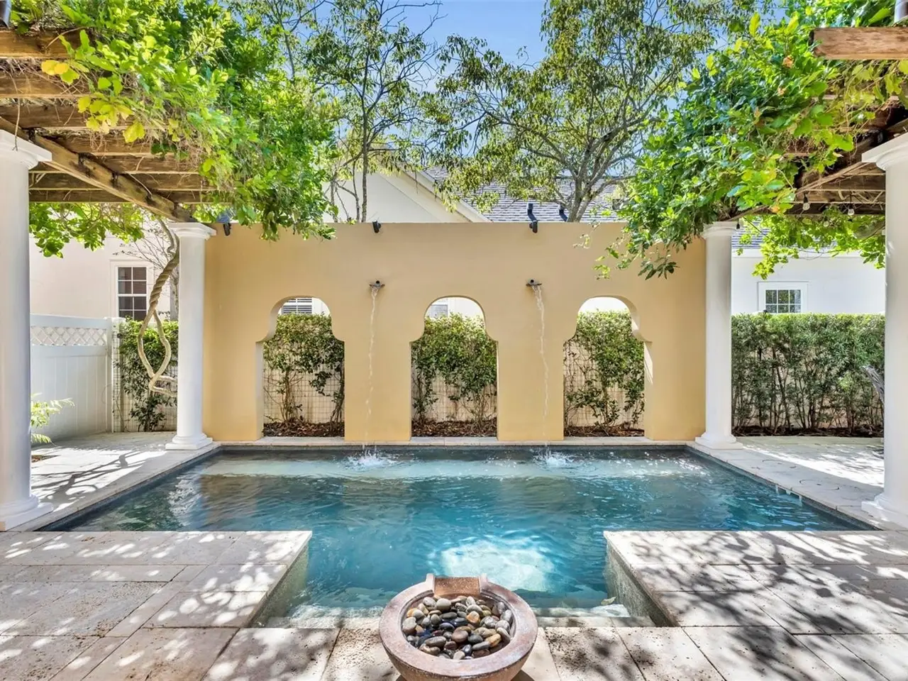 Welcome to this stunning Mediterranean-inspired home in the heart of Baldwin Park! Move right into this 3 bedroom PLUS BONUS ROOM/ 2.5 bath home! Step into your private oasis featuring a captivating backyard pool with elegant fountains, surrounded by a charming courtyard patio framed by classic columns, trellises, and lush mature landscaping — the perfect setting for al fresco dining and entertaining under the Florida sky. A quaint fenced front yard greets you upon arrival, leading inside to soaring ceilings, elegant archways, rich hardwood floors, detailed crown molding, and custom window treatments that exude timeless elegance. The formal living and dining rooms overlook the front yard and flow seamlessly through a butler’s pantry into the serene chef’s kitchen, complete with an island, breakfast bar, gas range and cozy eat-in nook — all open to the inviting family room. The spacious first-floor primary suite with tray ceiling offers the ultimate retreat with its luxurious ensuite bath featuring dual vanities, a soaking tub, walk-in shower, private water closet, and a custom-designed walk-in closet. Upstairs you’ll find two bright guest bedrooms with new carpet, a study nook, and a huge bonus room — ideal for a home office, gym, or additional family space. Additional highlights include an indoor laundry room, rear-entry 2+ car garage with abundant storage (27x23), AC & water heater 2017, double paned windows throughout and an unbeatable location near Cady Way Trail, Baldwin Park Trail, and all the amenities of the Baldwin Park lifestyle — community pools, parks, fitness centers, dining, and shoppes. WELCOME HOME!