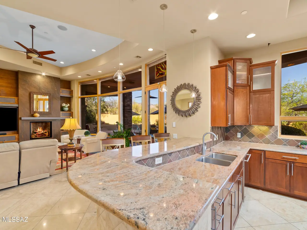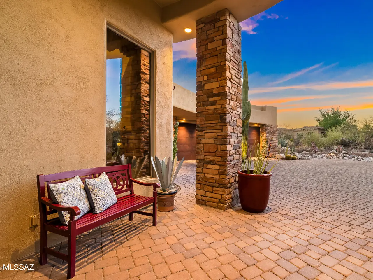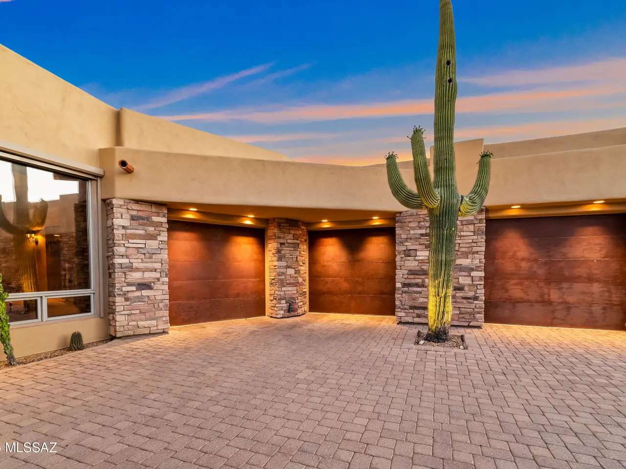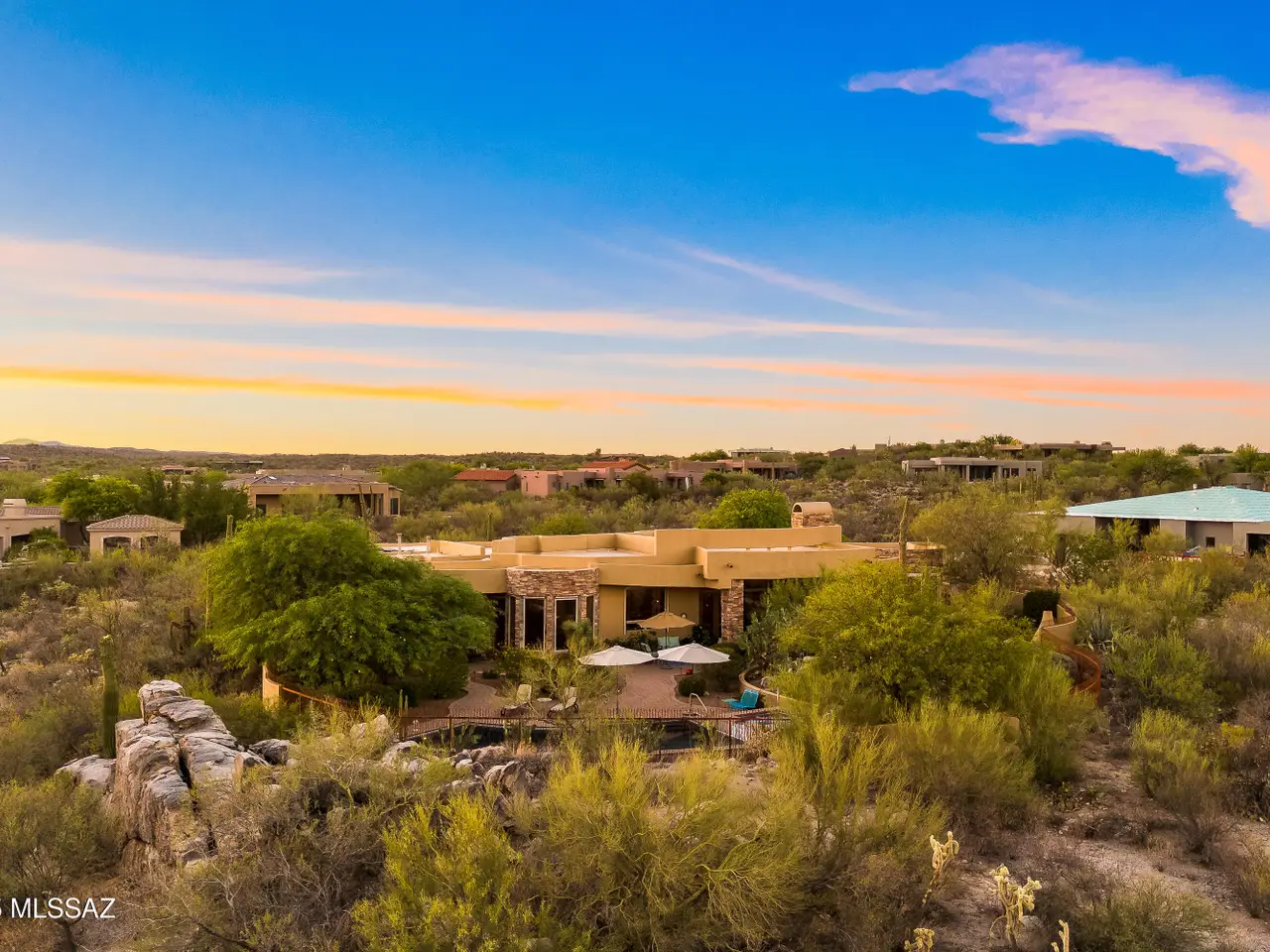 Located in the prestigious guard gated community of The Estates at Honey Bee Ridge, this 4, 040sf 4BR/4 1/2BA custom soft contemporary home is nestled among dramatic rock outcroppings and towering saguaros, offering breathtaking views of the Catalina Mountains and Pusch Ridge. A paver driveway leads to the home, where elegant, stacked rock finishes set the tone for the refined design within. Thoughtfully crafted with comfort and sophistication in mind, the residence features expansive walls of windows that beautifully frame the surrounding desert landscape. The kitchen showcases rich natural materials, including cherry wood cabinetry, granite countertops & spacious center island w/ 5-burner gas cooktop, stainless appliances, double ovens & casual dining nook highlighted by a curved wall of windows. Each generously sized bedroom includes its own en-suite bathroom, ensuring privacy and comfort for family and guests. The great room is centered around a cozy fireplace and wet bar, complete with additional cabinetry and countertops perfect for entertaining. A formal dining room offers a classic setting for special occasions. Luxurious primary suite is a true retreat, featuring a circular alcove entry w/niches romantic fireplace, a large sitting area w/panoramic views, jetted tub, large separate walk-in shower & spacious walk-in closet. Step outside to the resort-style backyard, where you'll find a solar-heated pool and spa with an in-floor cleaning system, a large covered patio, paver and flagstone walkways, a built-in BBQ & gas Kiva fireplace with banco seating all set against professionally landscaped grounds designed for relaxation or entertaining. Oversized 3-car garage has storage cabinets. A heart-shaped labyrinth is your own private Zen sanctuary; a space to center yourself and reconnect. Walk its winding path as a form of moving meditation or simply rest on the bench and allow yourself to absorb the peaceful energy of the Universe. This location offers immediate access to Honey Bee Canyon Park and nearby walking and biking trails, including The Vistoso Trails Nature Preserve with 6.2-mile, eight-foot-wide concrete path and The Loop, a 138-mile paved trail system throughout Tucson. Just minutes away, the Stone Canyon Club offers golf, fitness, and social memberships, featuring a top 100 ranked course and world-class amenities. Also nearby is Catalina State Park, perfect for hiking, birding and horseback riding. And Oro Valley Market place is just minutes away with open-air shopping, dining, Movie Theatre & on weekends evenings of live local music. This is more than a lot, it's a lifestyle. A rare opportunity to build your dream home in one of Oro Valley's most desirable communities with a prime location, endless desert views and exceptional lifestyle amenities. Just minutes away, the Stone Canyon Club offers golf, fitness, and social memberships, featuring a top 100 ranked course and world-class amenities where members have the option of golf or social memberships. The Golf Membership offers access to a championship course, state-of-the-art fitness center, clubhouse amenities, fine dining, locker rooms, and a full calendar of club activities. The social membership provides the same exceptional benefits, excluding golf privileges. Don't miss this rare opportunity to live in luxury, surrounded by natural beauty and enhanced by world-class amenities.