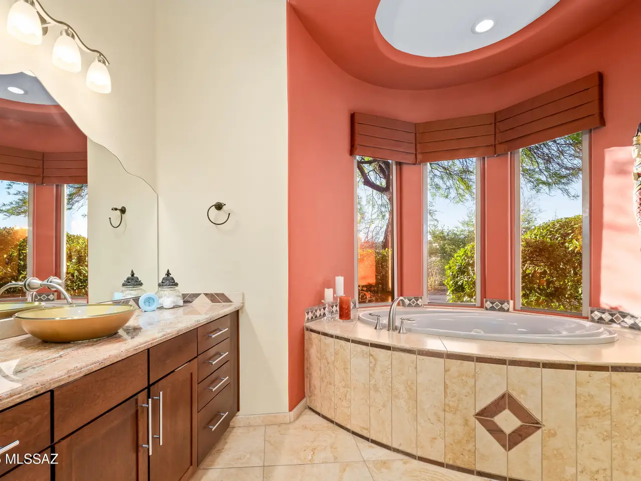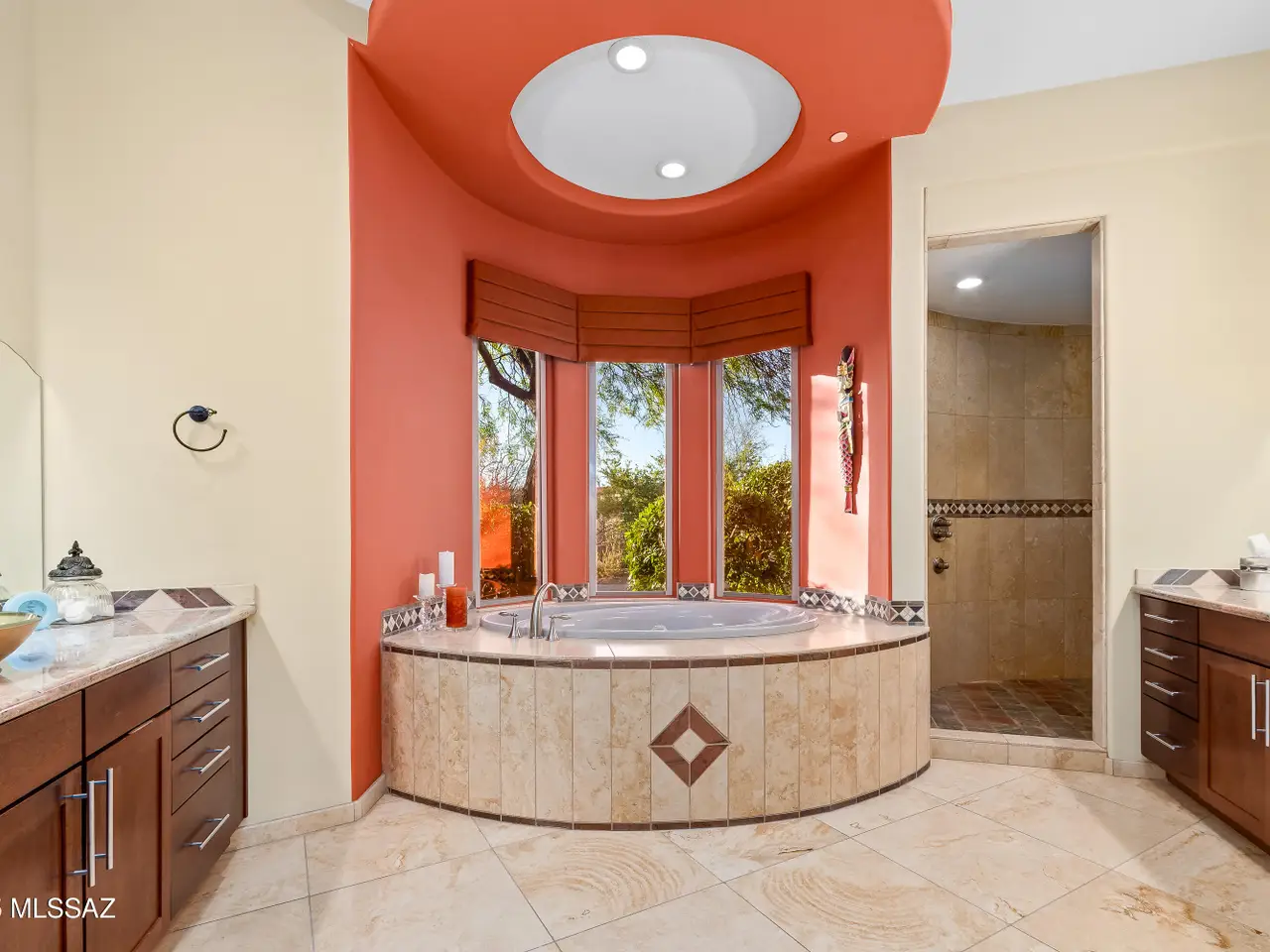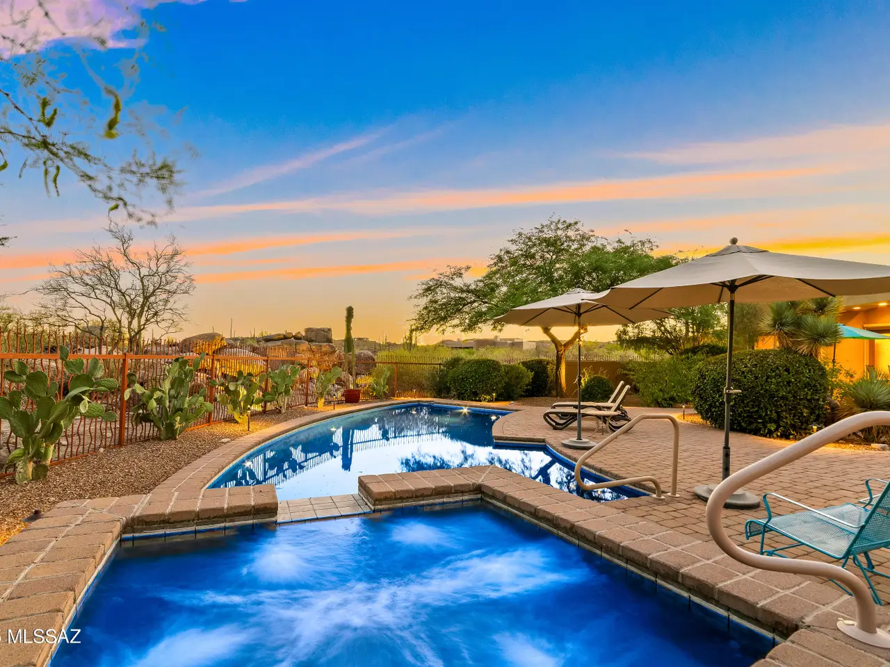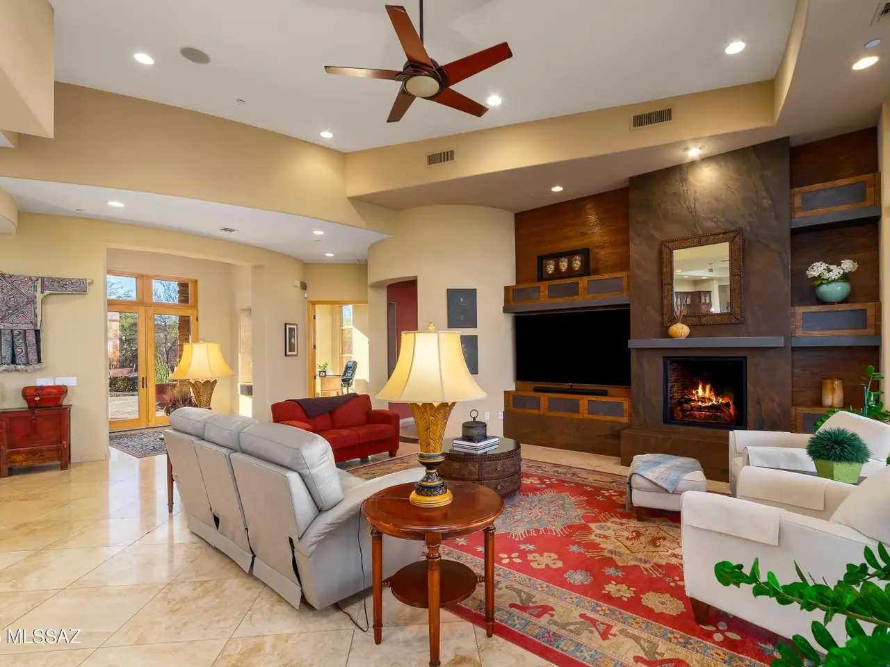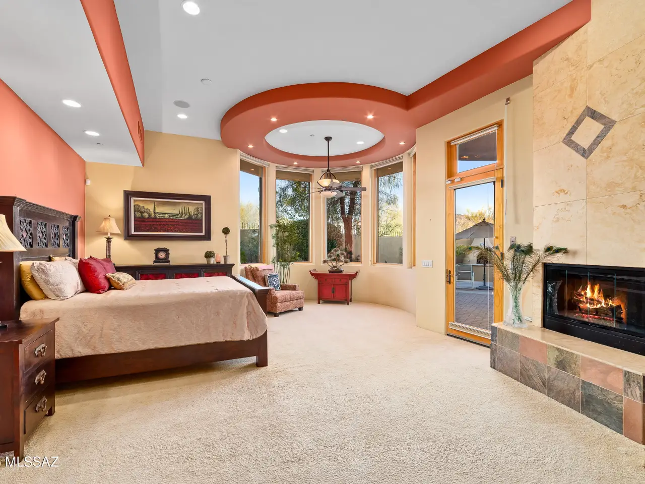 Located in the prestigious guard gated community of The Estates at Honey Bee Ridge, this 4, 040sf 4BR/4 1/2BA custom soft contemporary home is nestled among dramatic rock outcroppings and towering saguaros, offering breathtaking views of the Catalina Mountains and Pusch Ridge. A paver driveway leads to the home, where elegant, stacked rock finishes set the tone for the refined design within. Thoughtfully crafted with comfort and sophistication in mind, the residence features expansive walls of windows that beautifully frame the surrounding desert landscape. The kitchen showcases rich natural materials, including cherry wood cabinetry, granite countertops & spacious center island w/ 5-burner gas cooktop, stainless appliances, double ovens & casual dining nook highlighted by a curved wall of windows. Each generously sized bedroom includes its own en-suite bathroom, ensuring privacy and comfort for family and guests. The great room is centered around a cozy fireplace and wet bar, complete with additional cabinetry and countertops perfect for entertaining. A formal dining room offers a classic setting for special occasions. Luxurious primary suite is a true retreat, featuring a circular alcove entry w/niches romantic fireplace, a large sitting area w/panoramic views, jetted tub, large separate walk-in shower & spacious walk-in closet. Step outside to the resort-style backyard, where you'll find a solar-heated pool and spa with an in-floor cleaning system, a large covered patio, paver and flagstone walkways, a built-in BBQ & gas Kiva fireplace with banco seating all set against professionally landscaped grounds designed for relaxation or entertaining. Oversized 3-car garage has storage cabinets. A heart-shaped labyrinth is your own private Zen sanctuary; a space to center yourself and reconnect. Walk its winding path as a form of moving meditation or simply rest on the bench and allow yourself to absorb the peaceful energy of the Universe. This location offers immediate access to Honey Bee Canyon Park and nearby walking and biking trails, including The Vistoso Trails Nature Preserve with 6.2-mile, eight-foot-wide concrete path and The Loop, a 138-mile paved trail system throughout Tucson. Just minutes away, the Stone Canyon Club offers golf, fitness, and social memberships, featuring a top 100 ranked course and world-class amenities. Also nearby is Catalina State Park, perfect for hiking, birding and horseback riding. And Oro Valley Market place is just minutes away with open-air shopping, dining, Movie Theatre & on weekends evenings of live local music. This is more than a lot, it's a lifestyle. A rare opportunity to build your dream home in one of Oro Valley's most desirable communities with a prime location, endless desert views and exceptional lifestyle amenities. Just minutes away, the Stone Canyon Club offers golf, fitness, and social memberships, featuring a top 100 ranked course and world-class amenities where members have the option of golf or social memberships. The Golf Membership offers access to a championship course, state-of-the-art fitness center, clubhouse amenities, fine dining, locker rooms, and a full calendar of club activities. The social membership provides the same exceptional benefits, excluding golf privileges. Don't miss this rare opportunity to live in luxury, surrounded by natural beauty and enhanced by world-class amenities.
