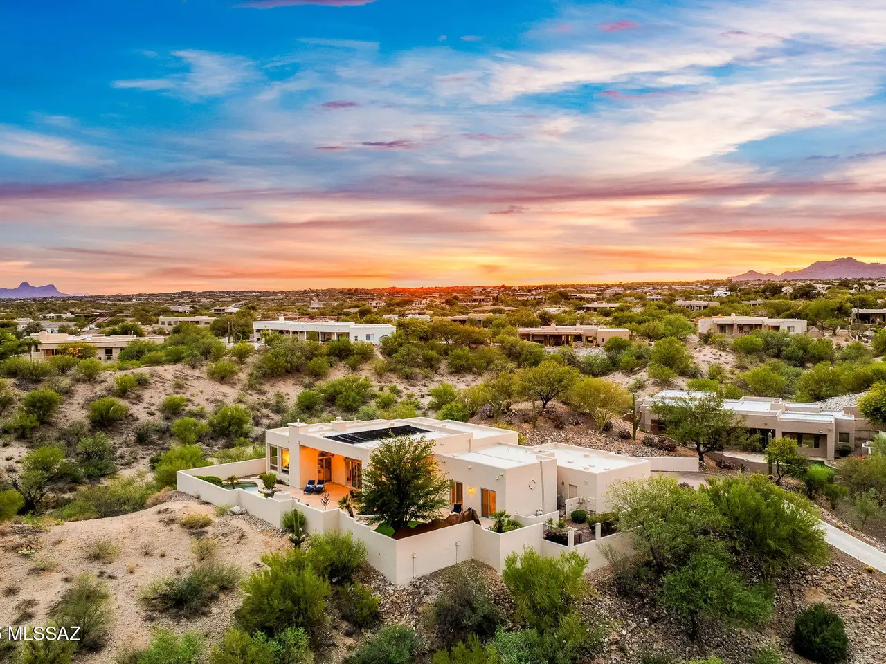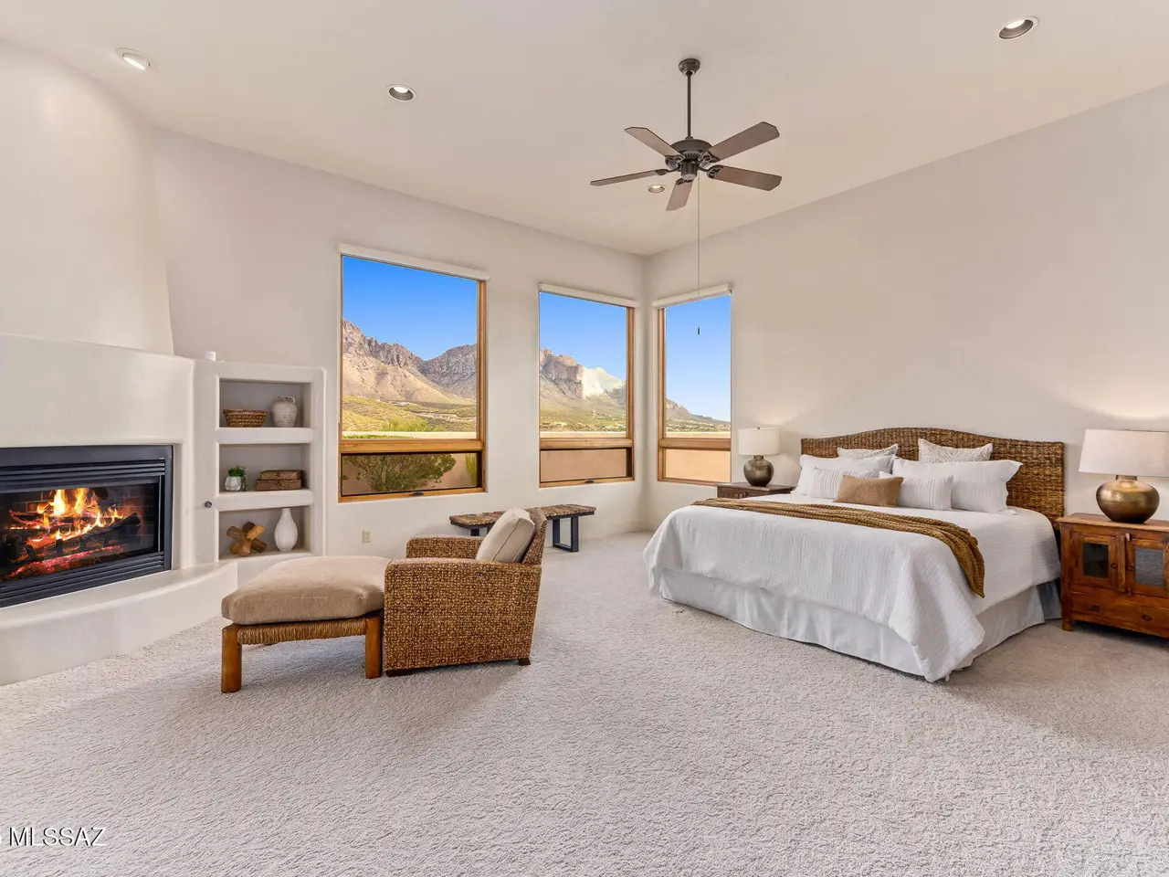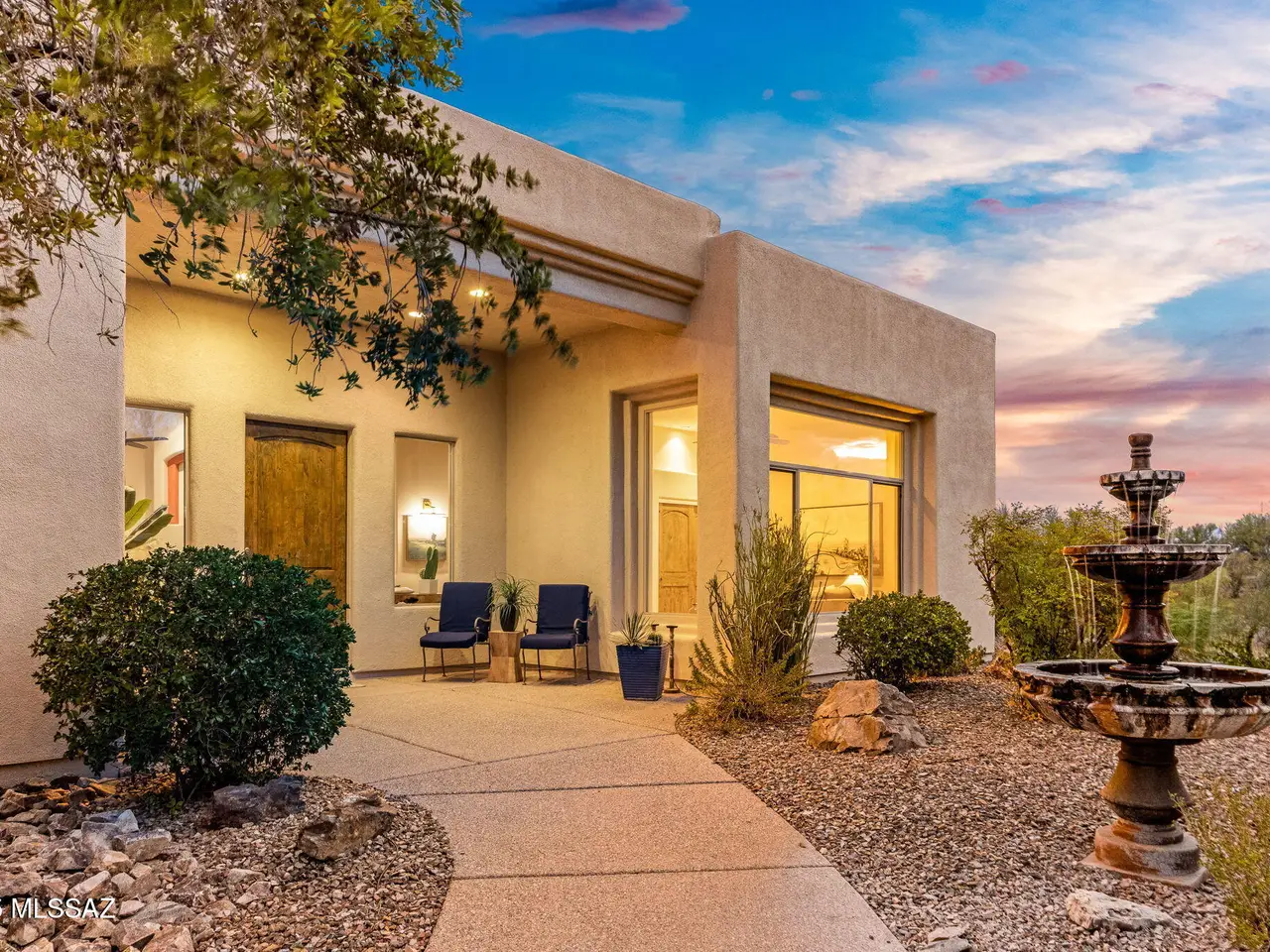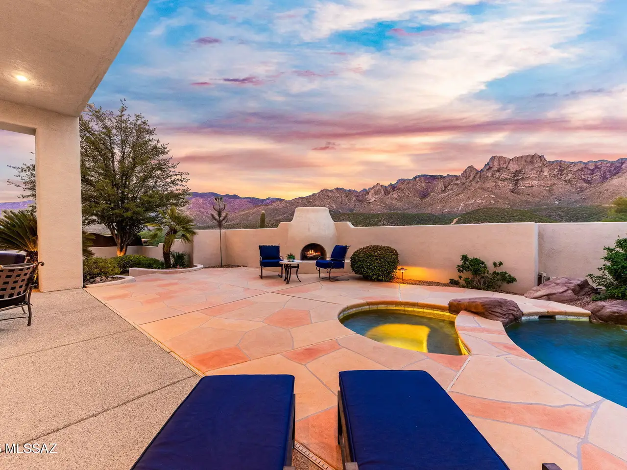 Welcome to your desert sanctuary! This 4-bed, 3-bath custom estate spans 3,282 sq ft on 2.68 private acres in a premier gated community and offers luxury, privacy, and sweeping Pusch Mountain views. The redesigned chef's kitchen with SS slate appliances, custom Alder cabinetry, and Dekton countertops flows into indoor/outdoor living spaces designed for entertaining. The large primary suite boasts soaring ceilings, a kiva fireplace, and spa-like bath. Outside, enjoy a heated resort-style pool and spa framed by desert beauty. There's plenty of seating areas to enjoy the view from both under the patio cover or on a turf area. Enjoy the outdoor Kiva fireplace on cool evenings. The vacant lot next door is also for sale, creating a retreat of more than 5 acres in the heart of Oro Valley.
