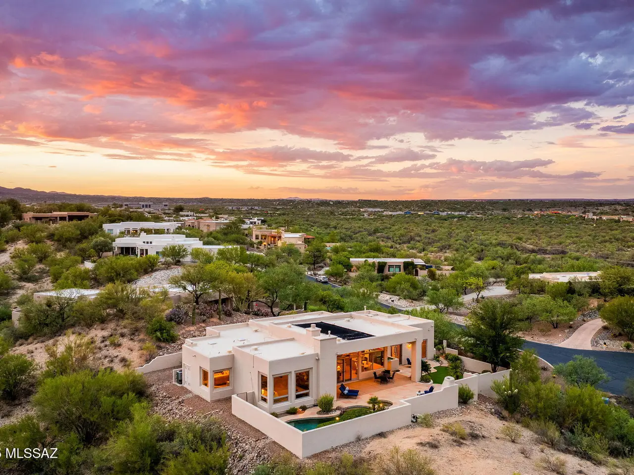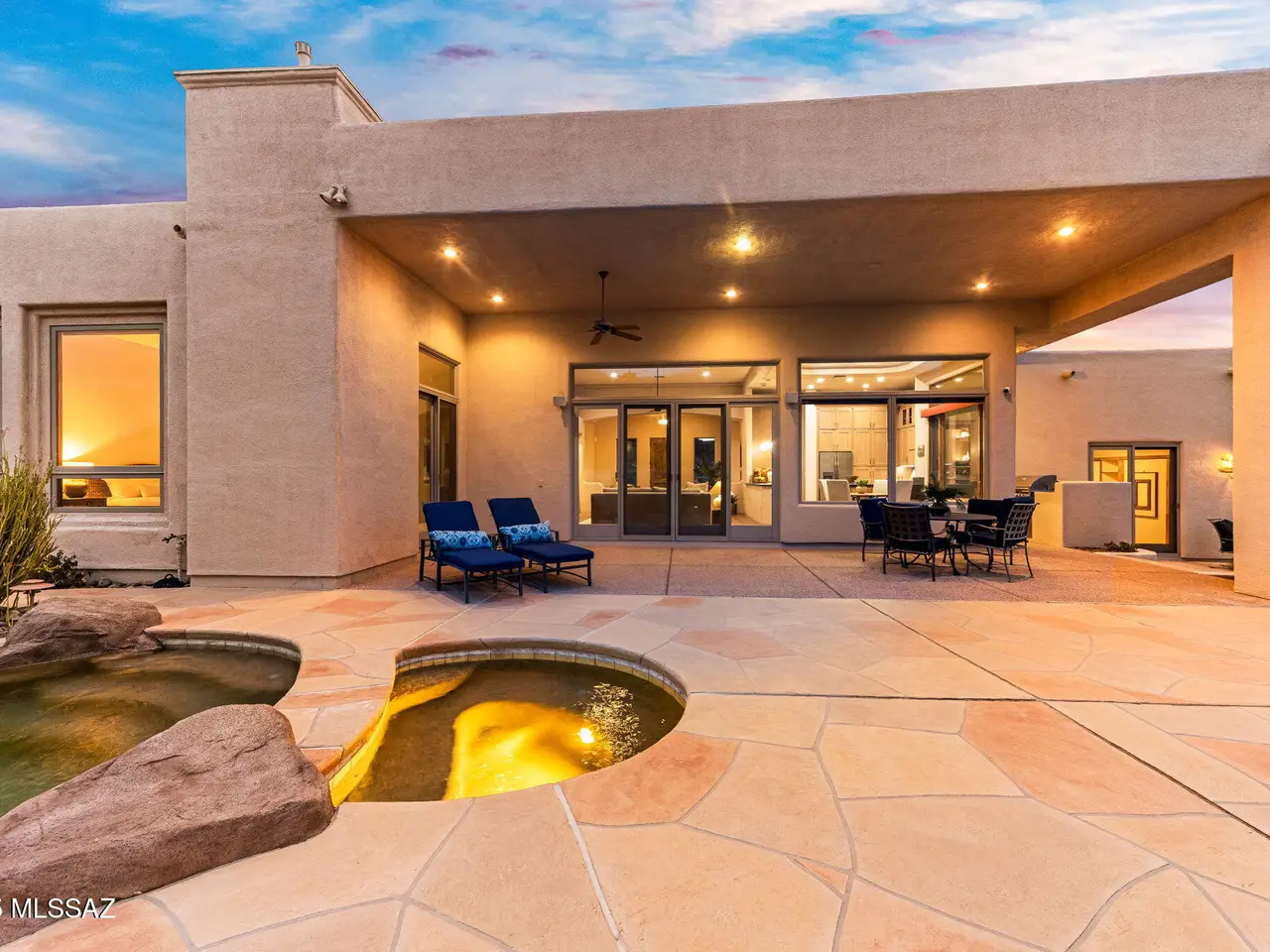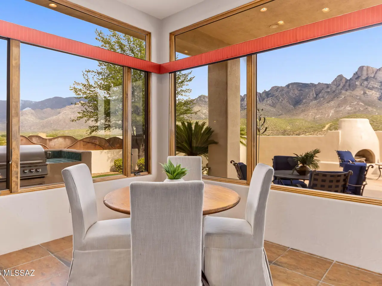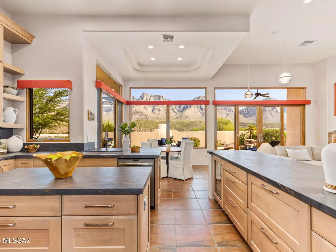 Welcome to your desert sanctuary! This 4-bed, 3-bath custom estate spans 3,282 sq ft on 2.68 private acres in a premier gated community and offers luxury, privacy, and sweeping Pusch Mountain views. The redesigned chef's kitchen with SS slate appliances, custom Alder cabinetry, and Dekton countertops flows into indoor/outdoor living spaces designed for entertaining. The large primary suite boasts soaring ceilings, a kiva fireplace, and spa-like bath. Outside, enjoy a heated resort-style pool and spa framed by desert beauty. There's plenty of seating areas to enjoy the view from both under the patio cover or on a turf area. Enjoy the outdoor Kiva fireplace on cool evenings. The vacant lot next door is also for sale, creating a retreat of more than 5 acres in the heart of Oro Valley.